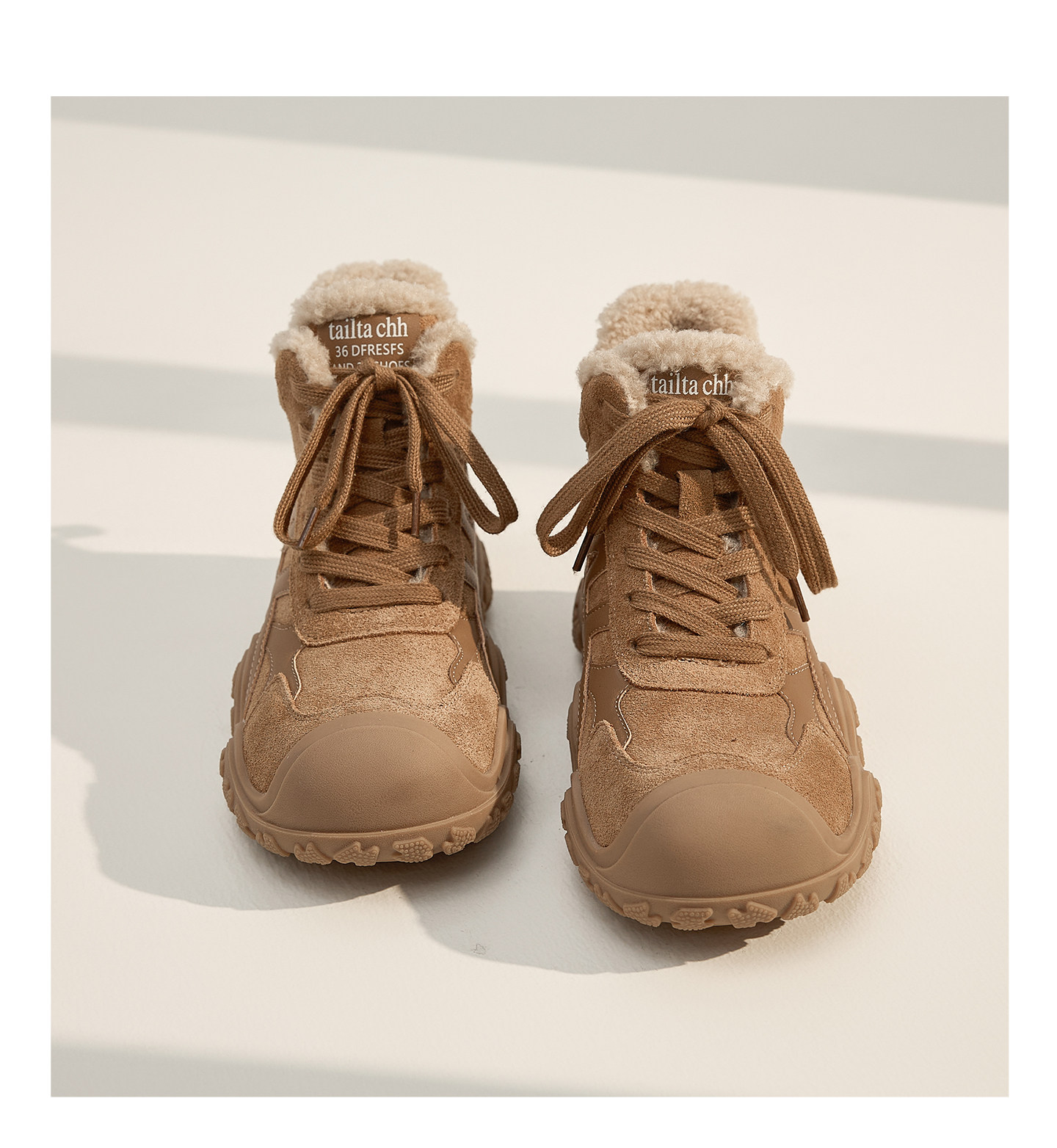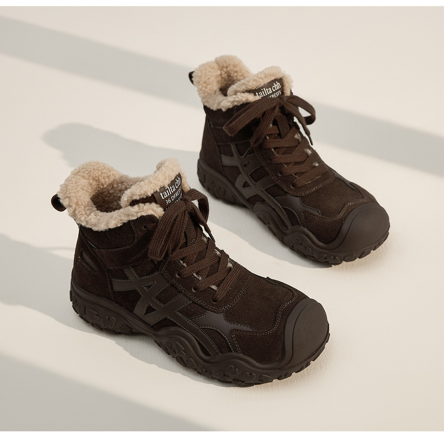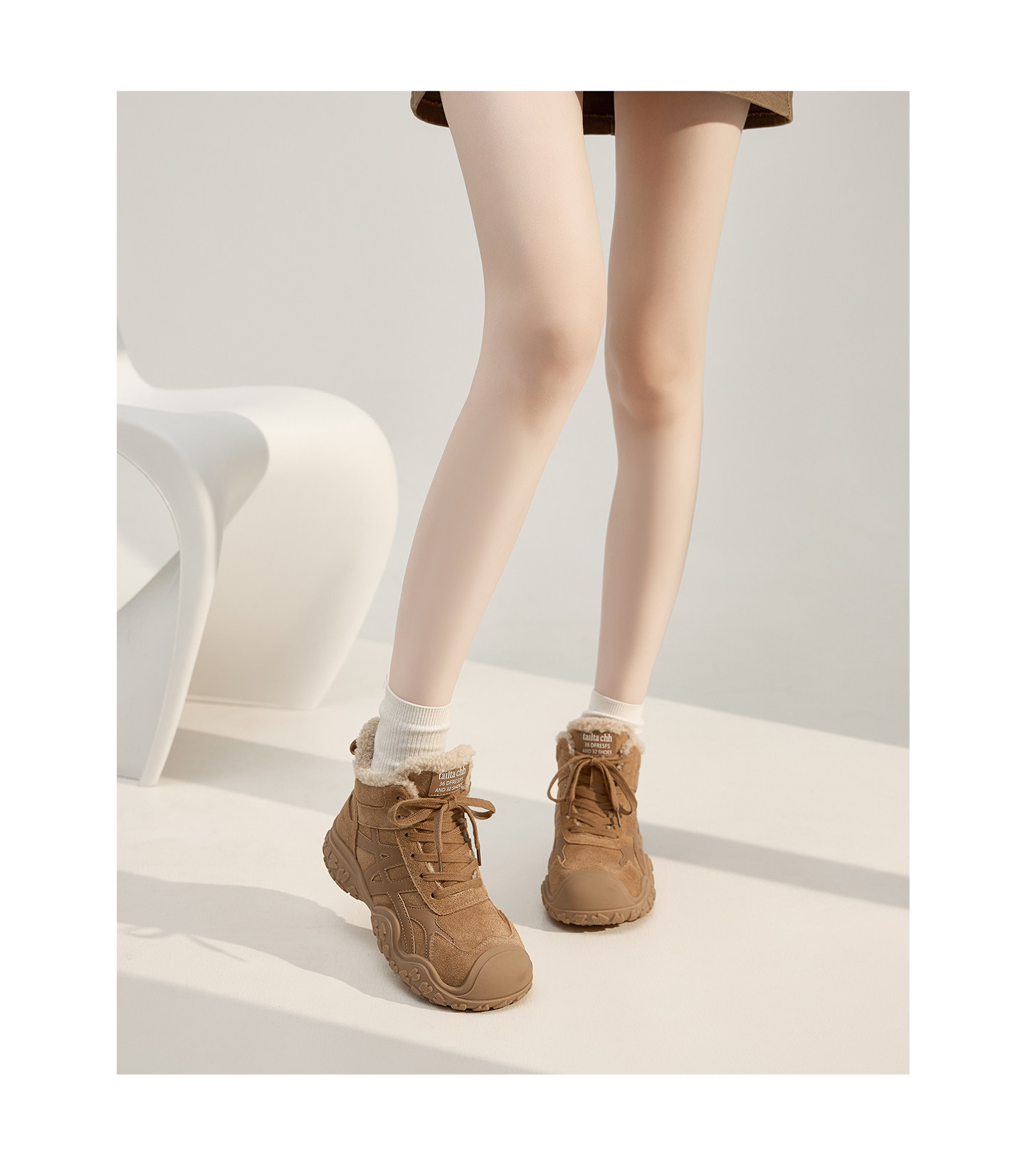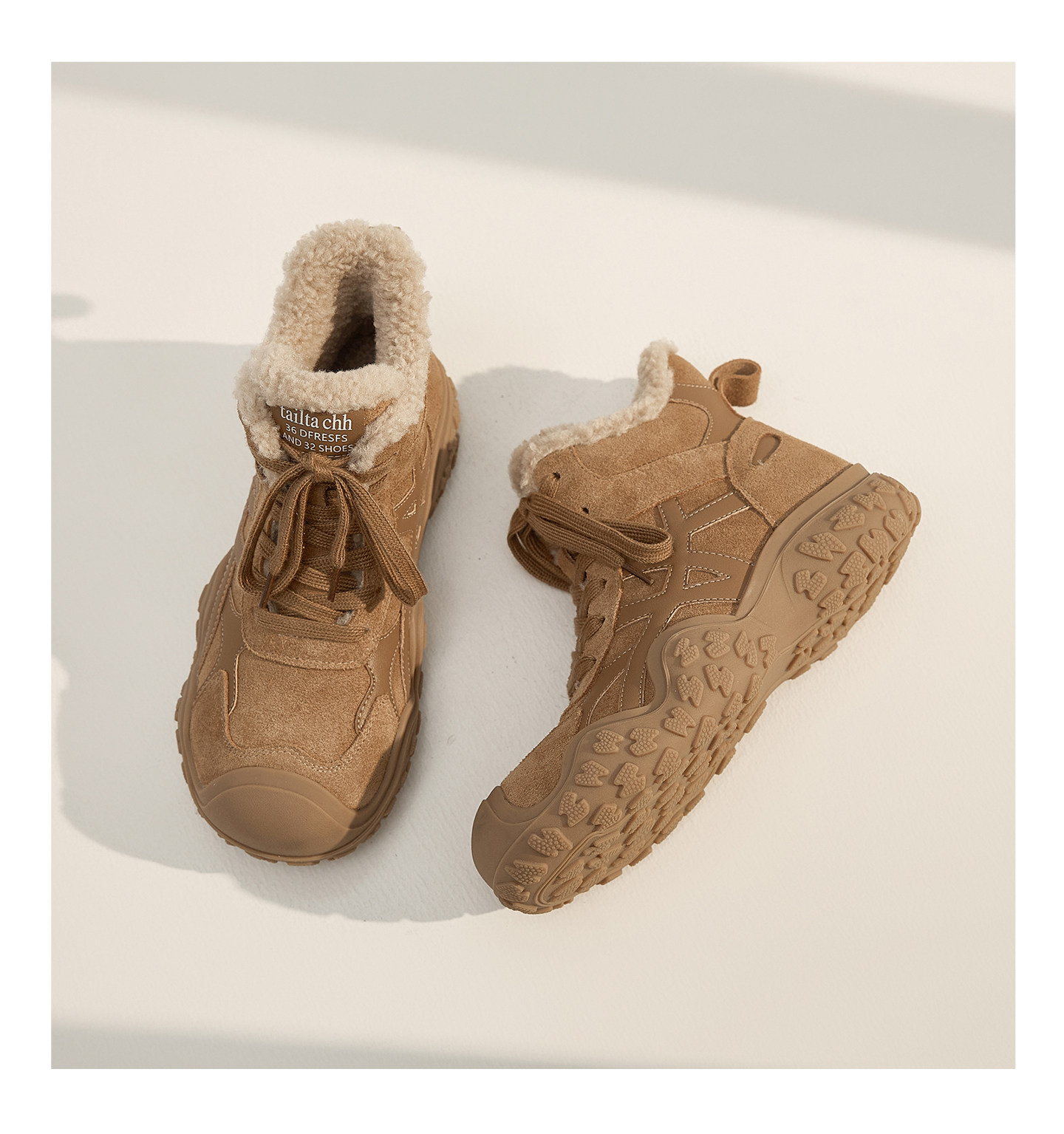 Thick-Soled Martin Boots for Women, 2025 Winter New Style, Fleece-Lined, Thickened, Warm, High-Top Cotton Shoes, Outdoor Hiking Snow Short Boots