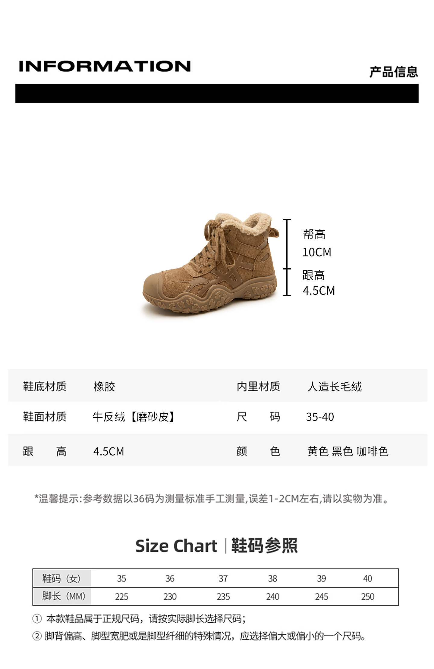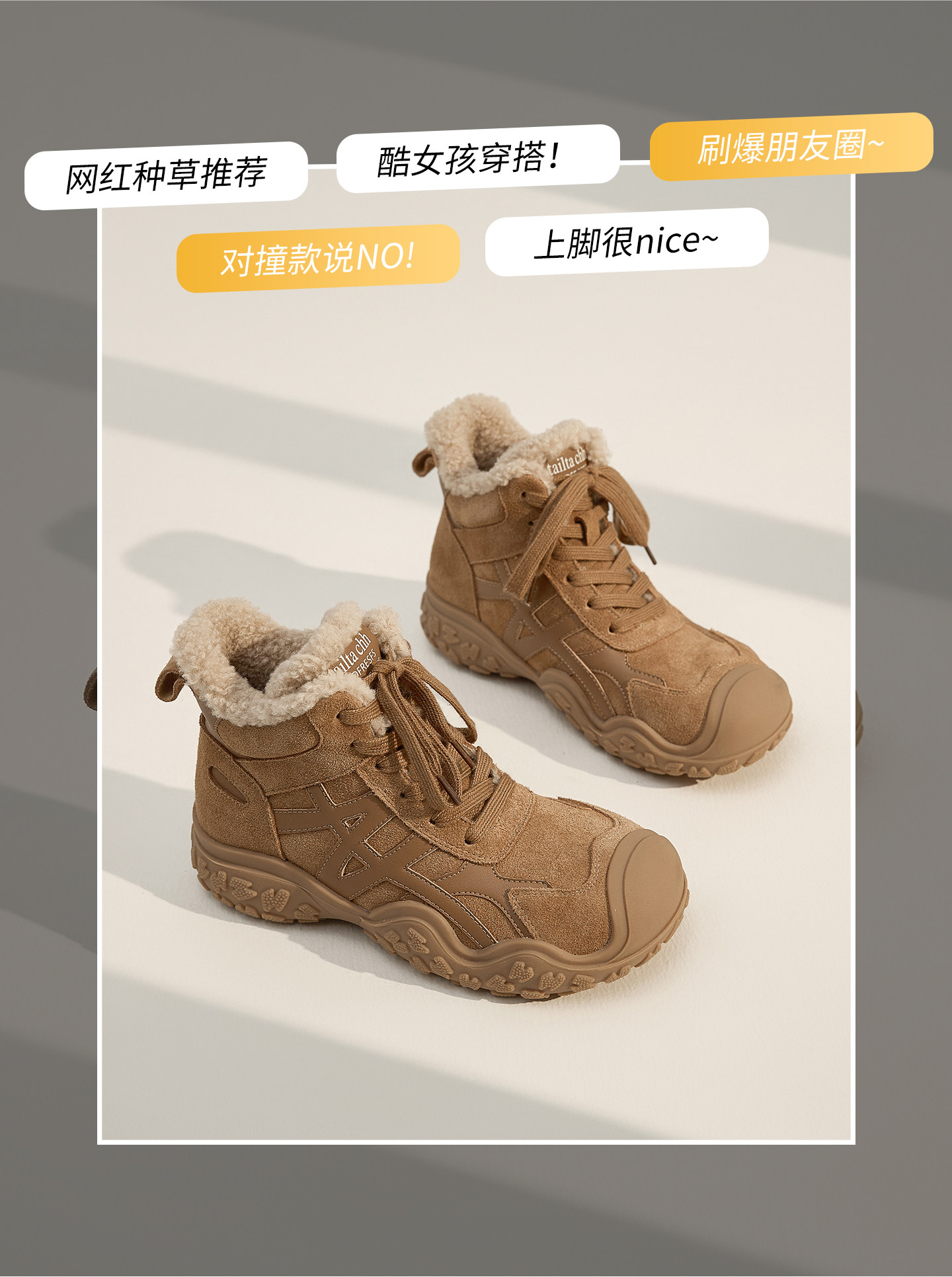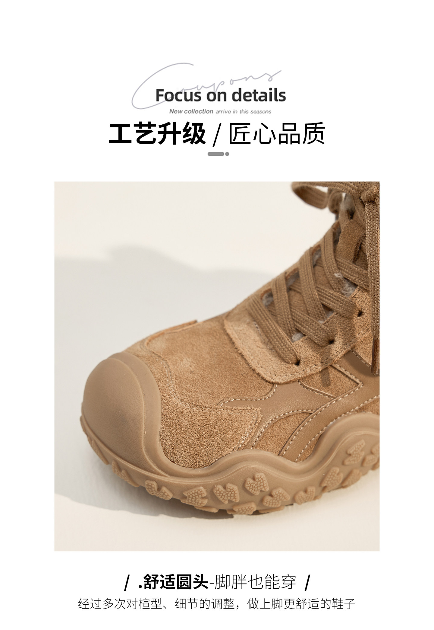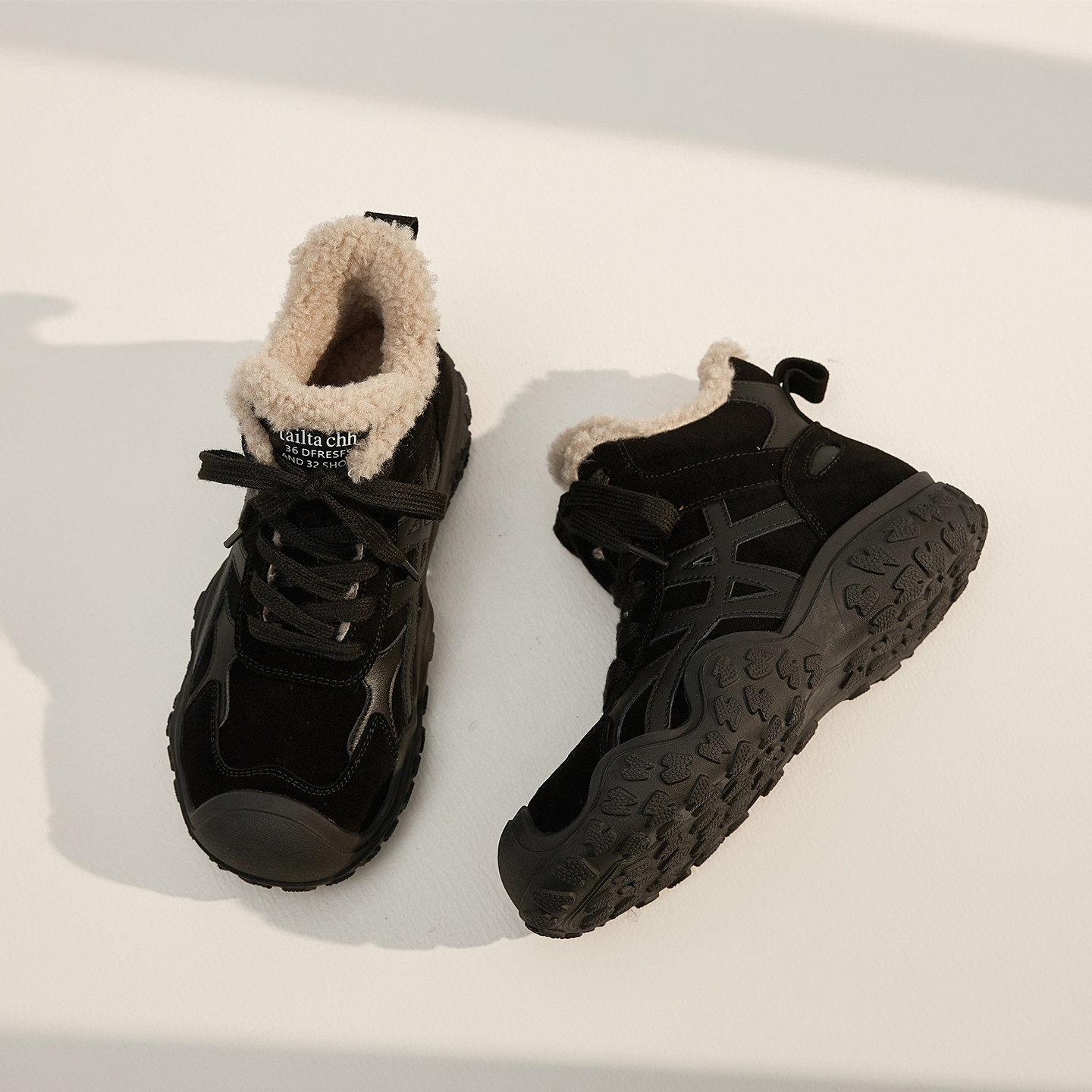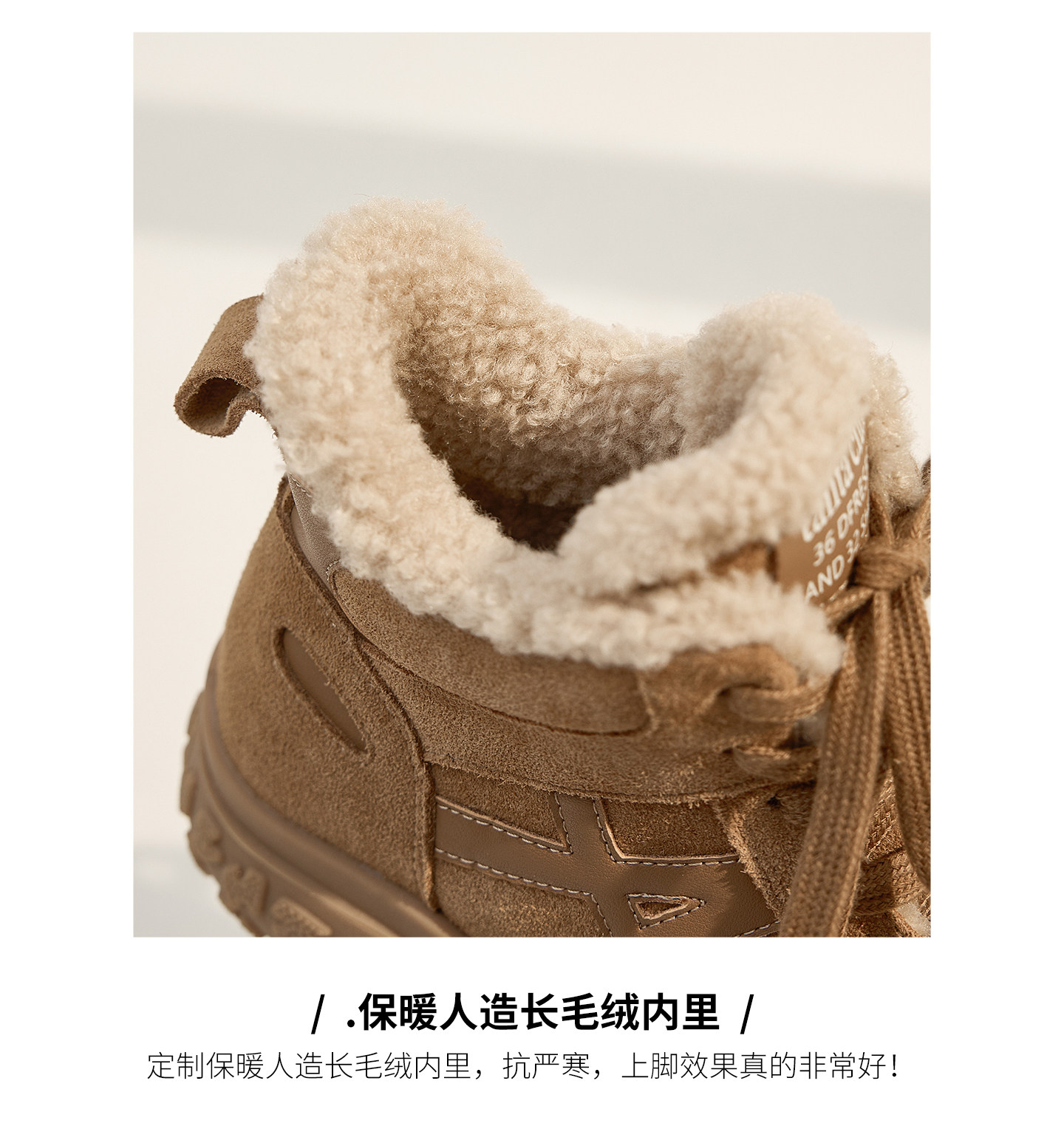 Thick-Soled Martin Boots for Women, 2025 Winter New Style, Fleece-Lined, Thickened, Warm, High-Top Cotton Shoes, Outdoor Hiking Snow Short Boots