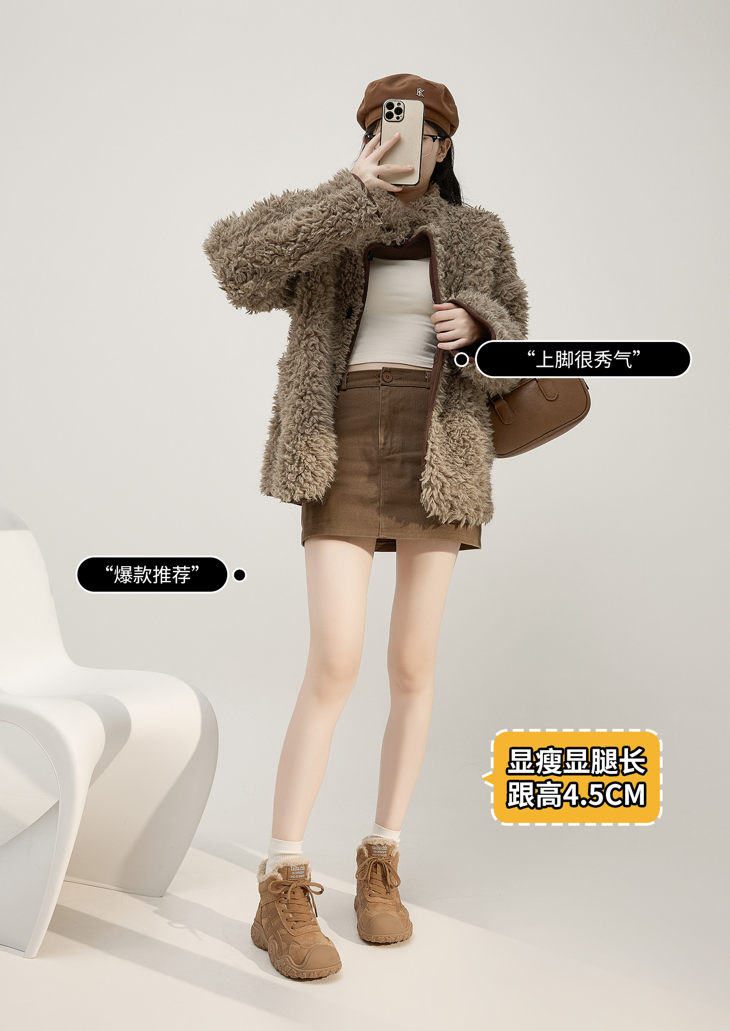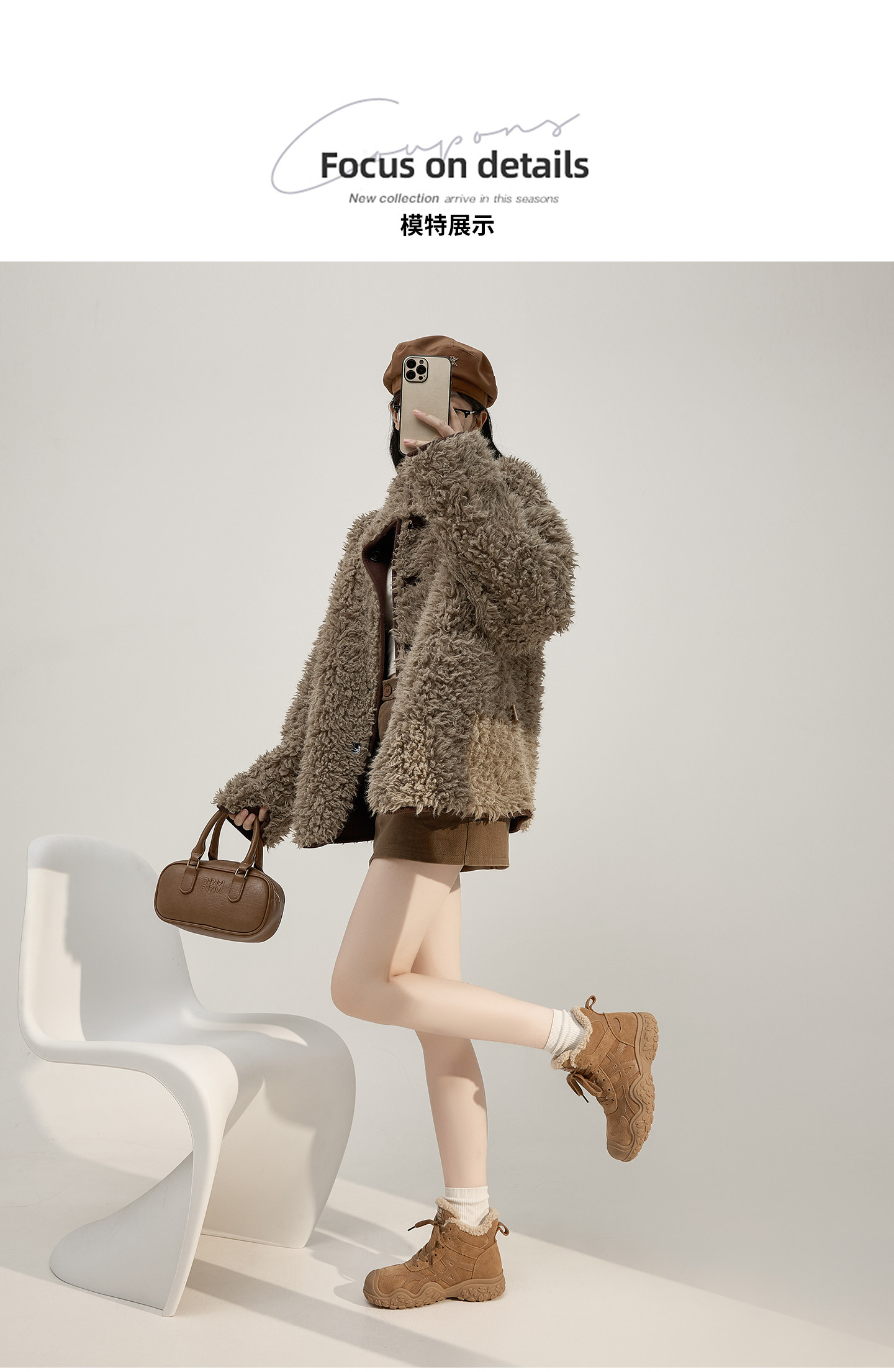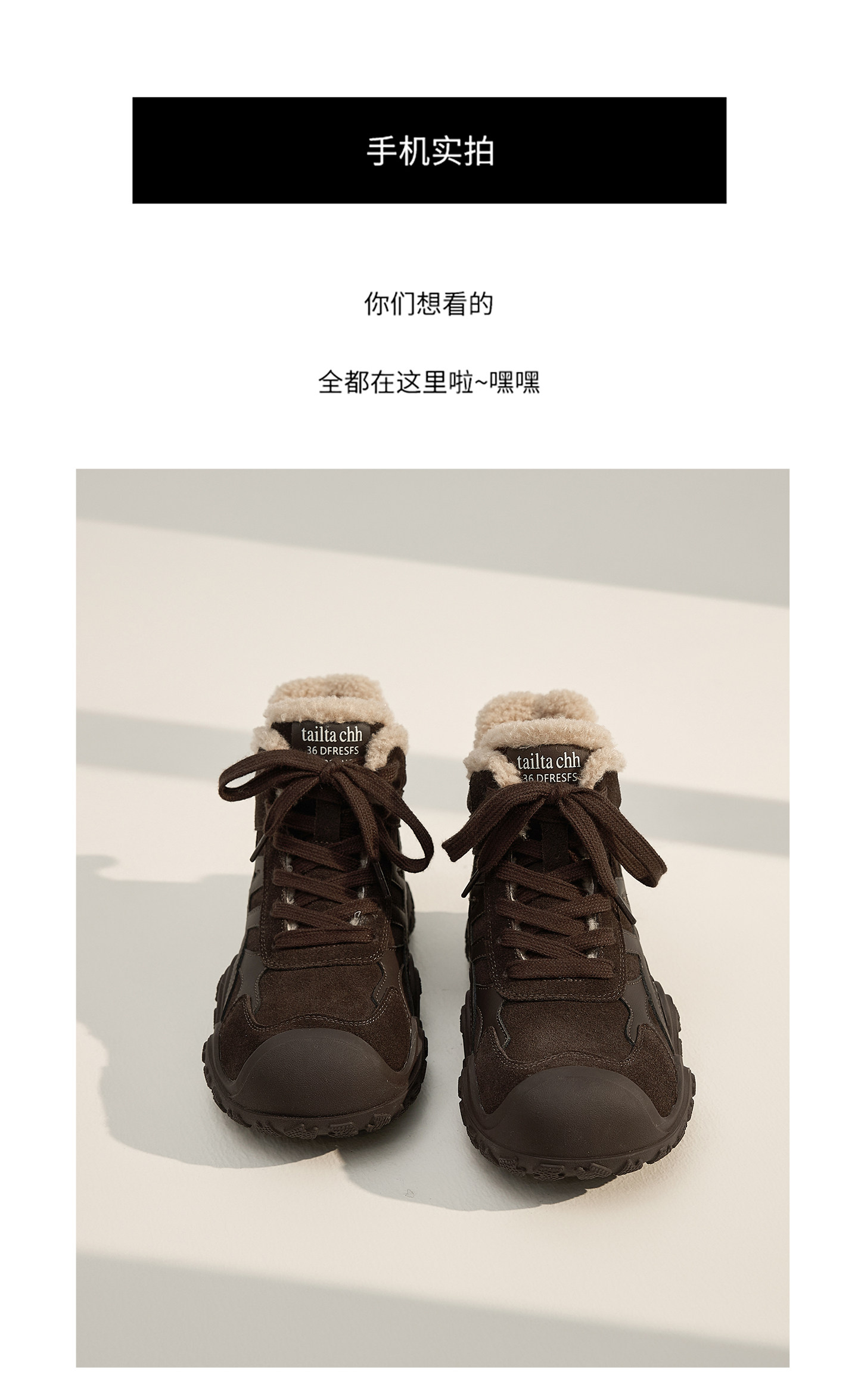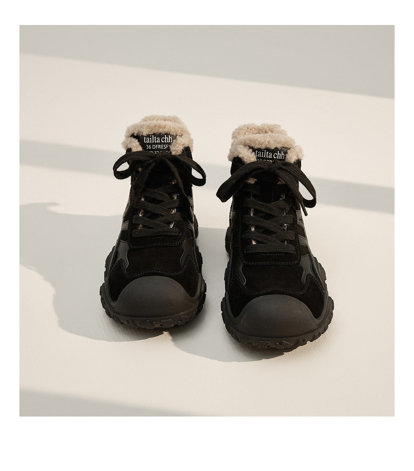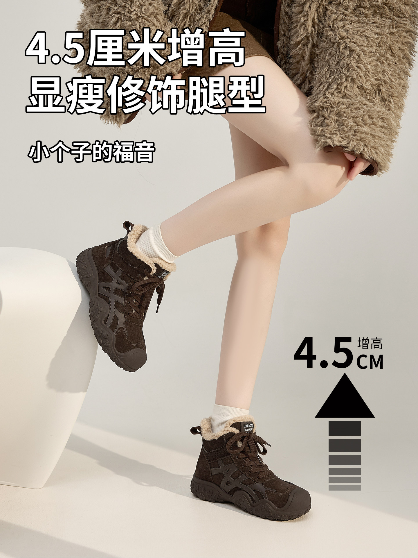 Thick-Soled Martin Boots for Women, 2025 Winter New Style, Fleece-Lined, Thickened, Warm, High-Top Cotton Shoes, Outdoor Hiking Snow Short Boots