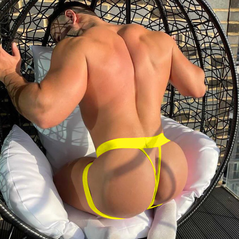 Men's Thong Sexy Low-Waist Tight-Fitting Butt-Lifting Sports Fitness U-Convex Pouch Seamless Breathable Solid Color Underwear