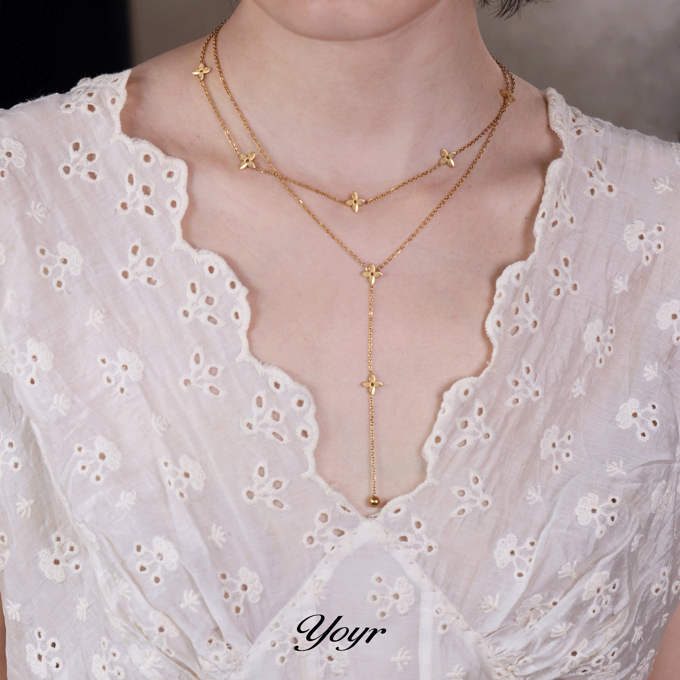 Yoyr Titanium Steel Necklace Four-Leaf Flower Double-Layered Necklace High-End Accessible Luxury Y-Shaped Chain Elegant and Simple Necklace