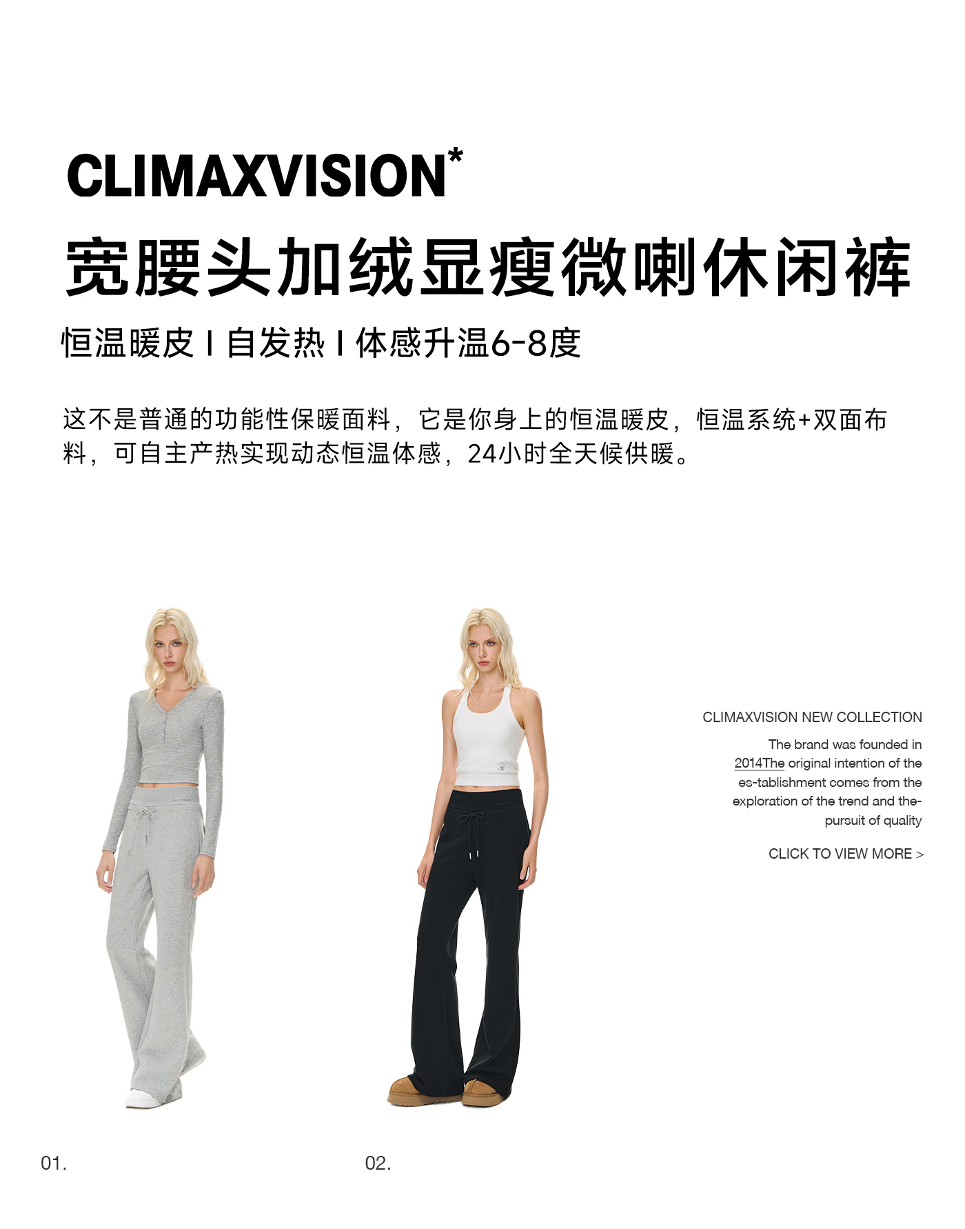 Climax Vision Constant Warmth Plush Velvet Wide Waistband Slimming Fleece-Lined Sweatpants for Women