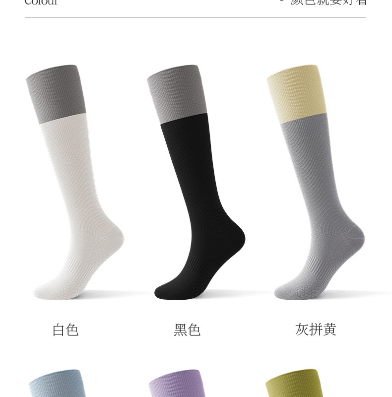 Color-Blocking Sports Compression Calf Socks Slimming Compression Socks for Outdoor Hiking, Mountaineering, and Cycling Long Socks