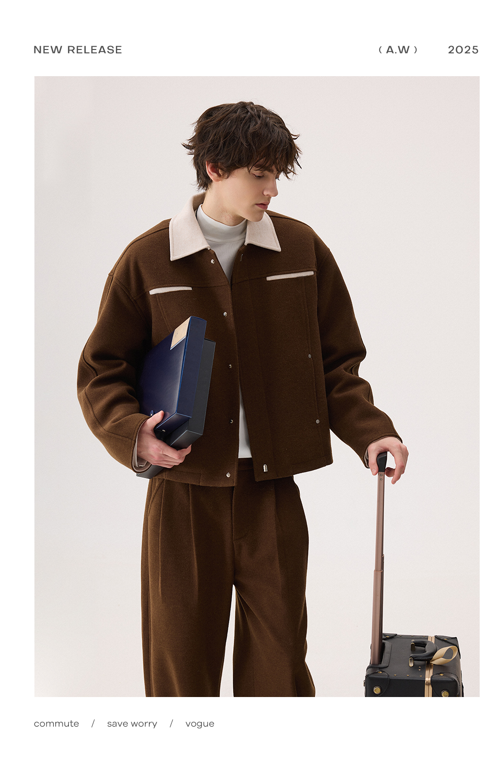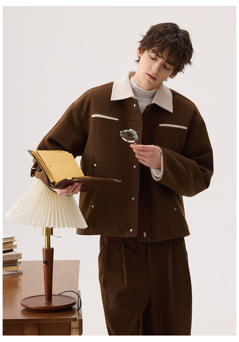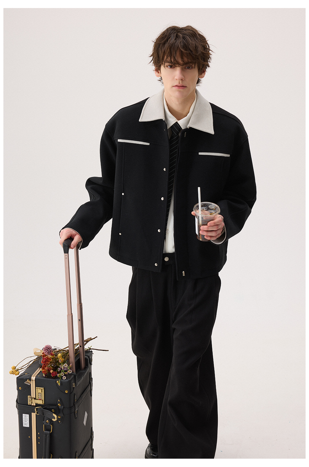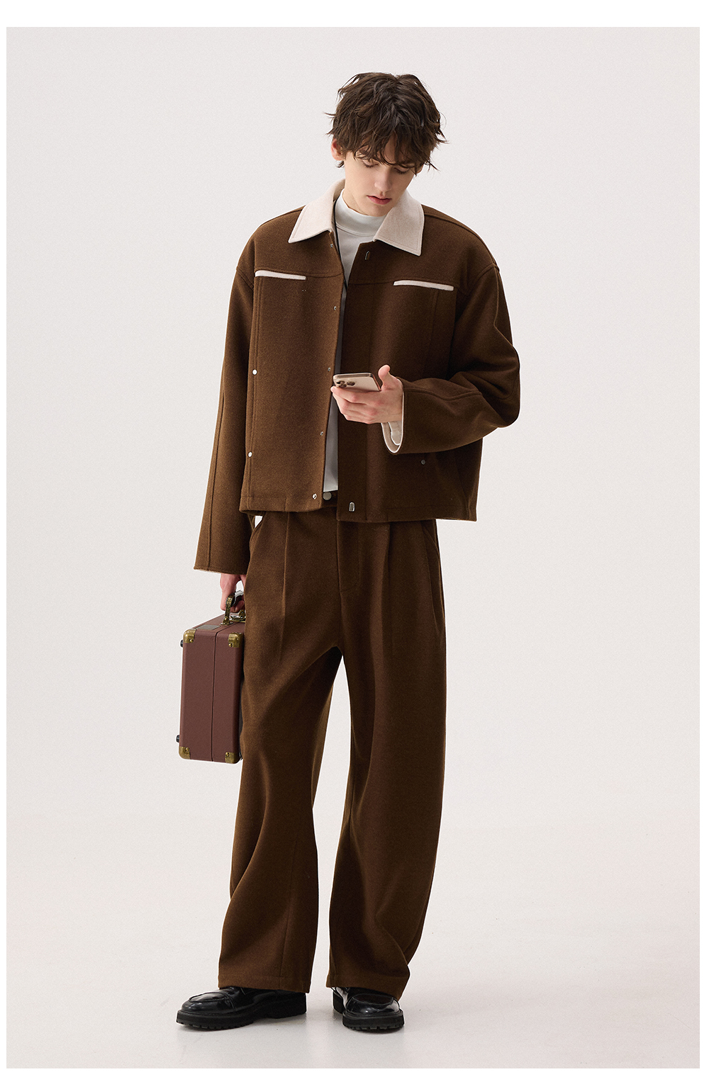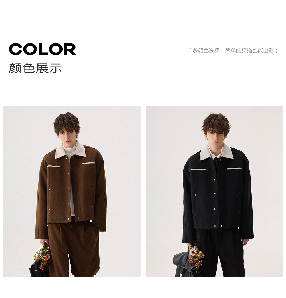 Chicerro Sicilian Men's Winter High-End Color-Blocked Woolen Coat Men's Suit Casual Complete Set Trendy