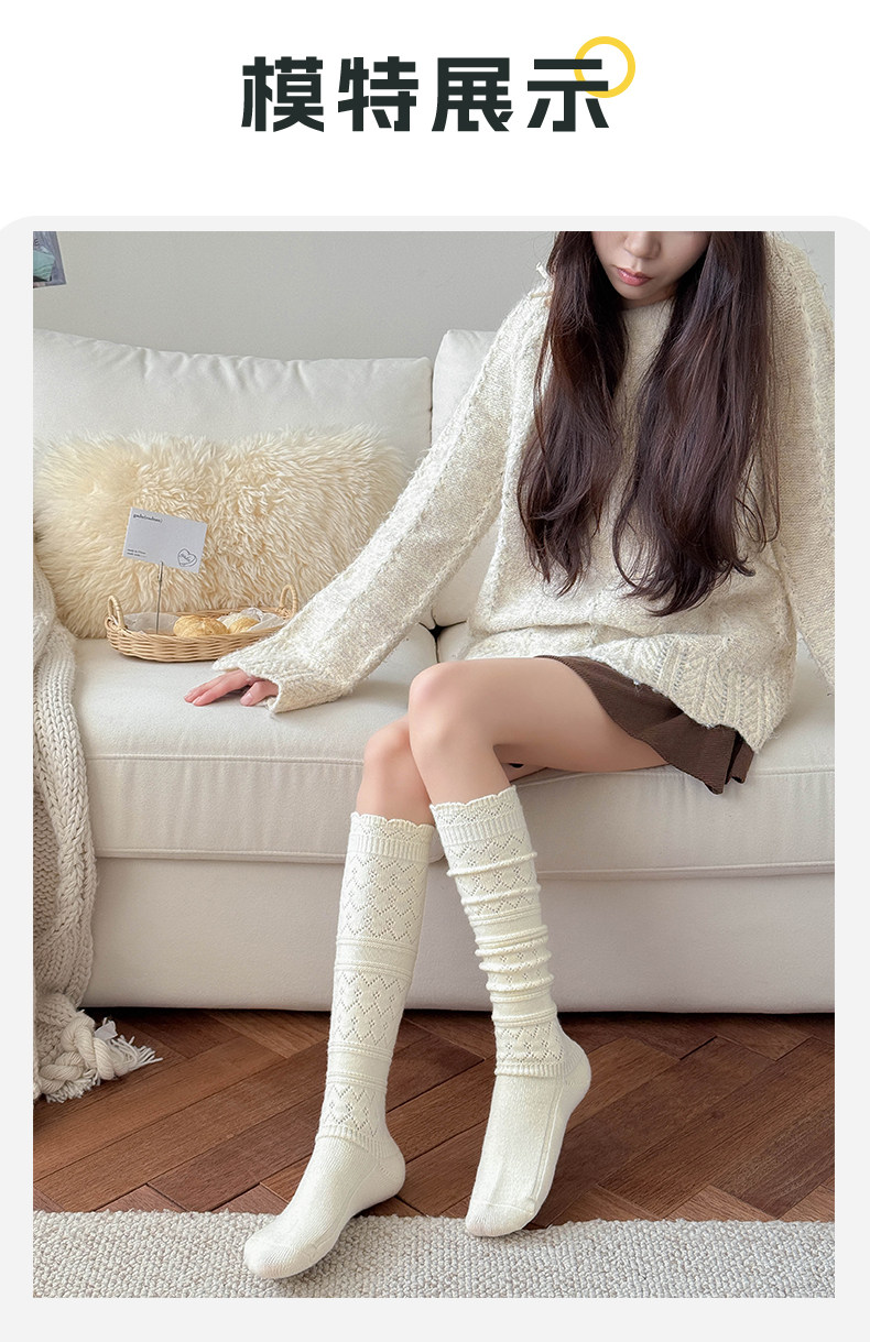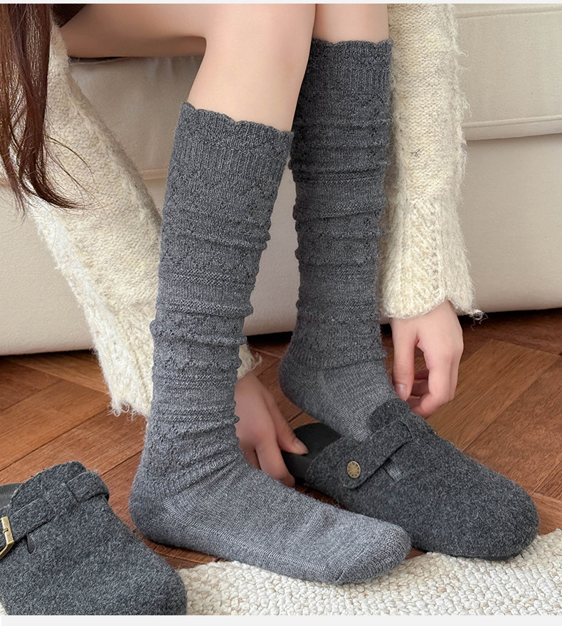 Japanese Retro Hollow Wool Calf Socks for Women, Mid-Calf Slouch Socks, Autumn and Winter Warm Socks to Match Boots, Long Socks, Boot Socks