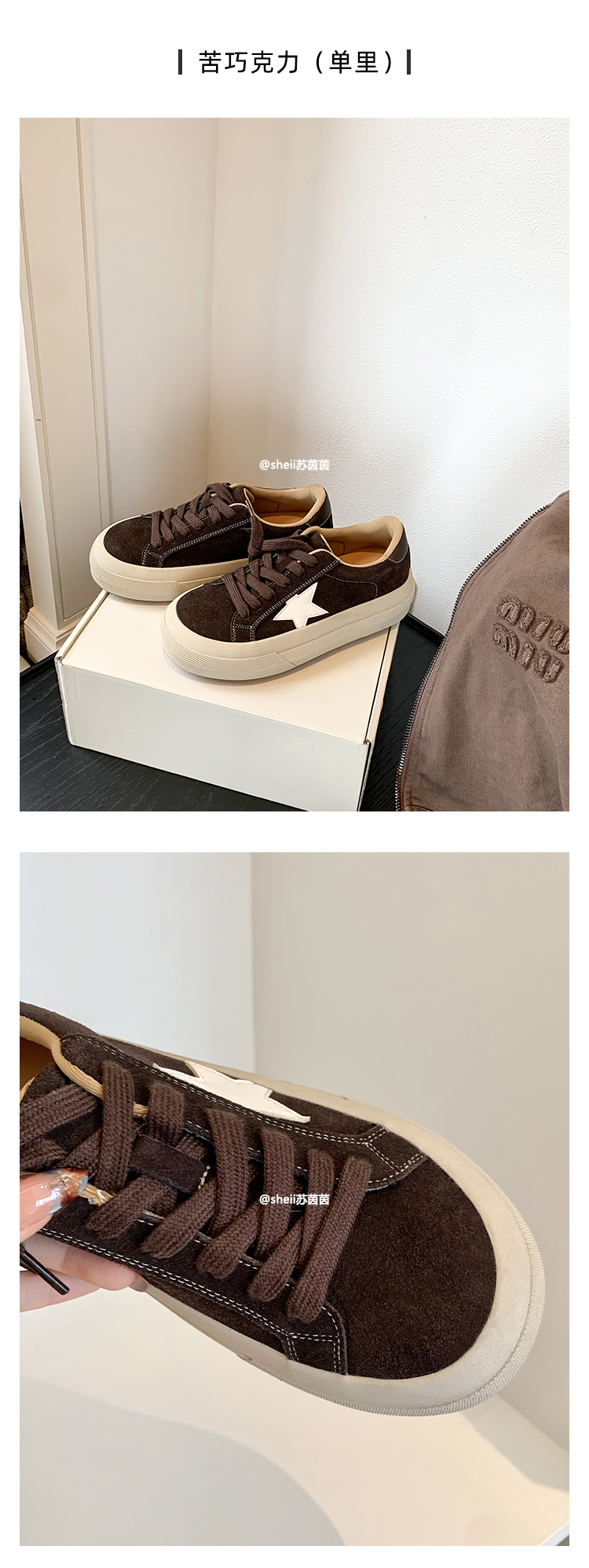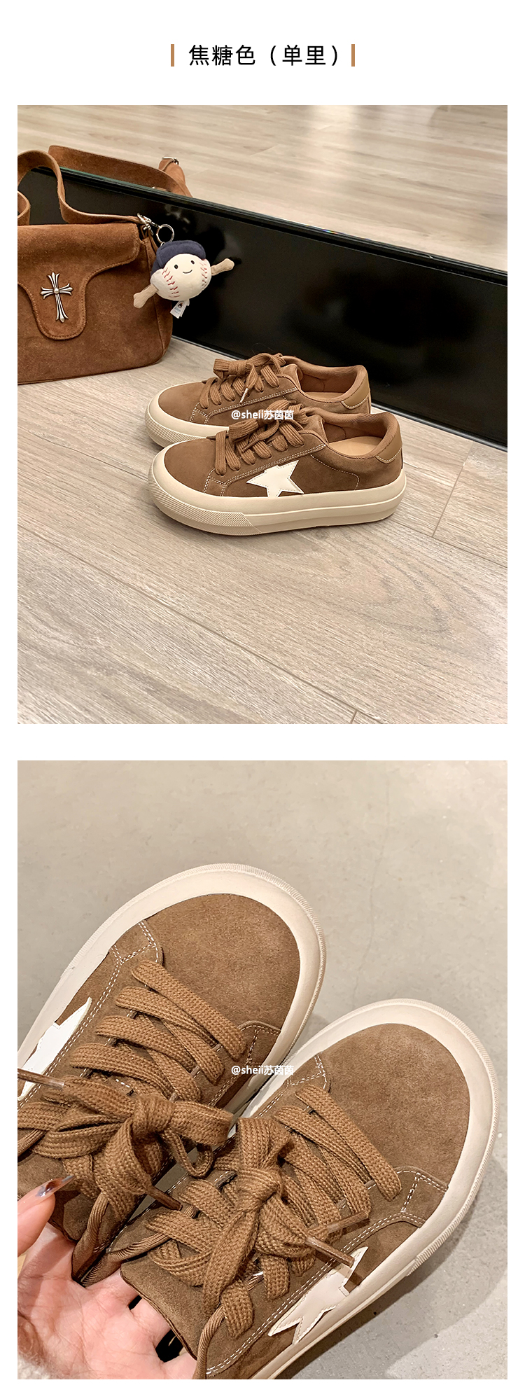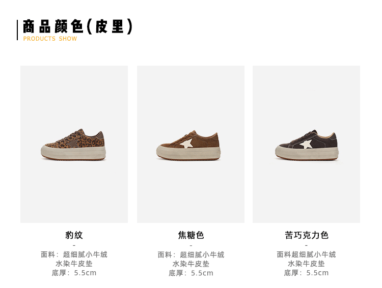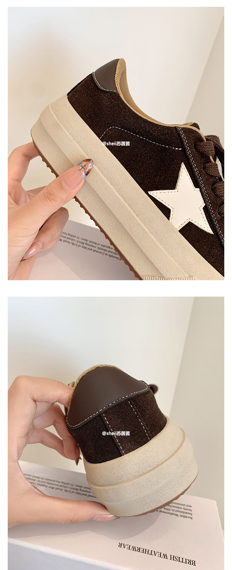 【Su Yinyin】Mocha Small Wool~ Fleece-Lined 5.5cm Thick-Soled Star-Patterned Casual Shoes, Distressed Sneakers for Women
