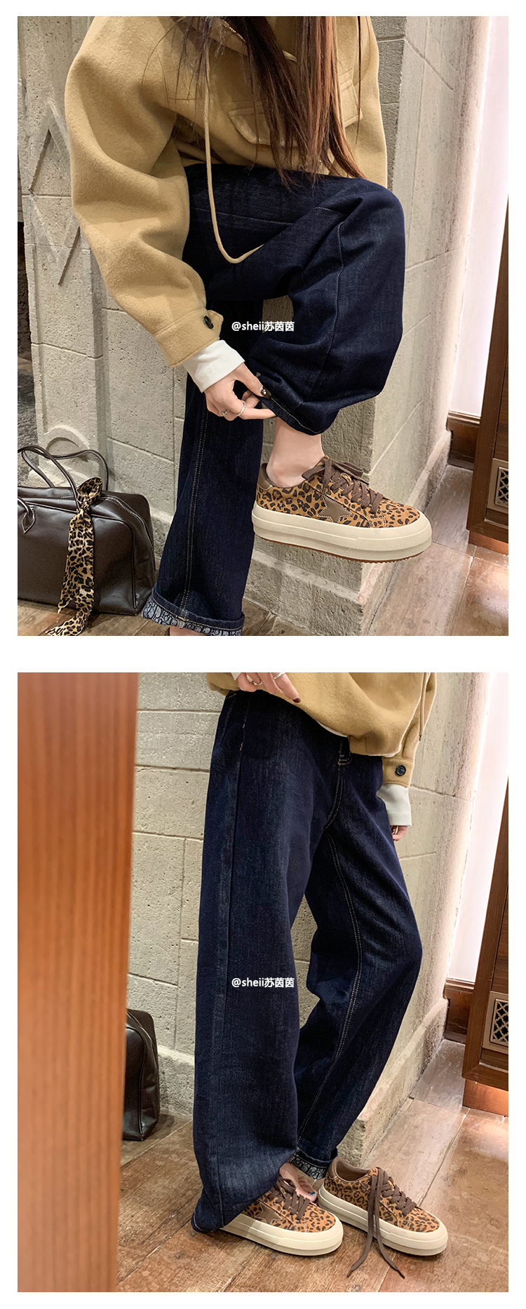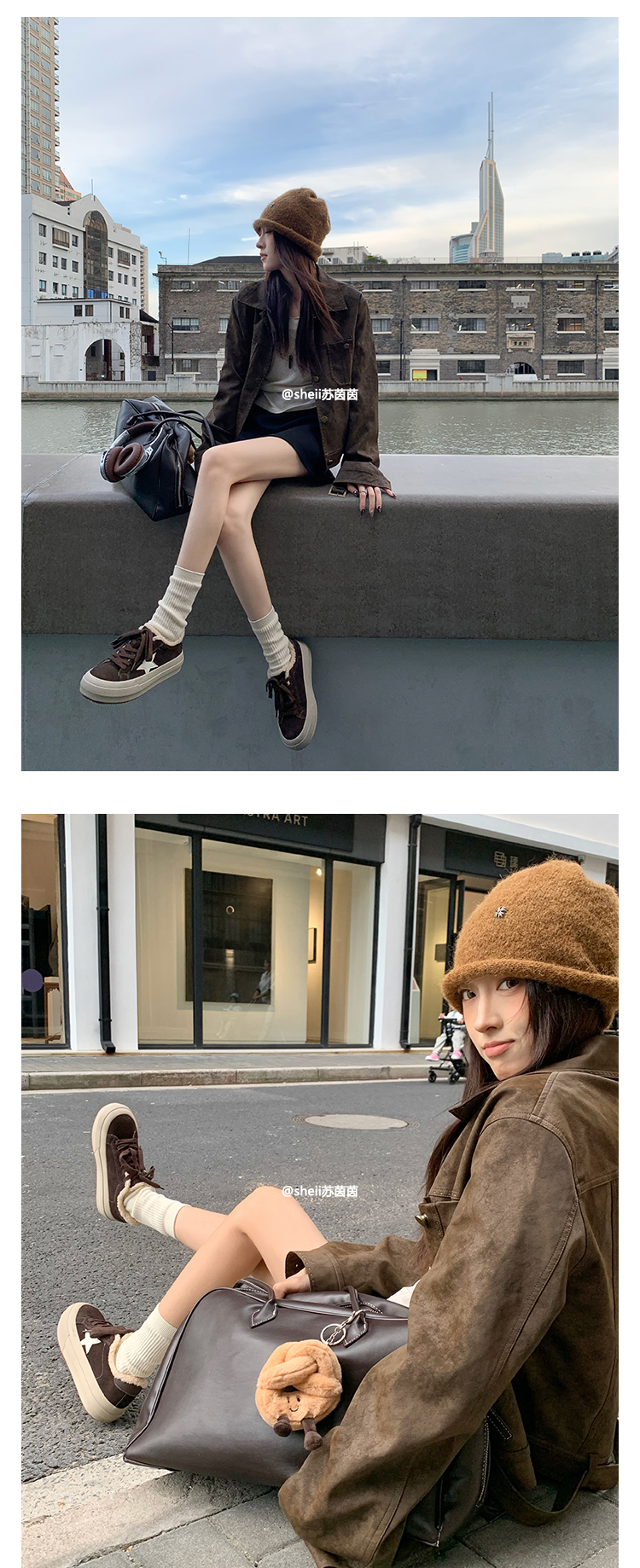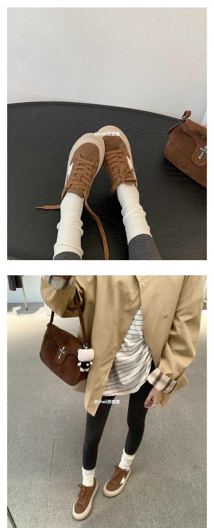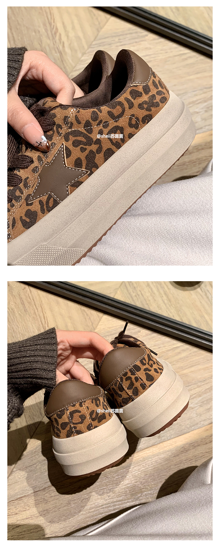 【Su Yinyin】Mocha Small Wool~ Fleece-Lined 5.5cm Thick-Soled Star-Patterned Casual Shoes, Distressed Sneakers for Women
