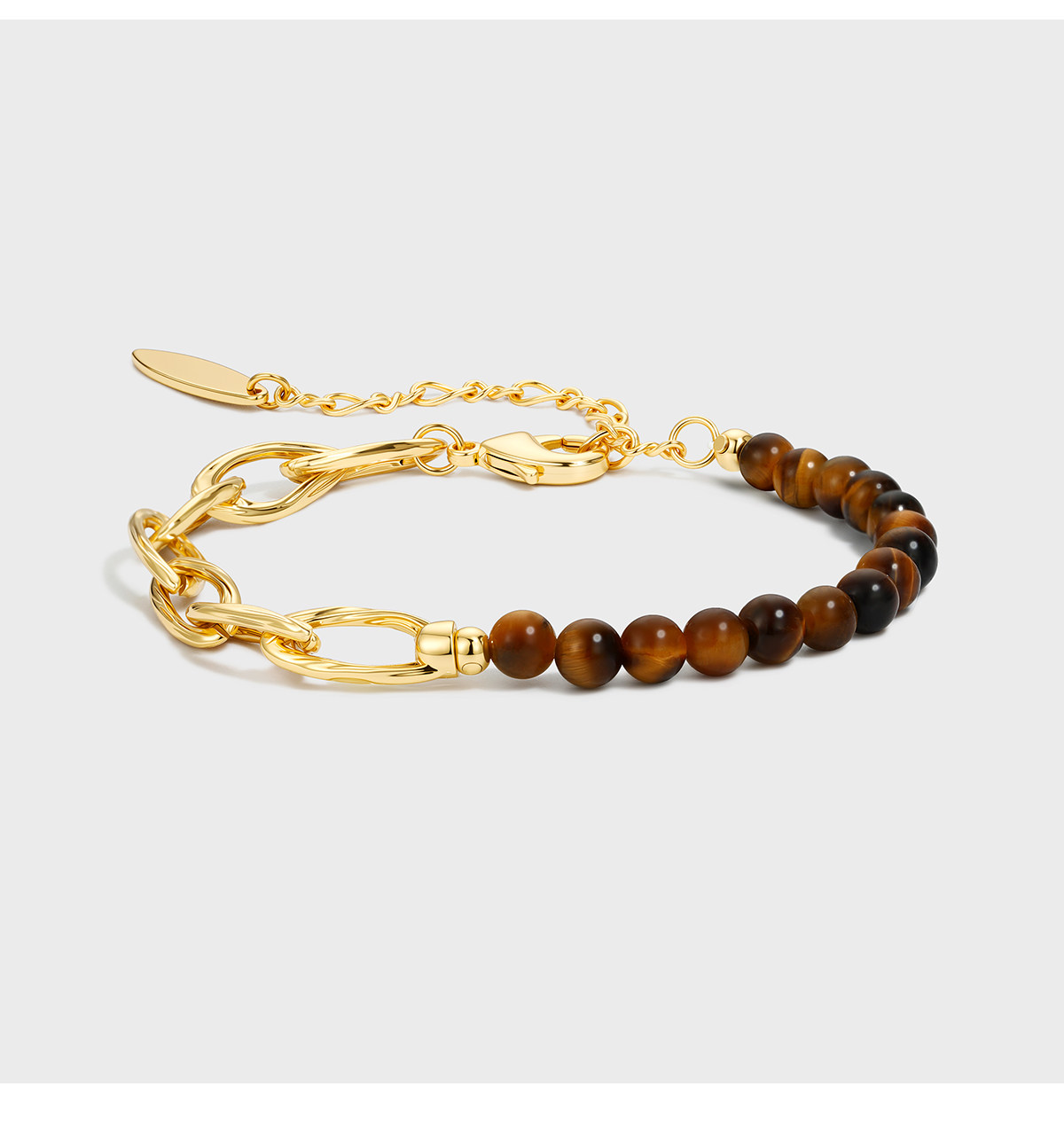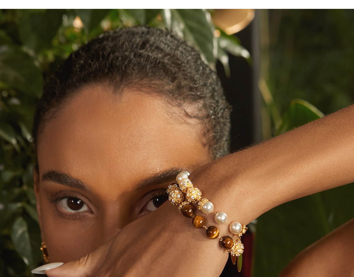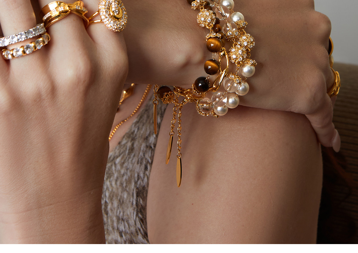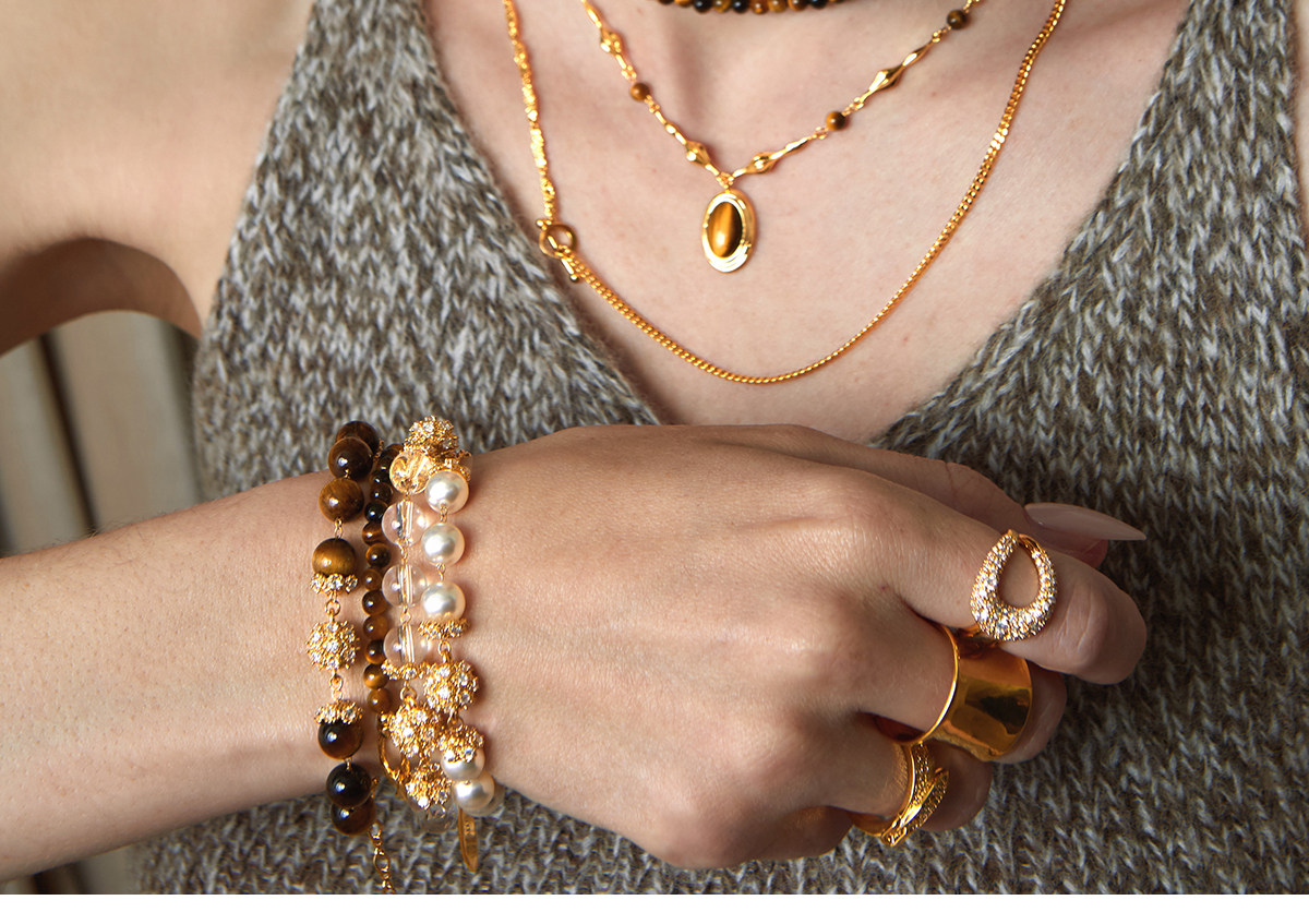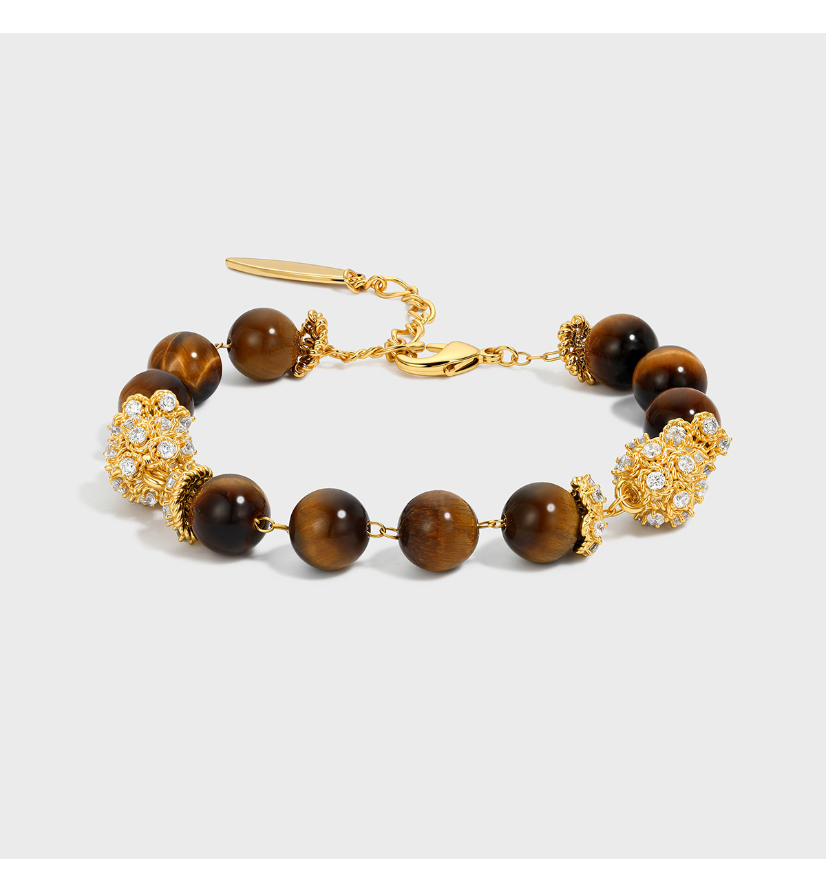 Boonee Alus Gilt Series Tiger Eye Stone Crystal Bracelet for Women, Accessible Luxury, Exquisite Filigree Beaded Pearl Bracelet