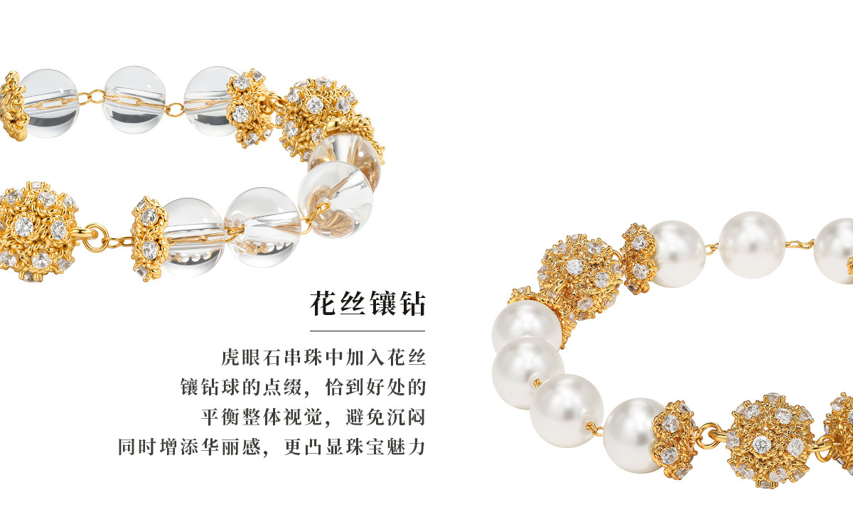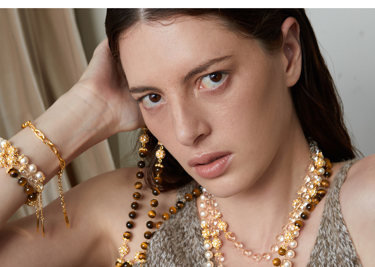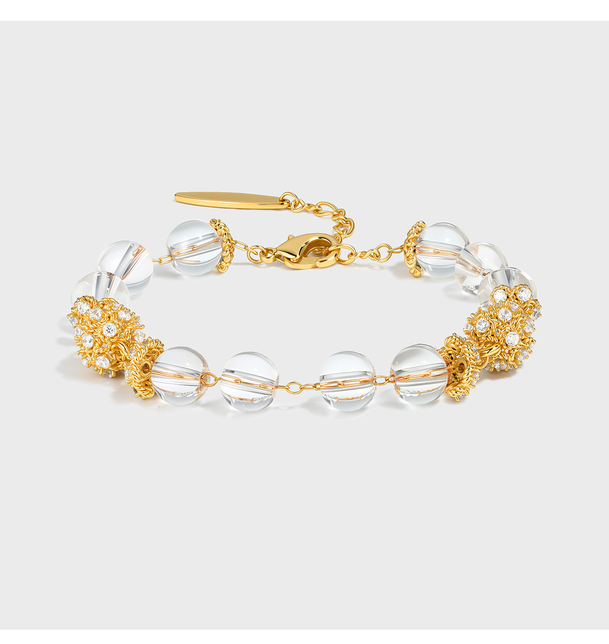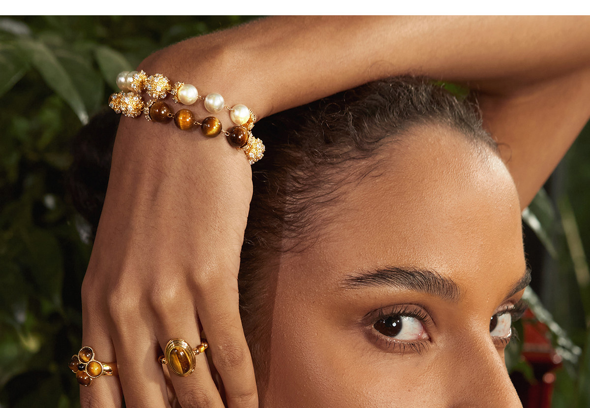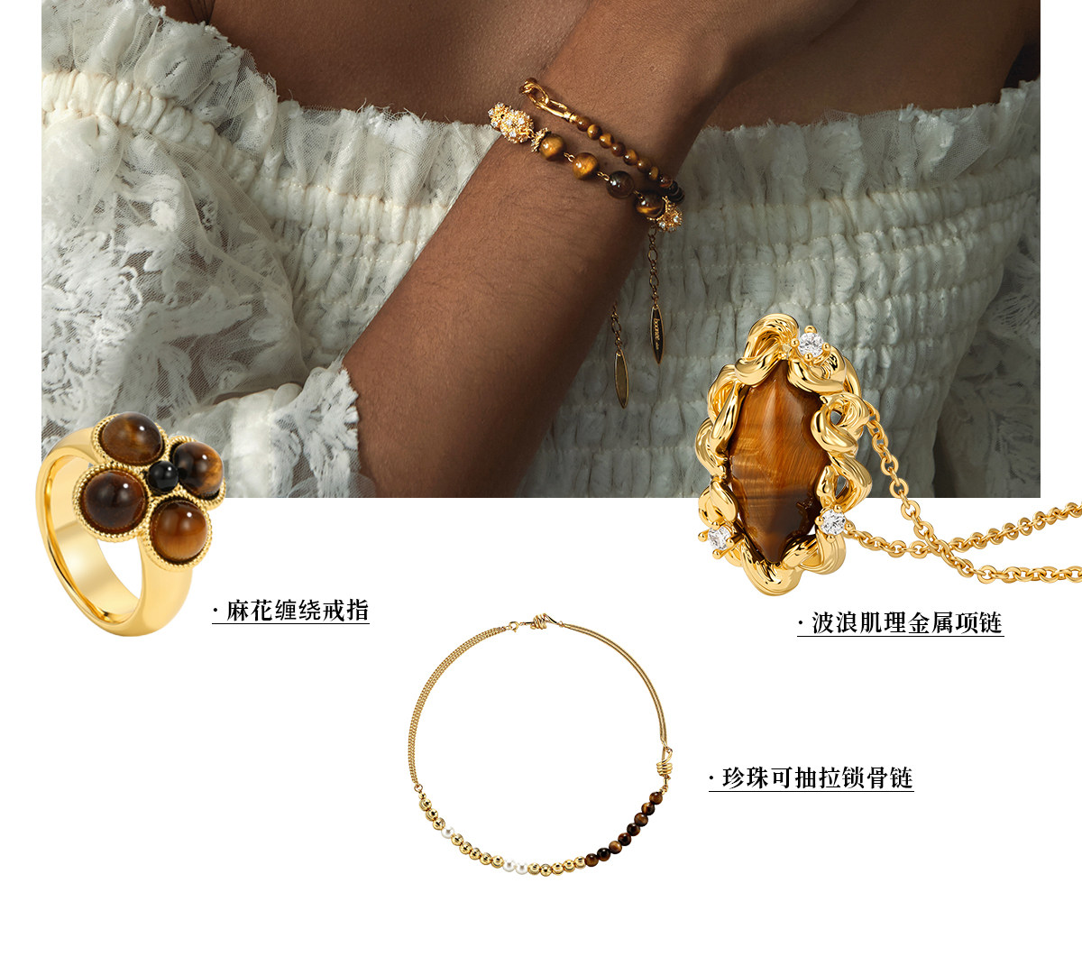 Boonee Alus Gilt Series Tiger Eye Stone Crystal Bracelet for Women, Accessible Luxury, Exquisite Filigree Beaded Pearl Bracelet