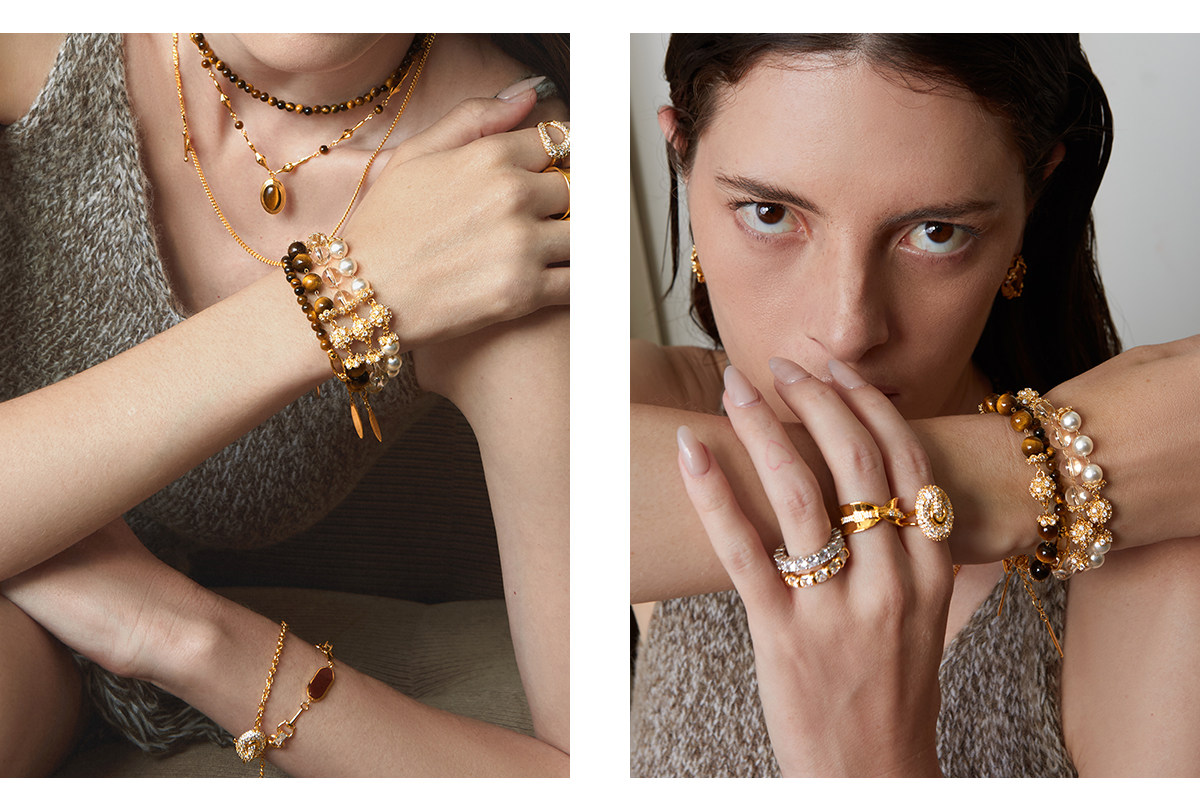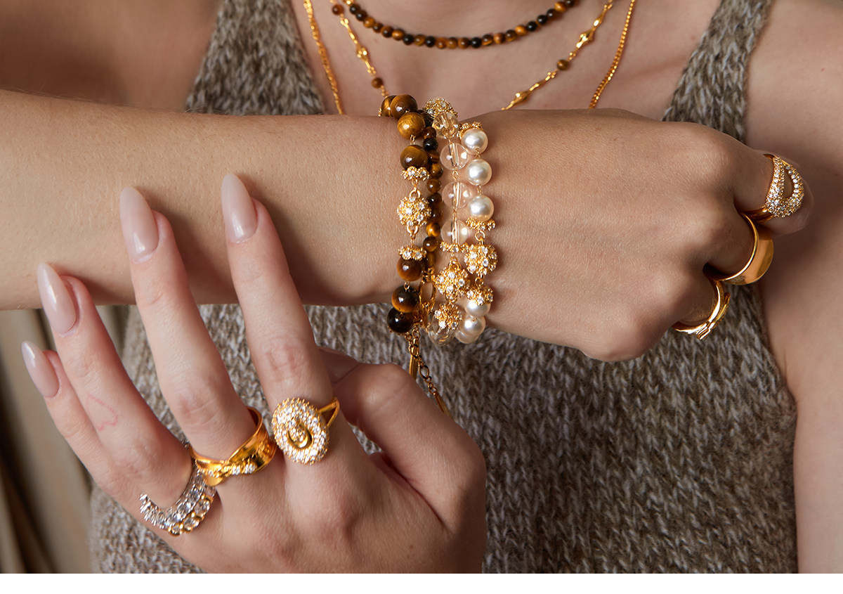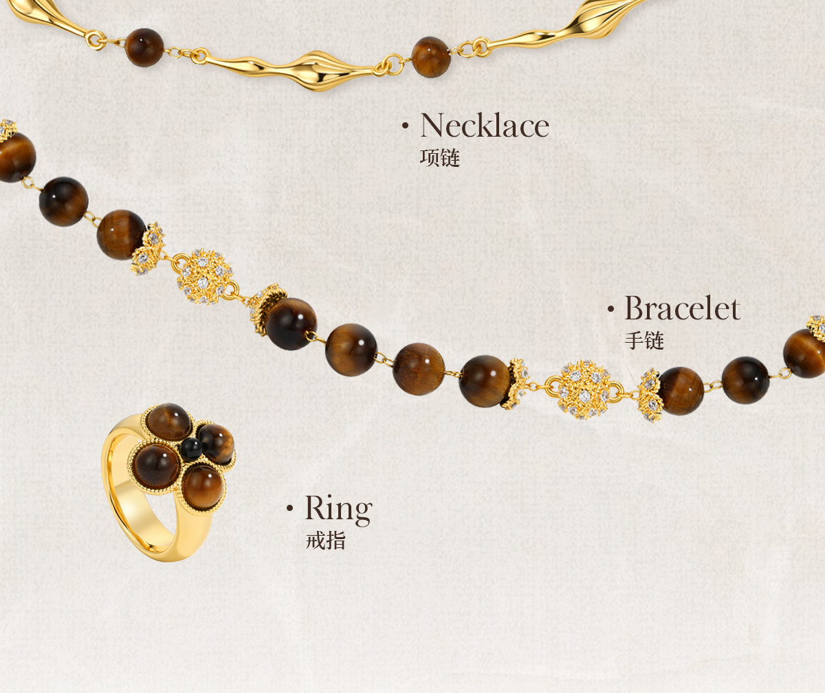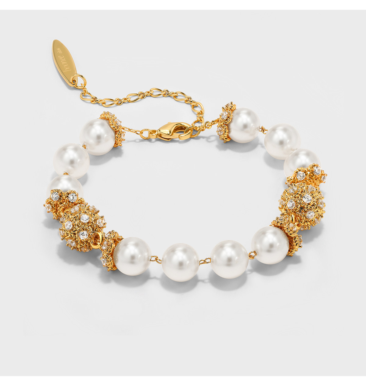Boonee Alus Gilt Series Tiger Eye Stone Crystal Bracelet for Women, Accessible Luxury, Exquisite Filigree Beaded Pearl Bracelet