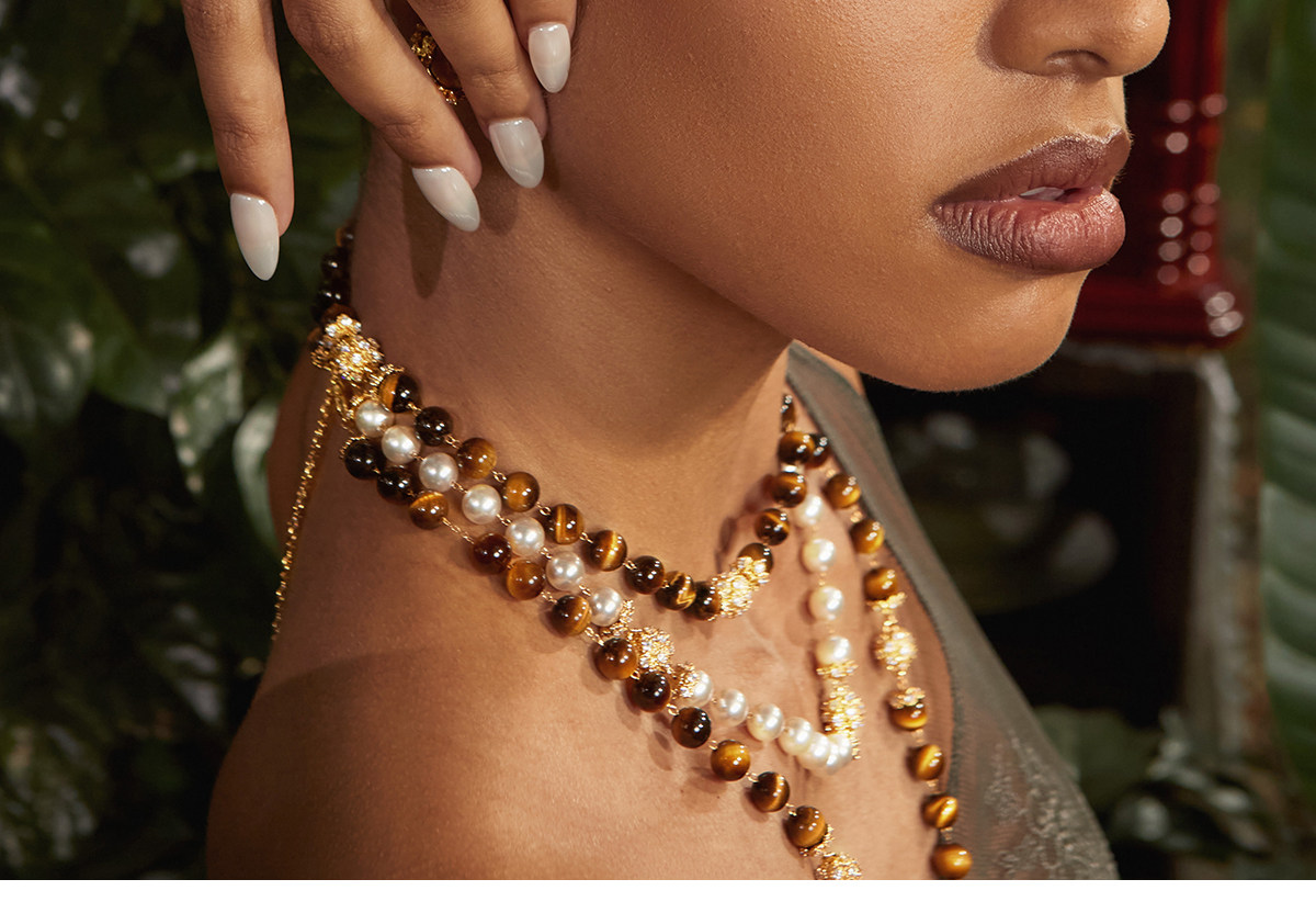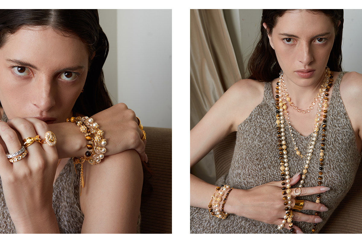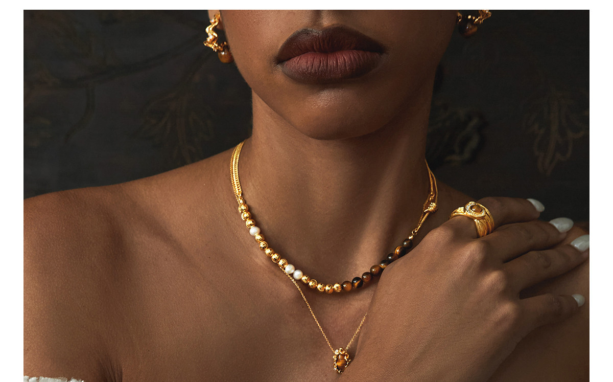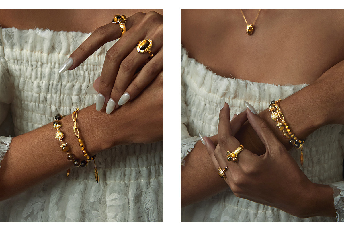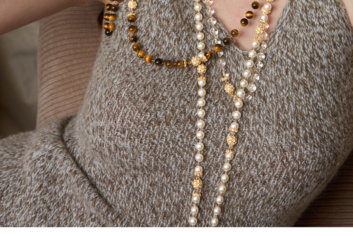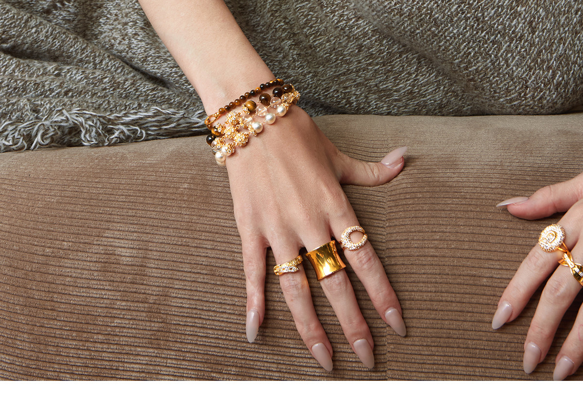 Boonee Alus Gilt Series Tiger Eye Stone Crystal Bracelet for Women, Accessible Luxury, Exquisite Filigree Beaded Pearl Bracelet