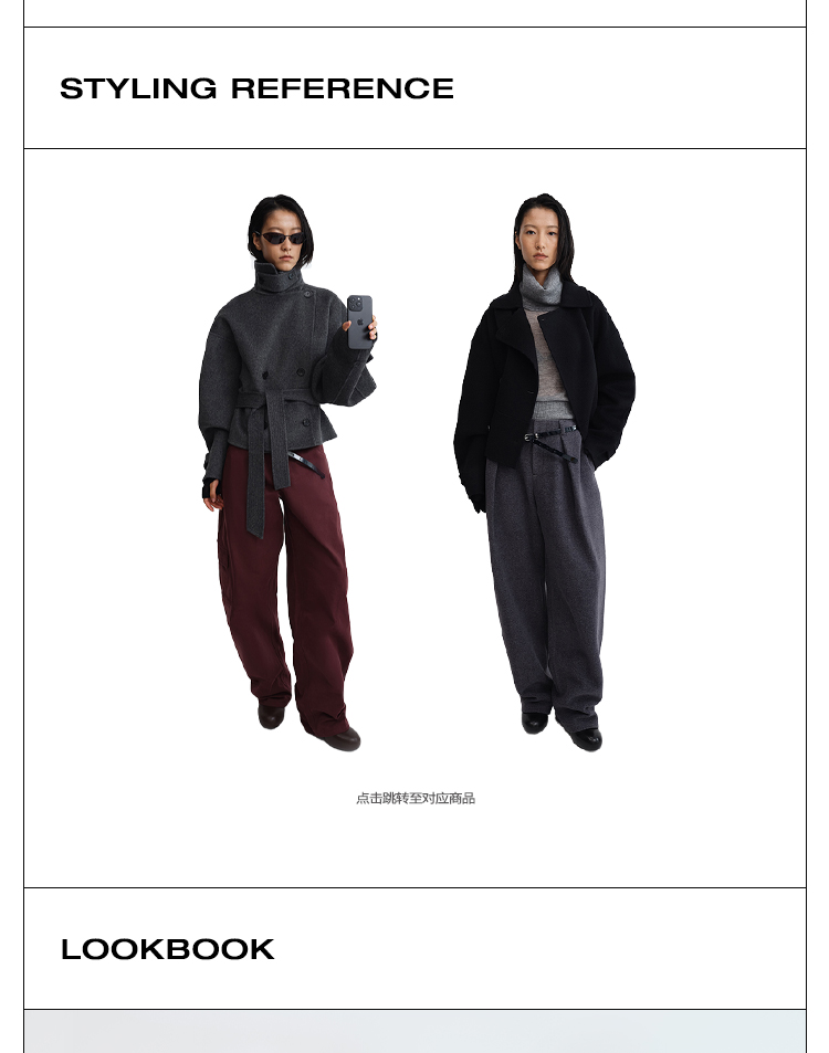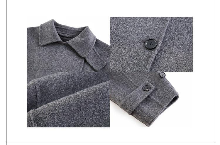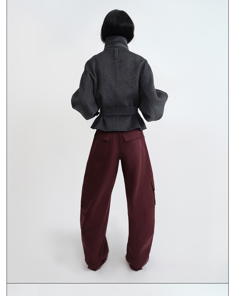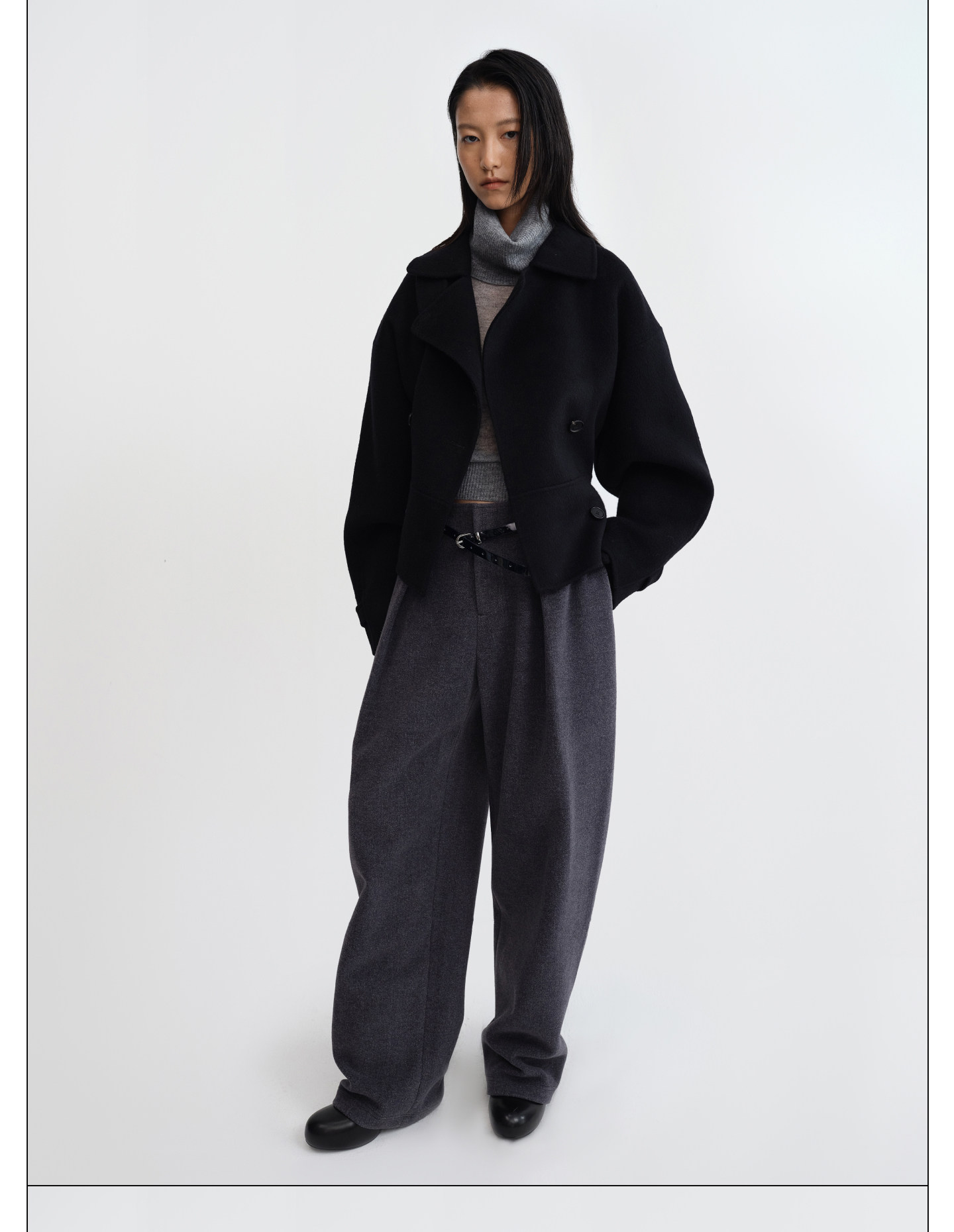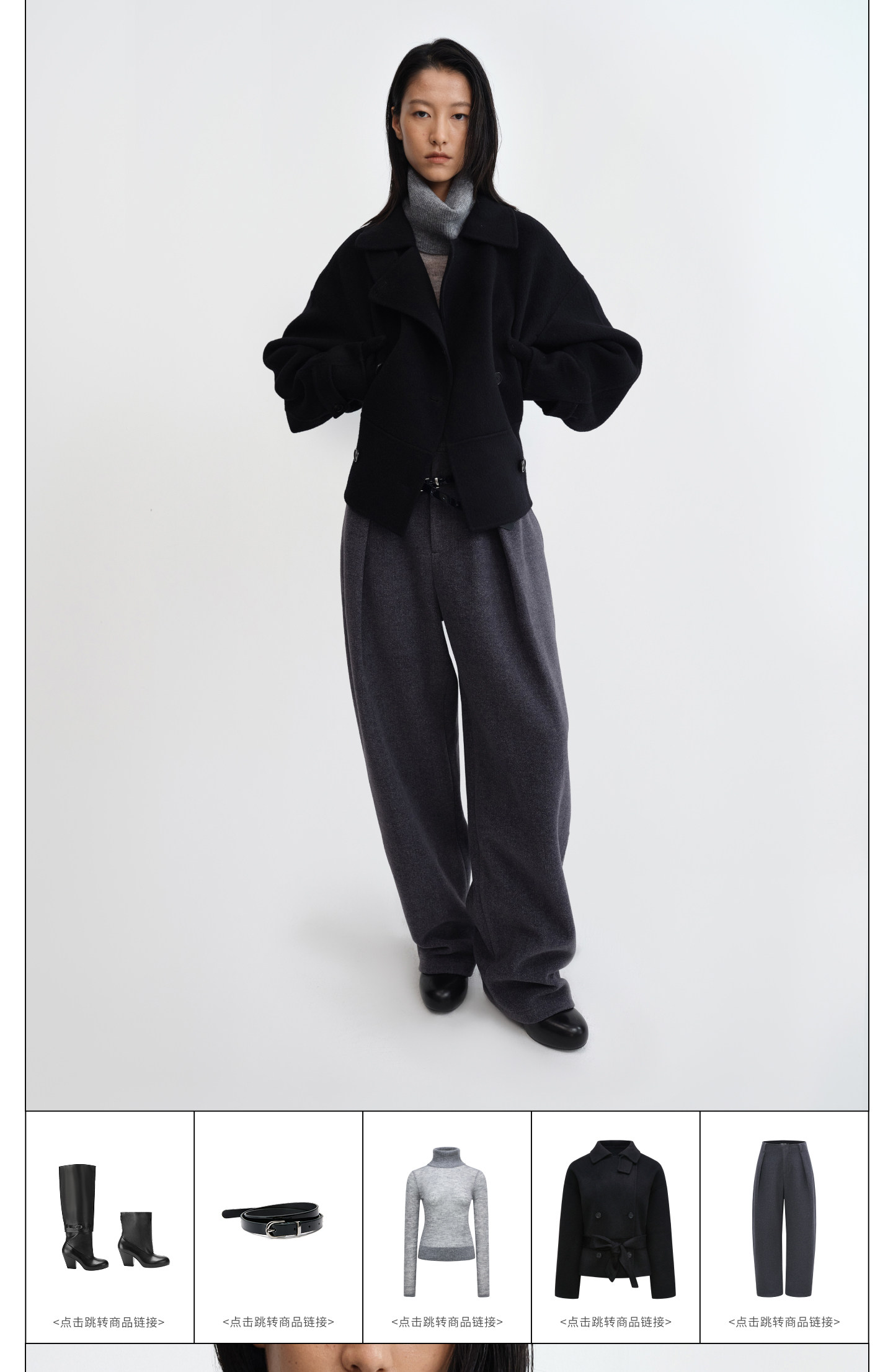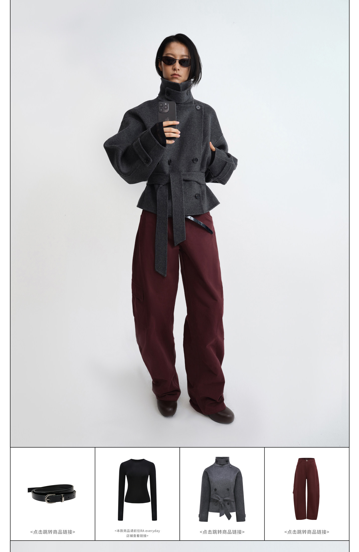 Rarely Alike Double-Breasted Lace-Up Short Wool Double-Sided Coat Black/Grey