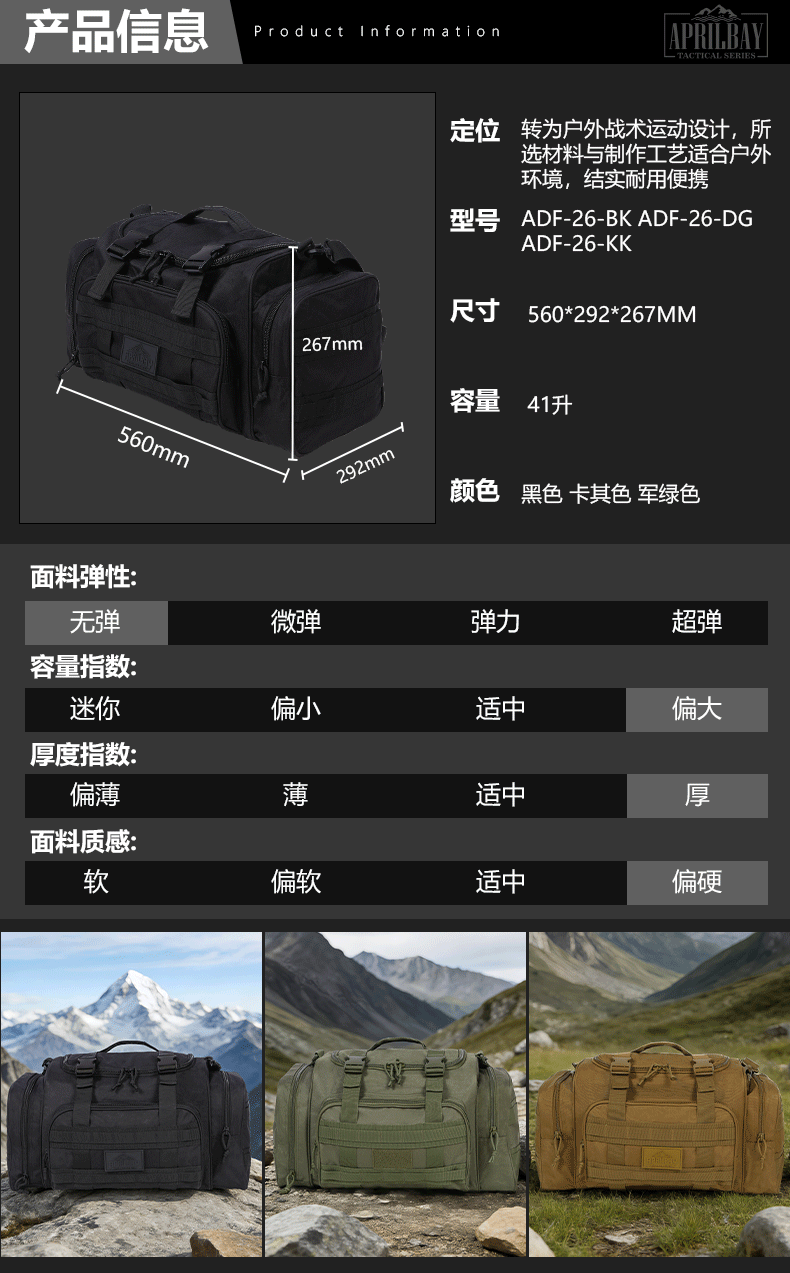 Aprilbay Outdoor Tactical Handbag Crossbody Travel Bag Large Capacity Boarding Checked Bag Fitness Military Fan Bag