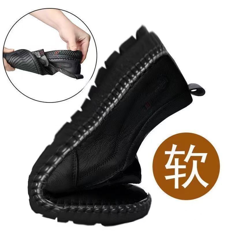Men's Business Slip-On Leather Shoes, Non-Slip, Breathable, Soft-Soled Leather Shoes, Middle-Aged and Elderly Shoes, Casual Work Cotton Shoes, Chef's Warm Shoes