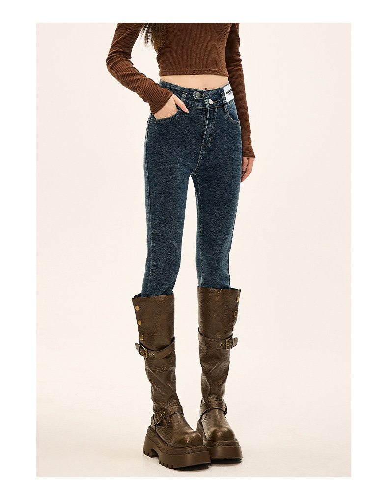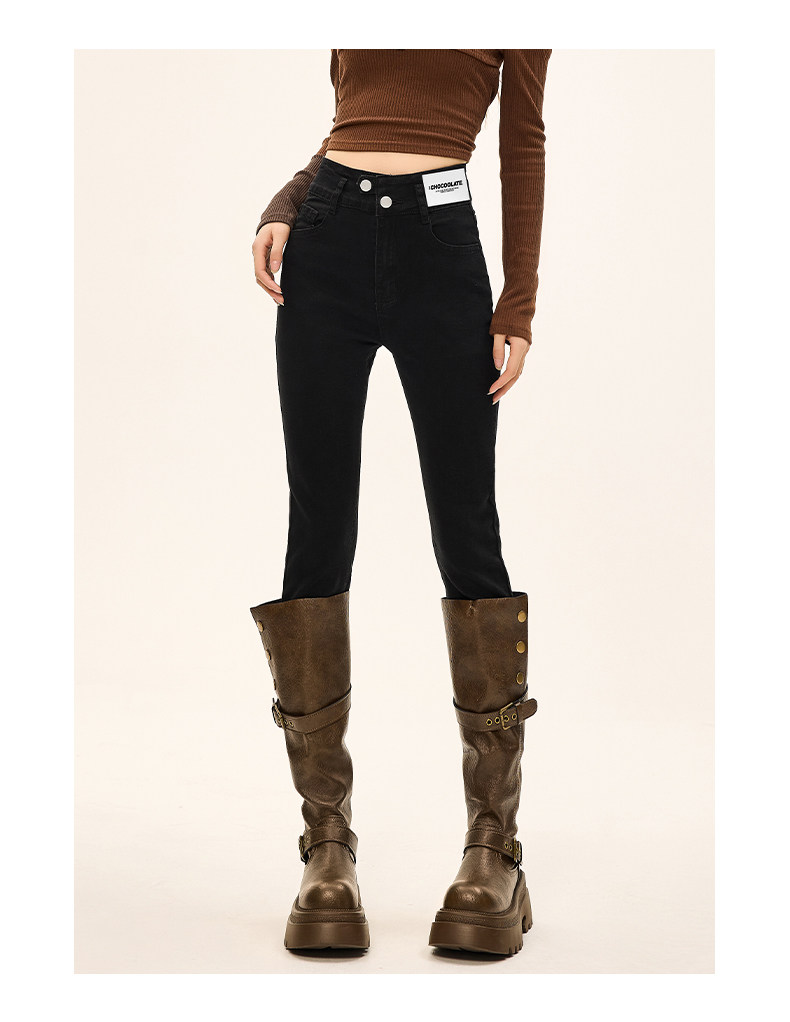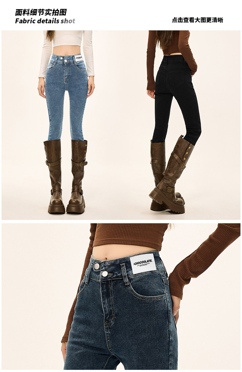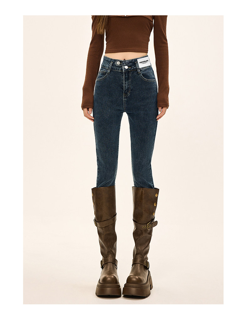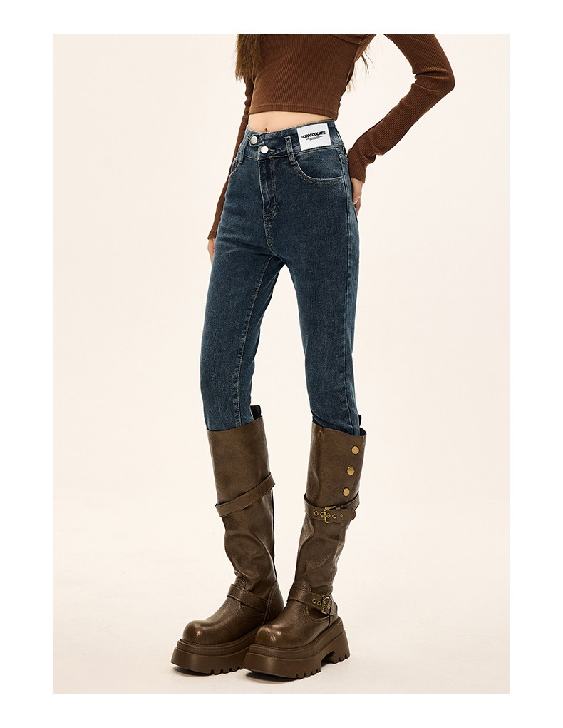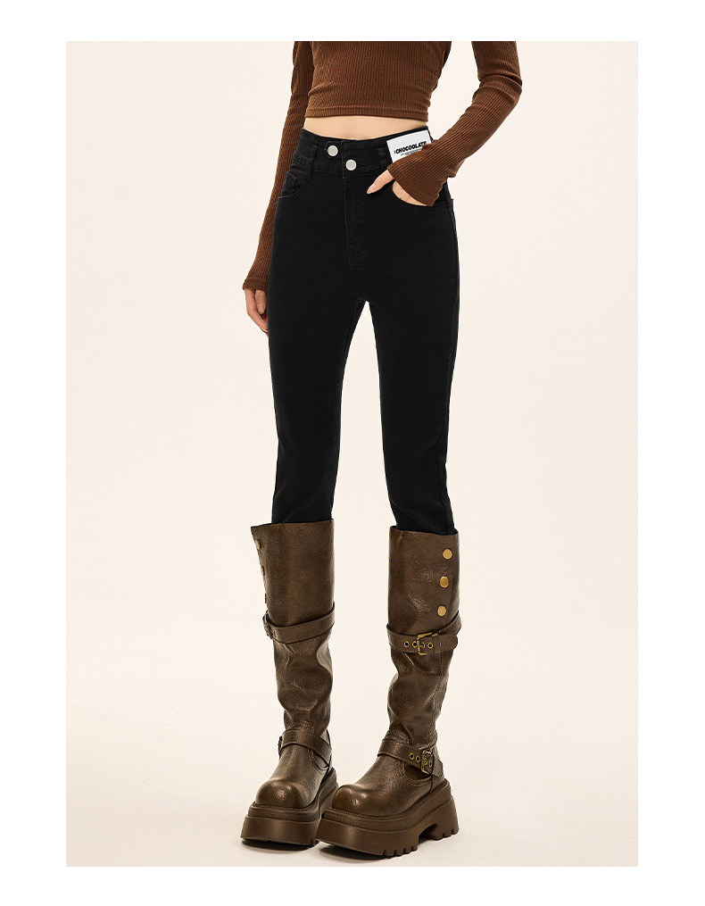 It: Chocoolate Korean Style High-Waisted Jeans for Women, Autumn and Winter Slim Fit, Stretchy Skinny Pencil Pants
