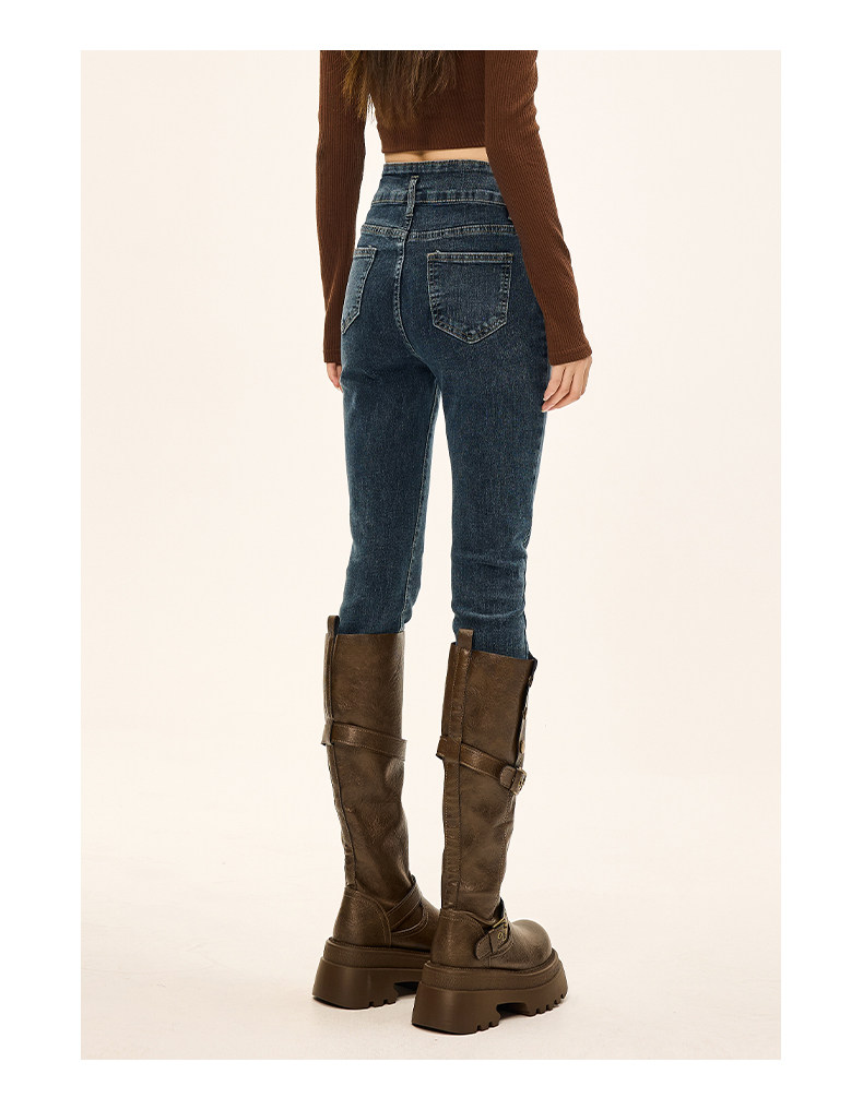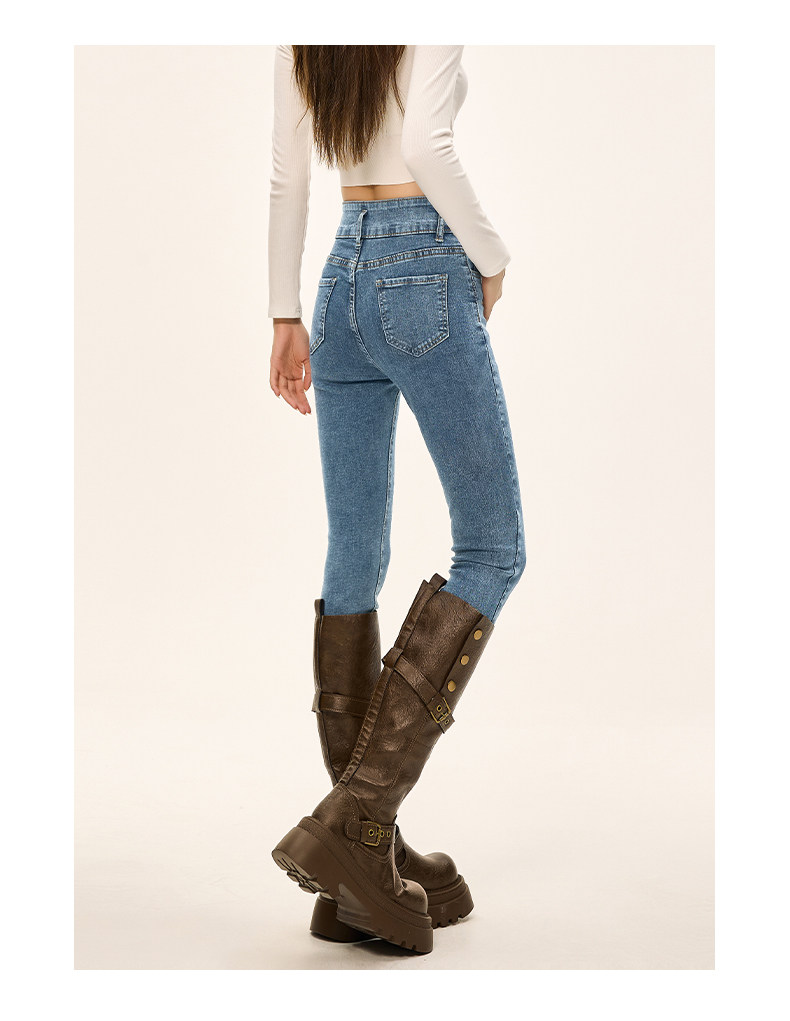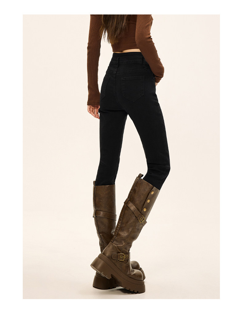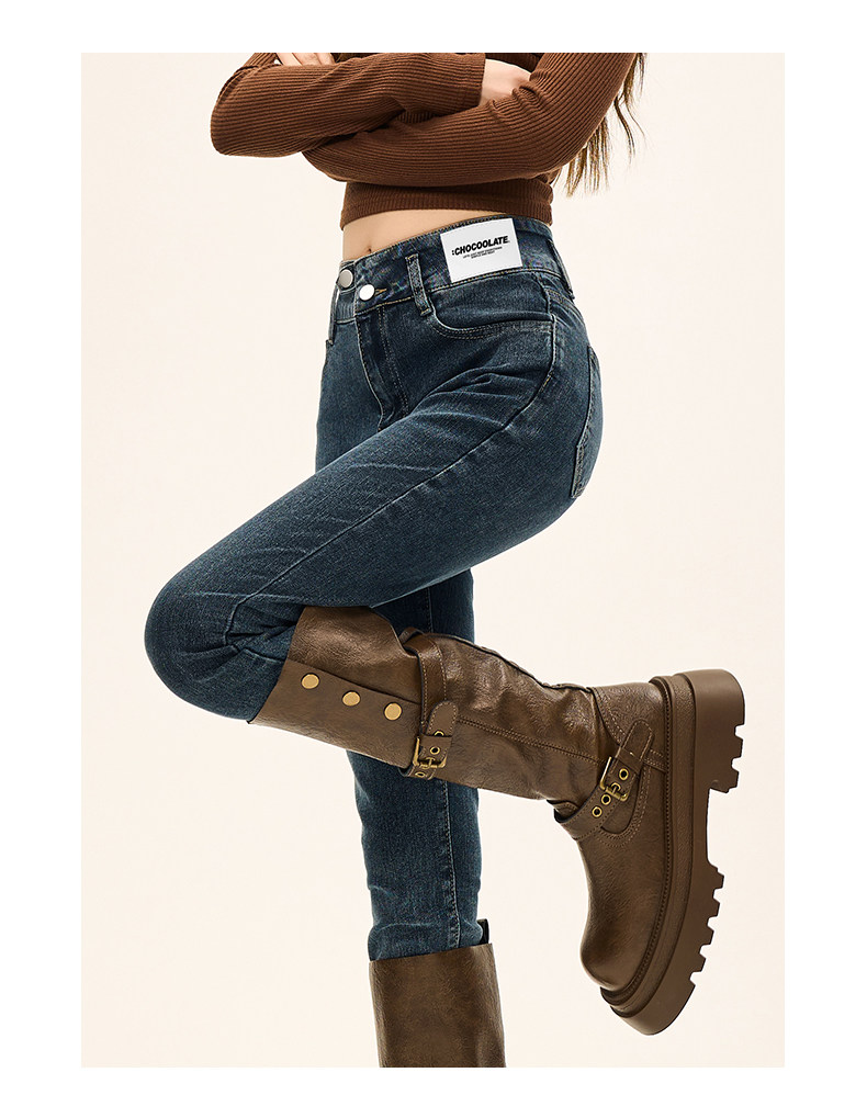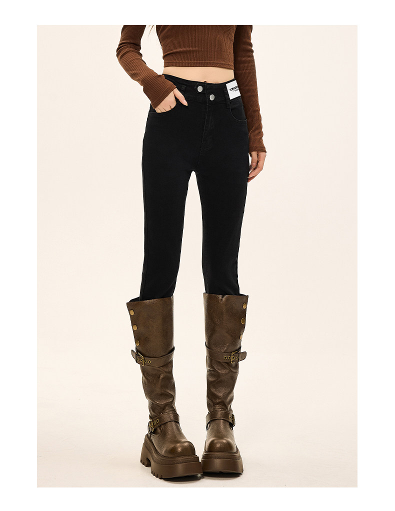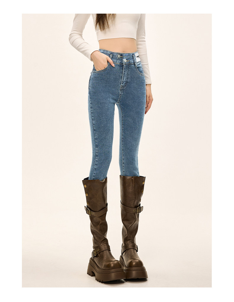 It: Chocoolate Korean Style High-Waisted Jeans for Women, Autumn and Winter Slim Fit, Stretchy Skinny Pencil Pants