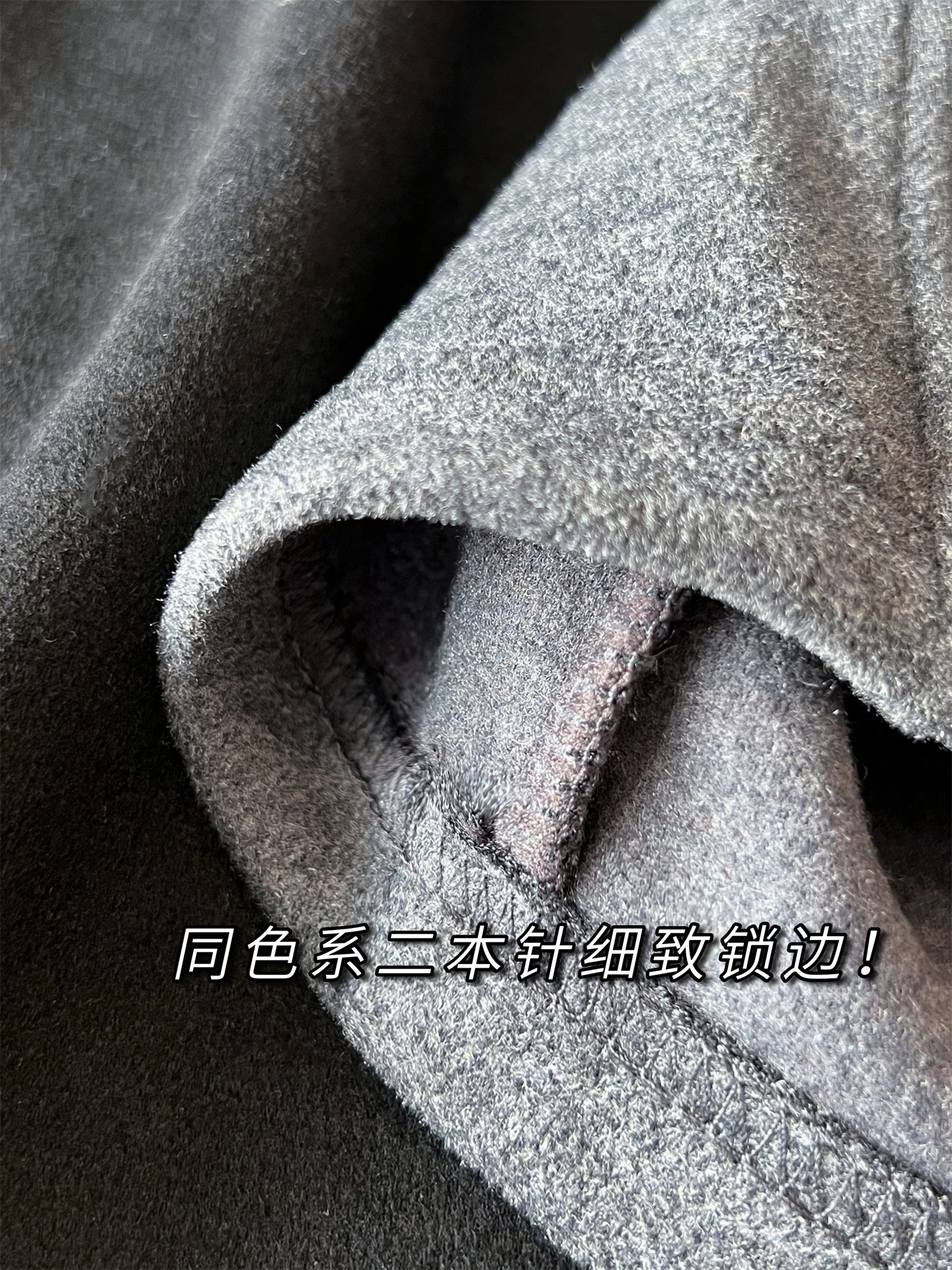 二本针锁边!做工细致利落,贴合整体身形不紧绷!