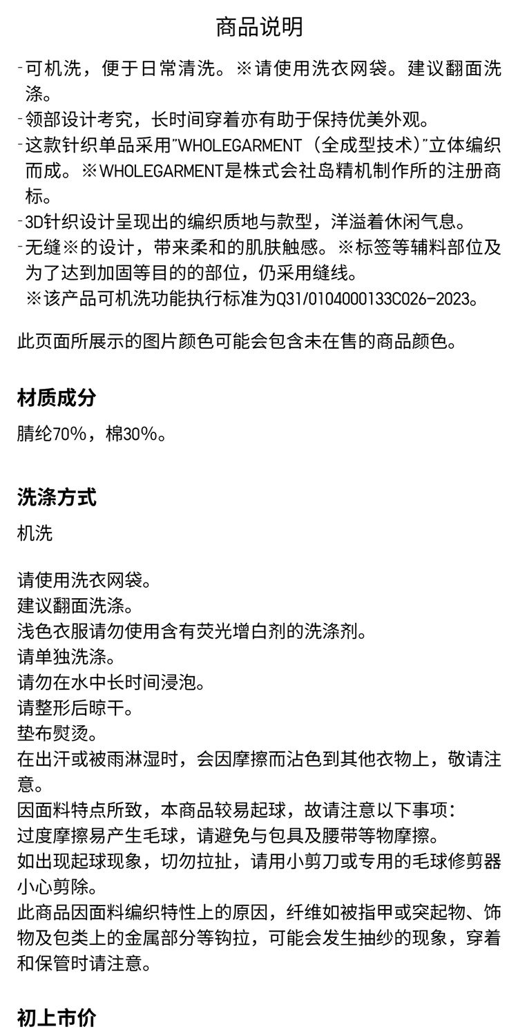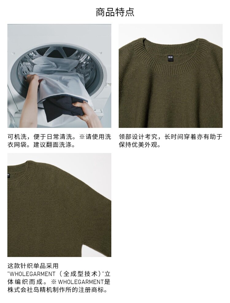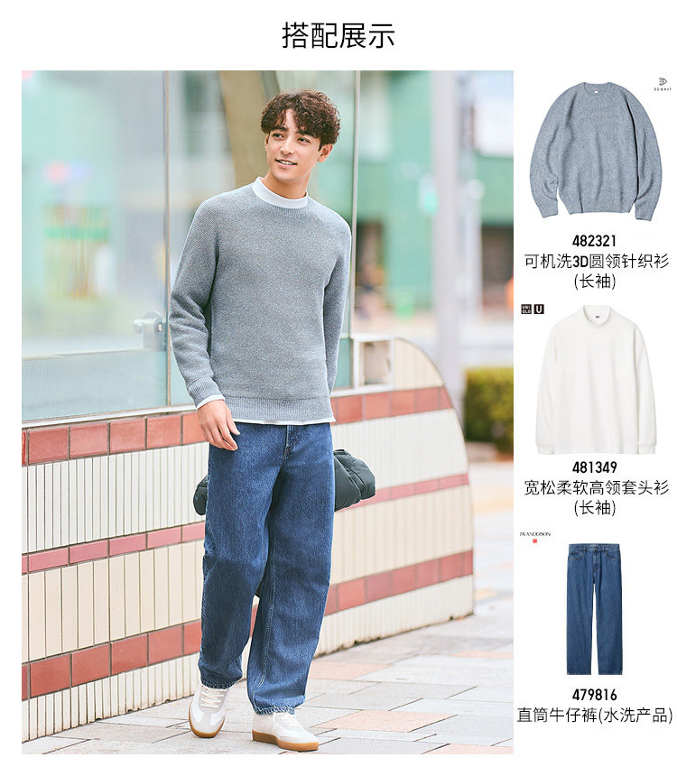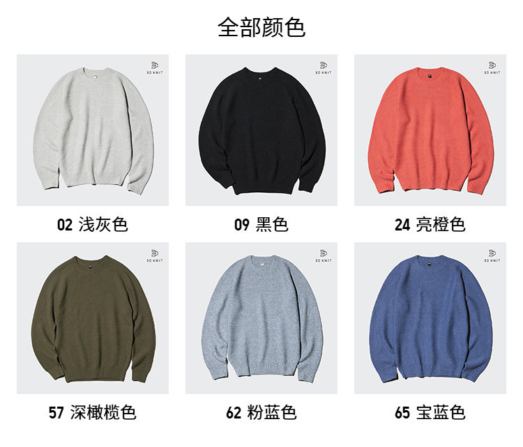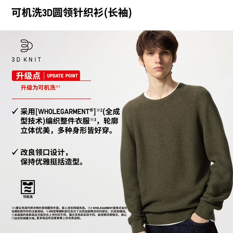 Uniqlo Men's and Women's Machine Washable 3D Crew Neck Knitwear/Long-Sleeved Sweater 482321