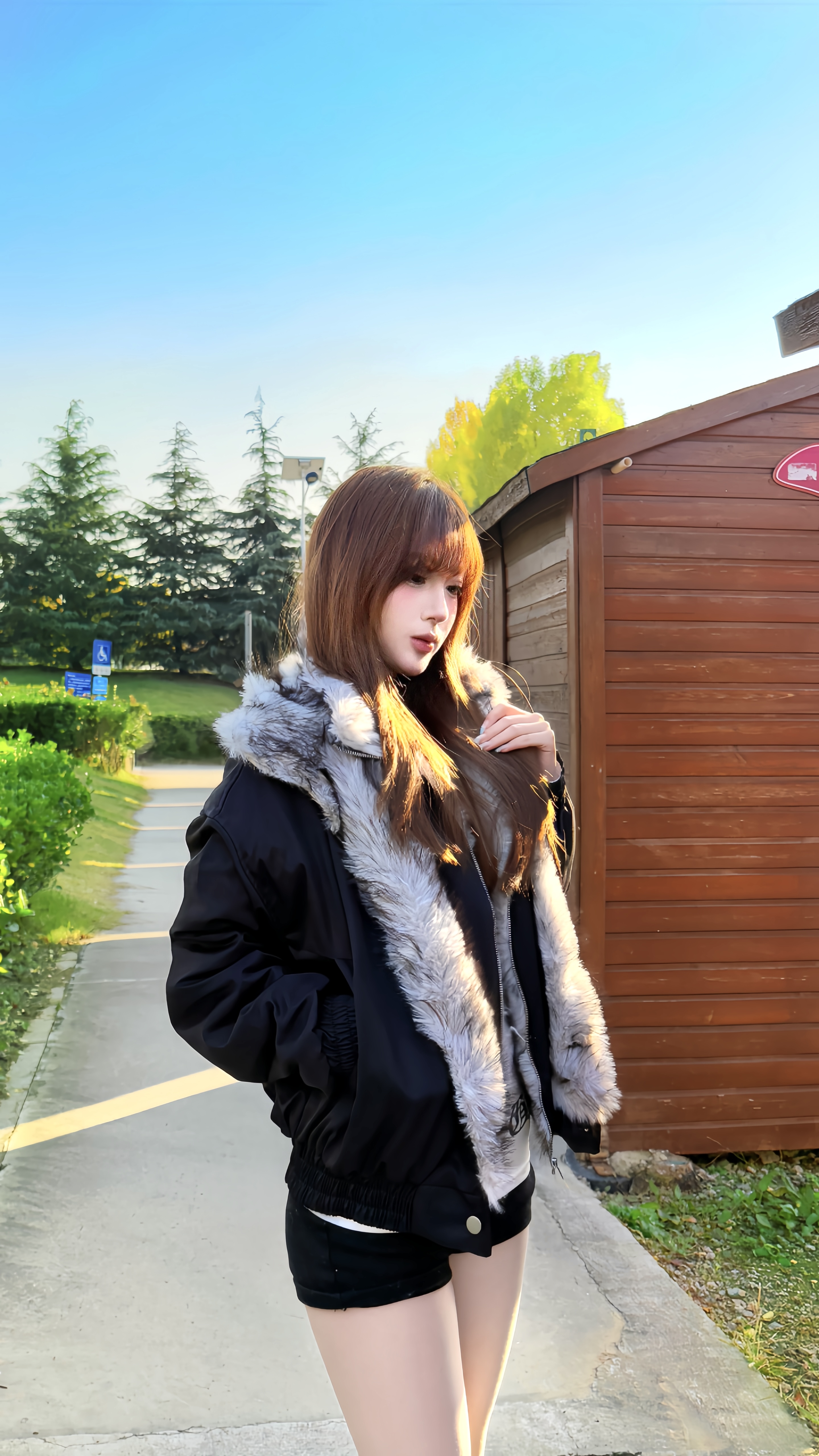 Xanvas'Polar Wolf King' Wolf Fur Mountain Eagle Faux Two-Piece Cotton Jacket Multi-Wear Style for Warmth and Cold Protection