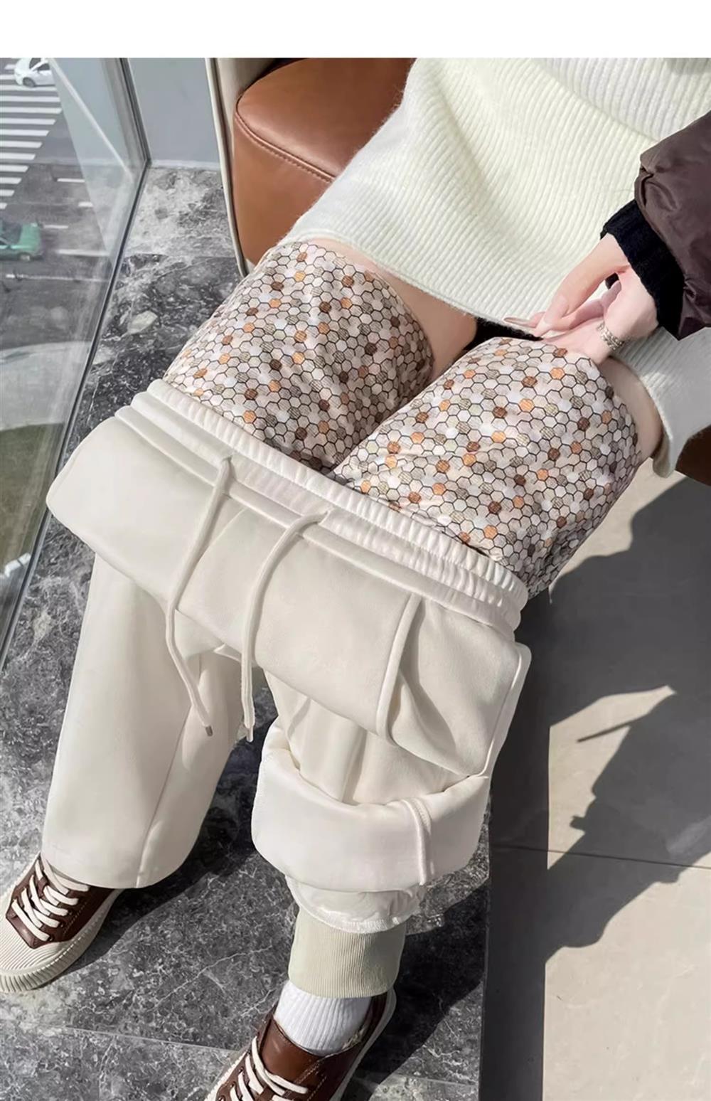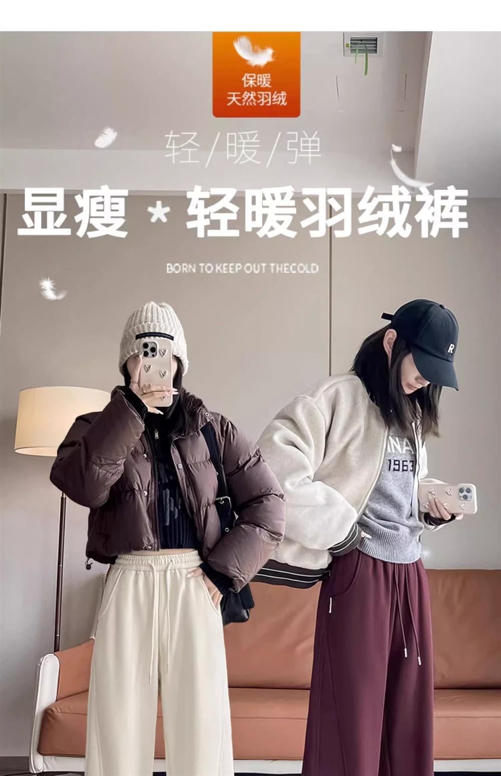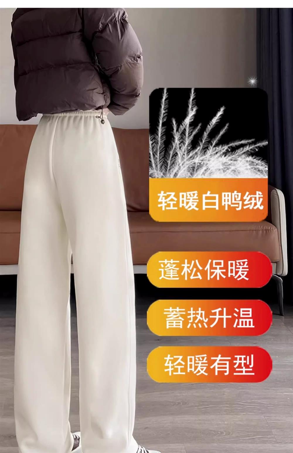 La Chapelle White Duck down Banana down Pants for Women, Winter Outerwear, Fleece-Lined, Cold-Proof, Warm, Harbin Straight-Leg Cotton Pants