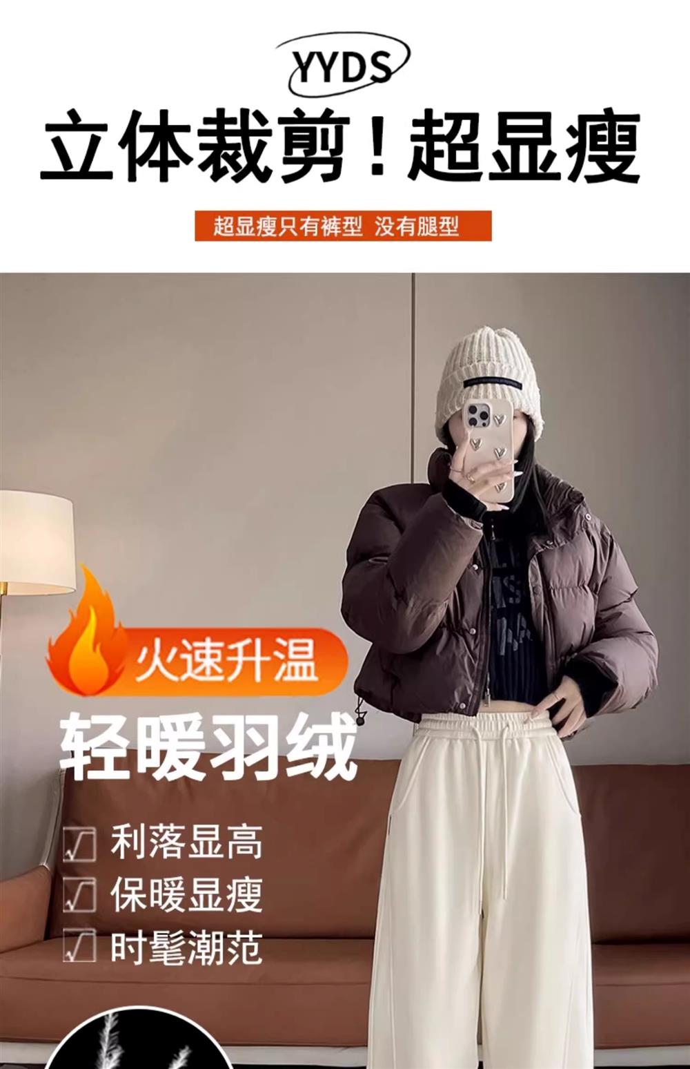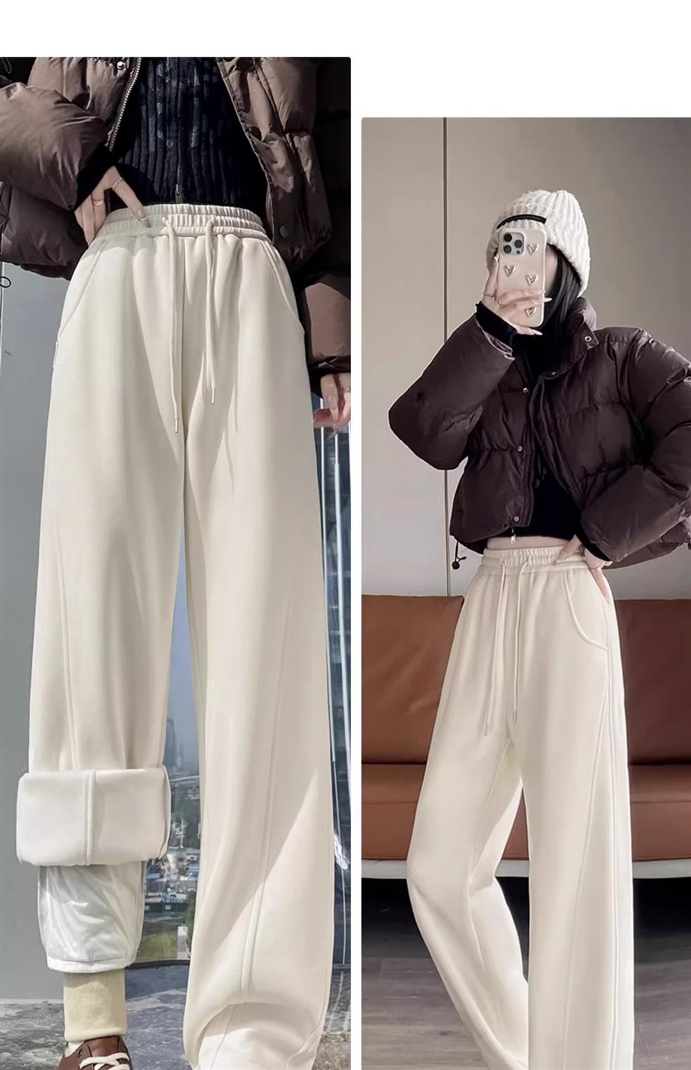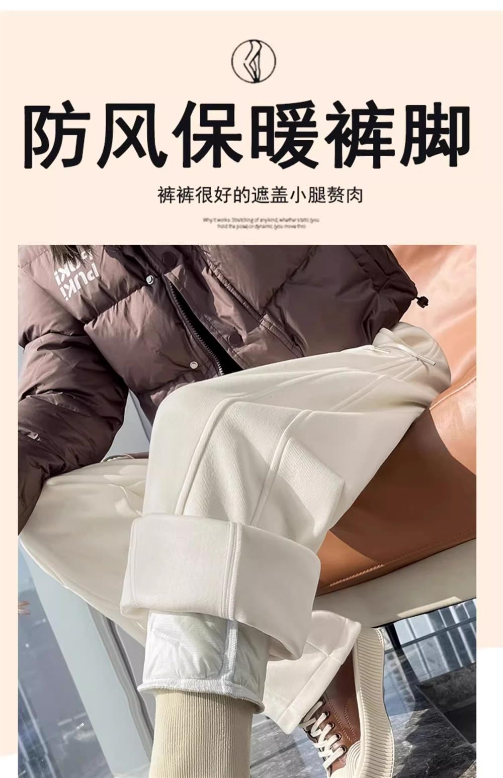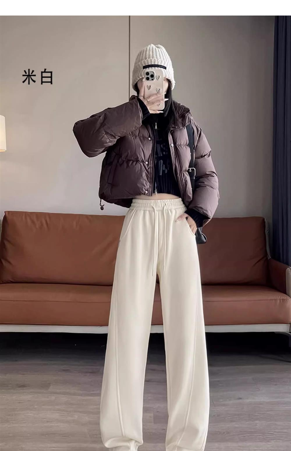 La Chapelle White Duck down Banana down Pants for Women, Winter Outerwear, Fleece-Lined, Cold-Proof, Warm, Harbin Straight-Leg Cotton Pants