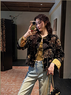 Sanji Heihua [Yunwei Shirt] New Chinese-Style Burnt-Out Velvet Cotton Coat, Super Nice-Looking Winter Thick Jacket