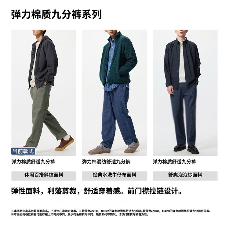 Uniqlo Men's and Women's Stretch Cotton Comfortable Cropped Pants/Casual Pants 26 Spring/Summer New Model 481568
