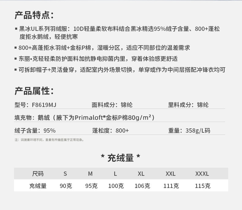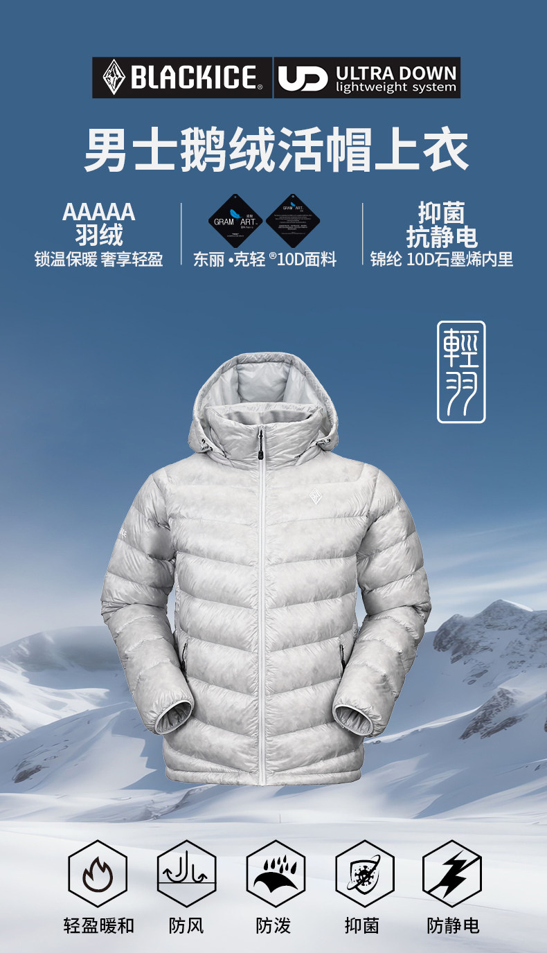 Black Ice Lightweight down Jacket for Men, 800 Fill Power Water-Repellent Goose Down, Lightweight Ribbed down Jacket with Hood, Warm Coat 8619