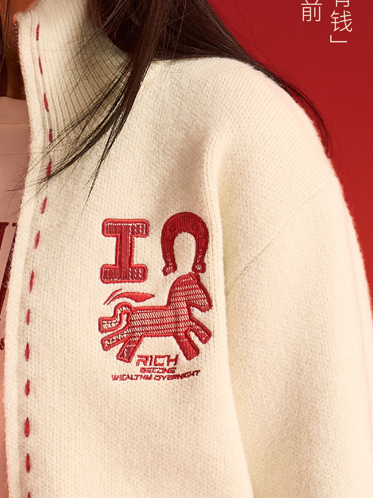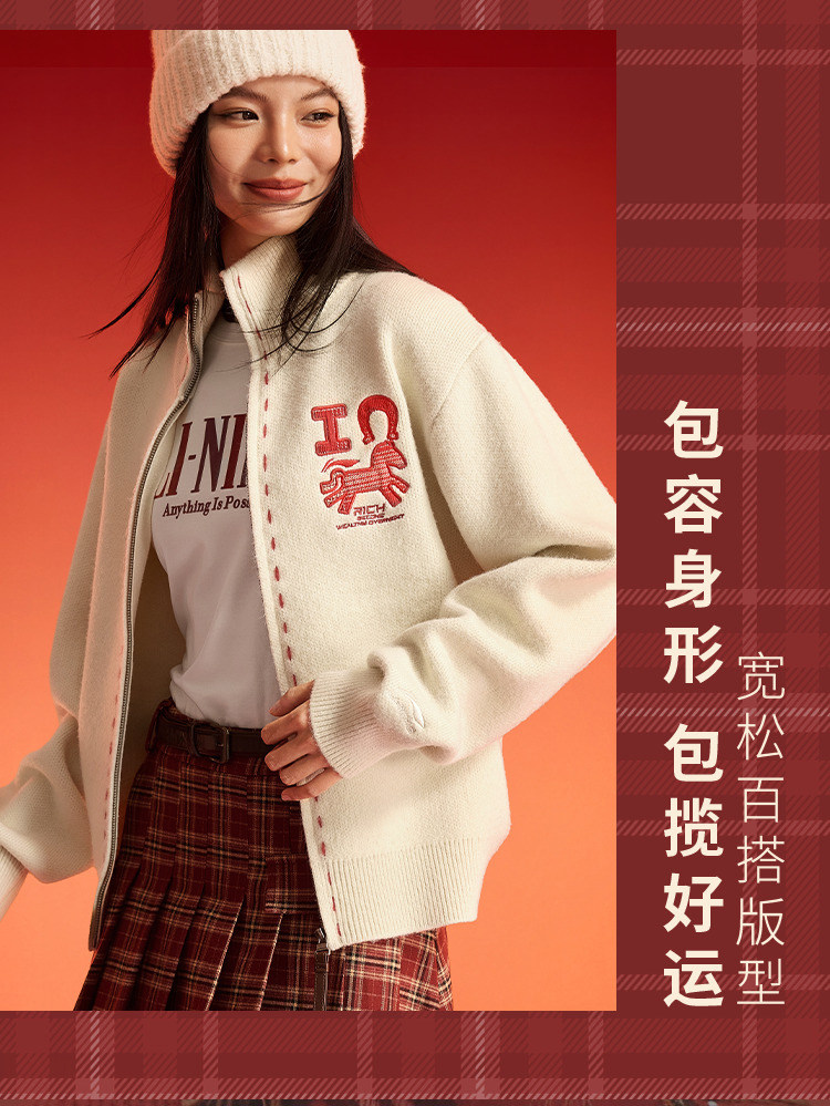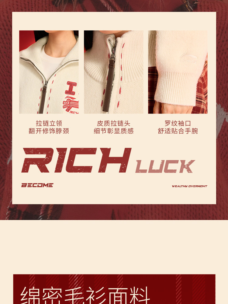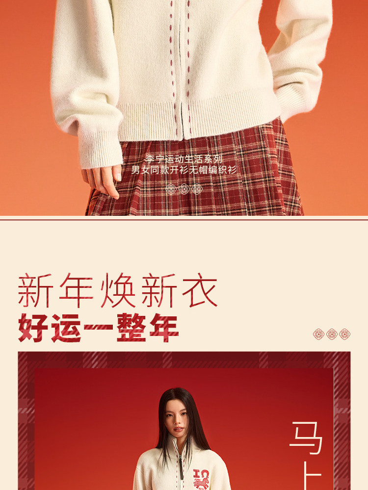 Li Ning Instantly Rich Sweater for Women Spring 2026 New Year Couple Outfit Top Year of the Horse Knitted Sweater for Men