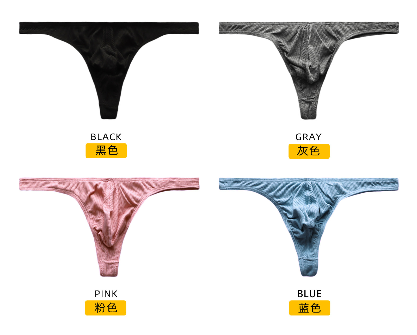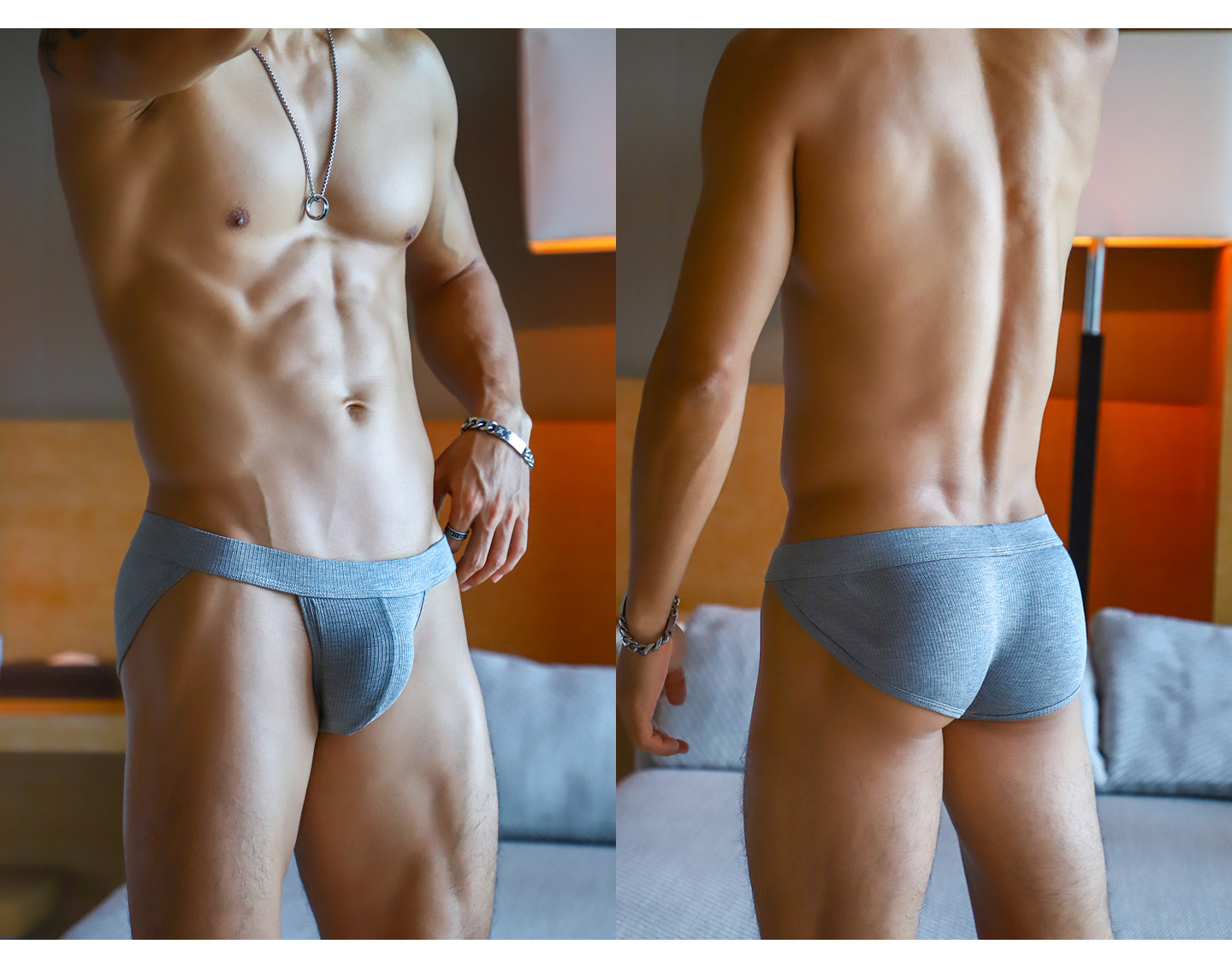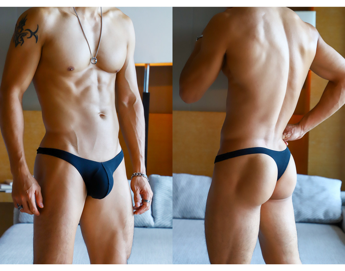 3 Pieces of 69 Rock Also Men's Double Thong Underwear, Men's Triangle Thong, Low-Waist Pure Cotton U-Convex Sexy Butt-Lifting Ribbed Elastic