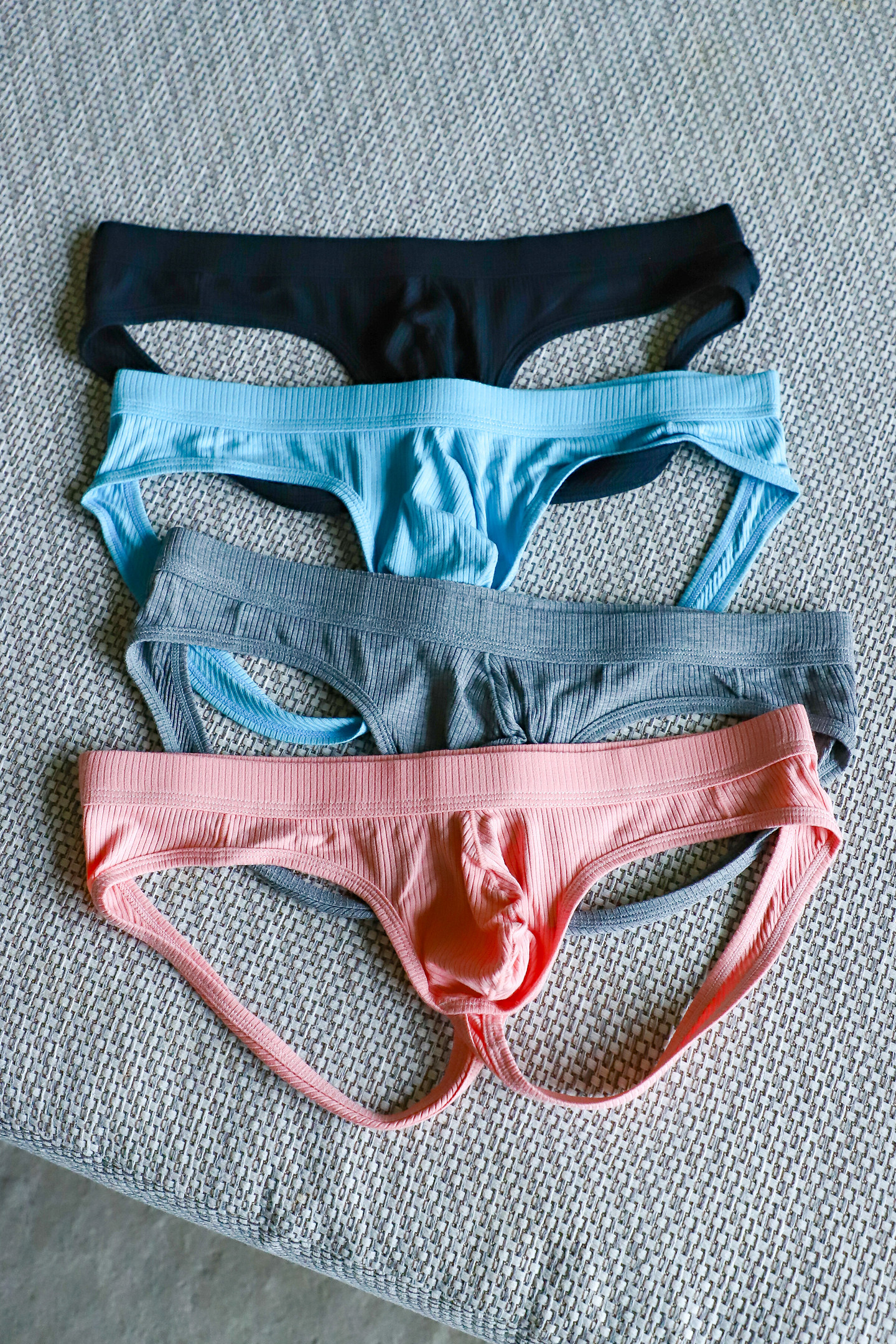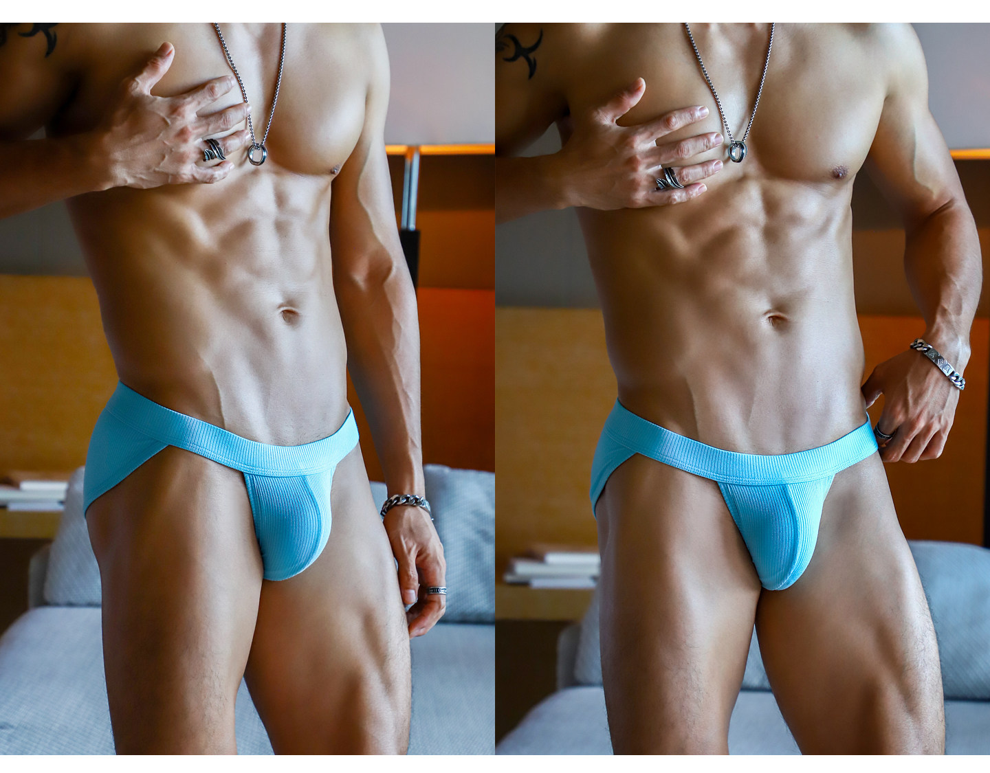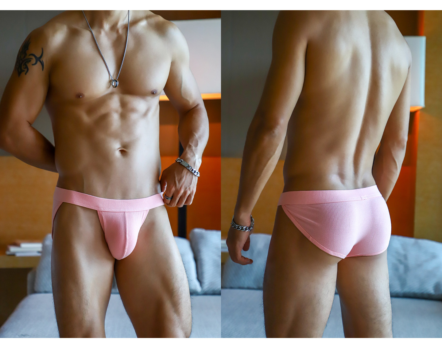 3 Pieces of 69 Rock Also Men's Double Thong Underwear, Men's Triangle Thong, Low-Waist Pure Cotton U-Convex Sexy Butt-Lifting Ribbed Elastic