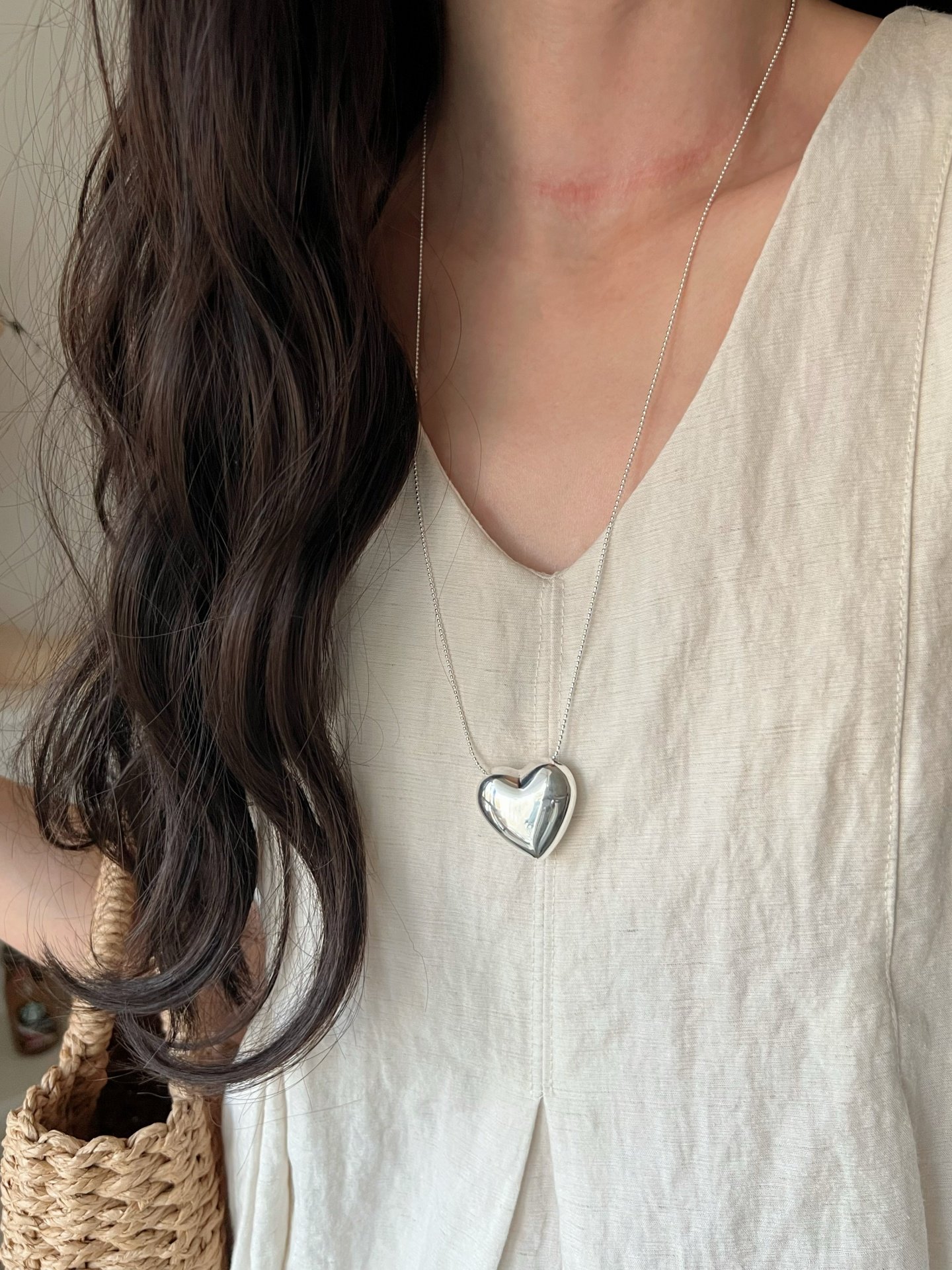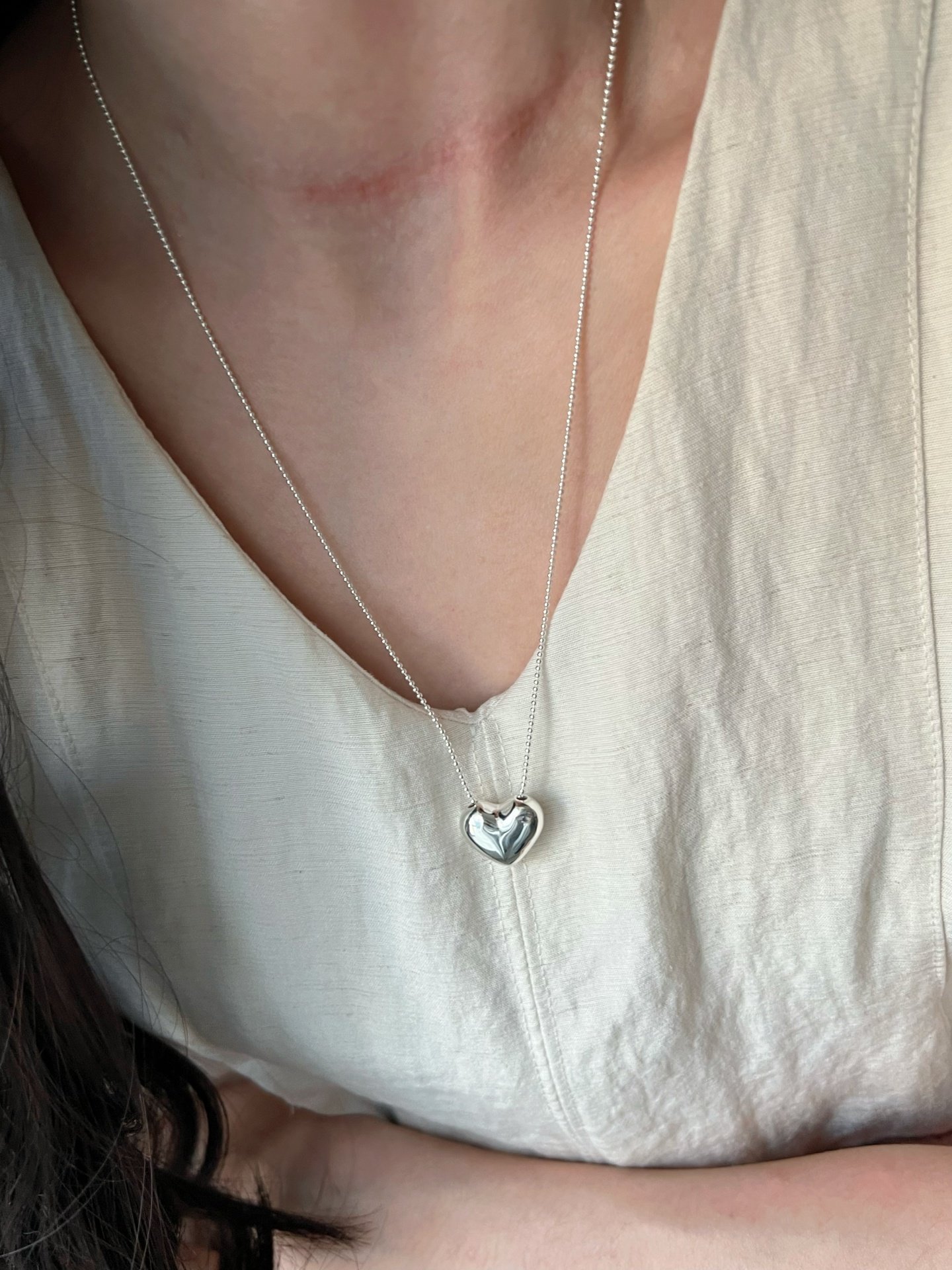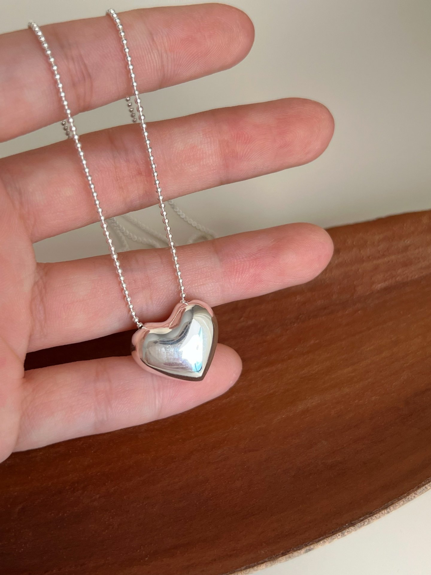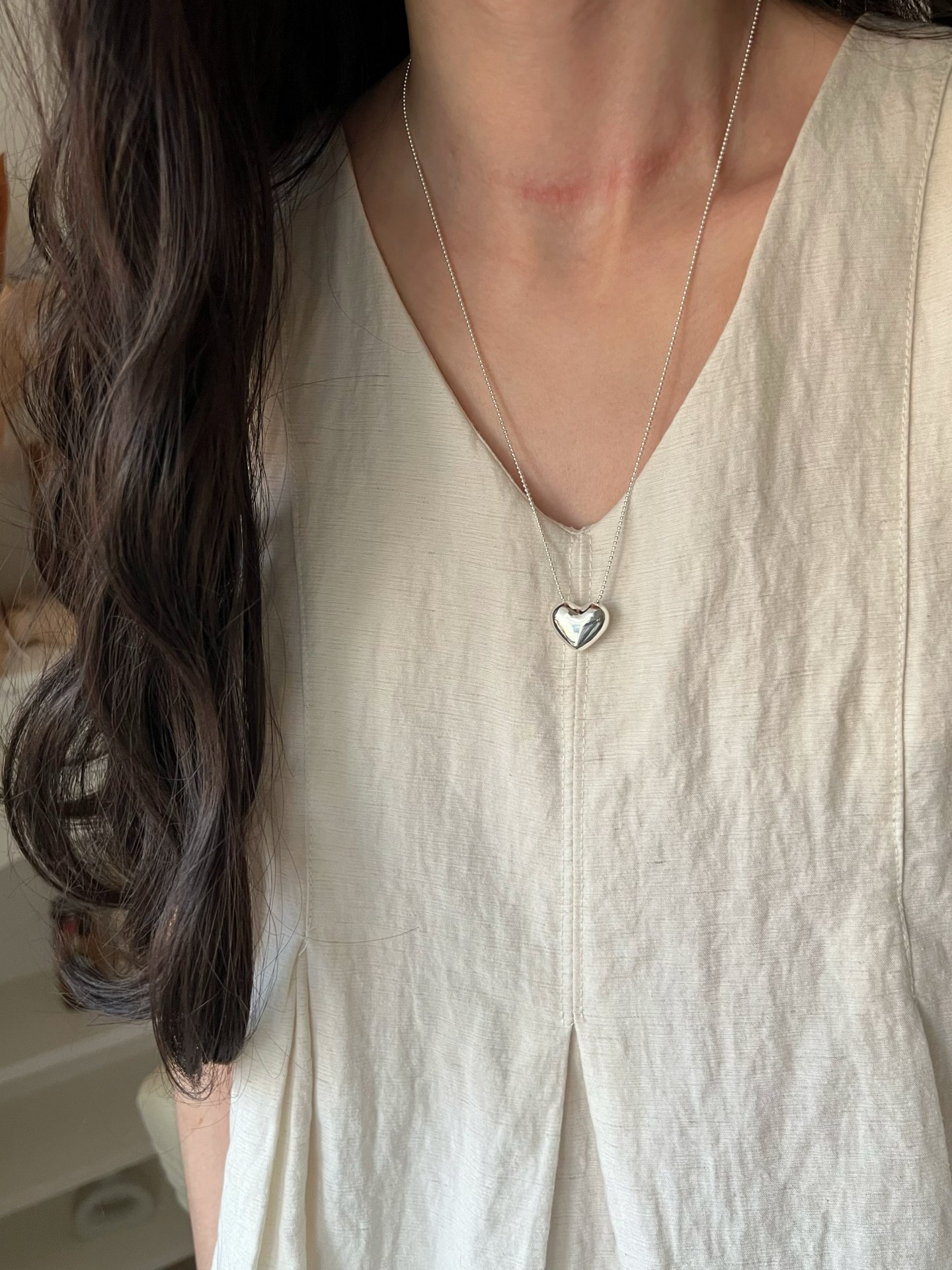 Dimple-Shaped S925 Sterling Silver Heart Necklace, Niche Design, Light Luxury, High-End Feel, Simple and Versatile, Long Sweater Chain