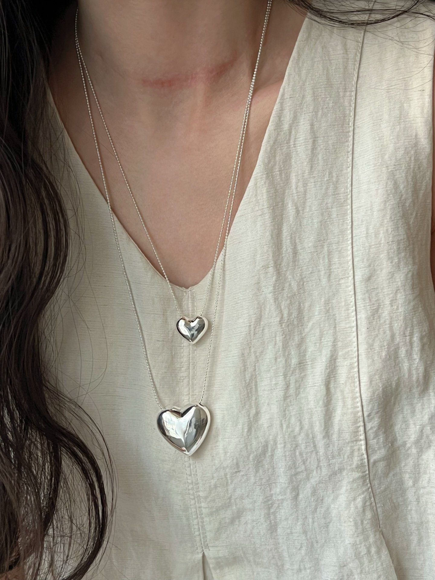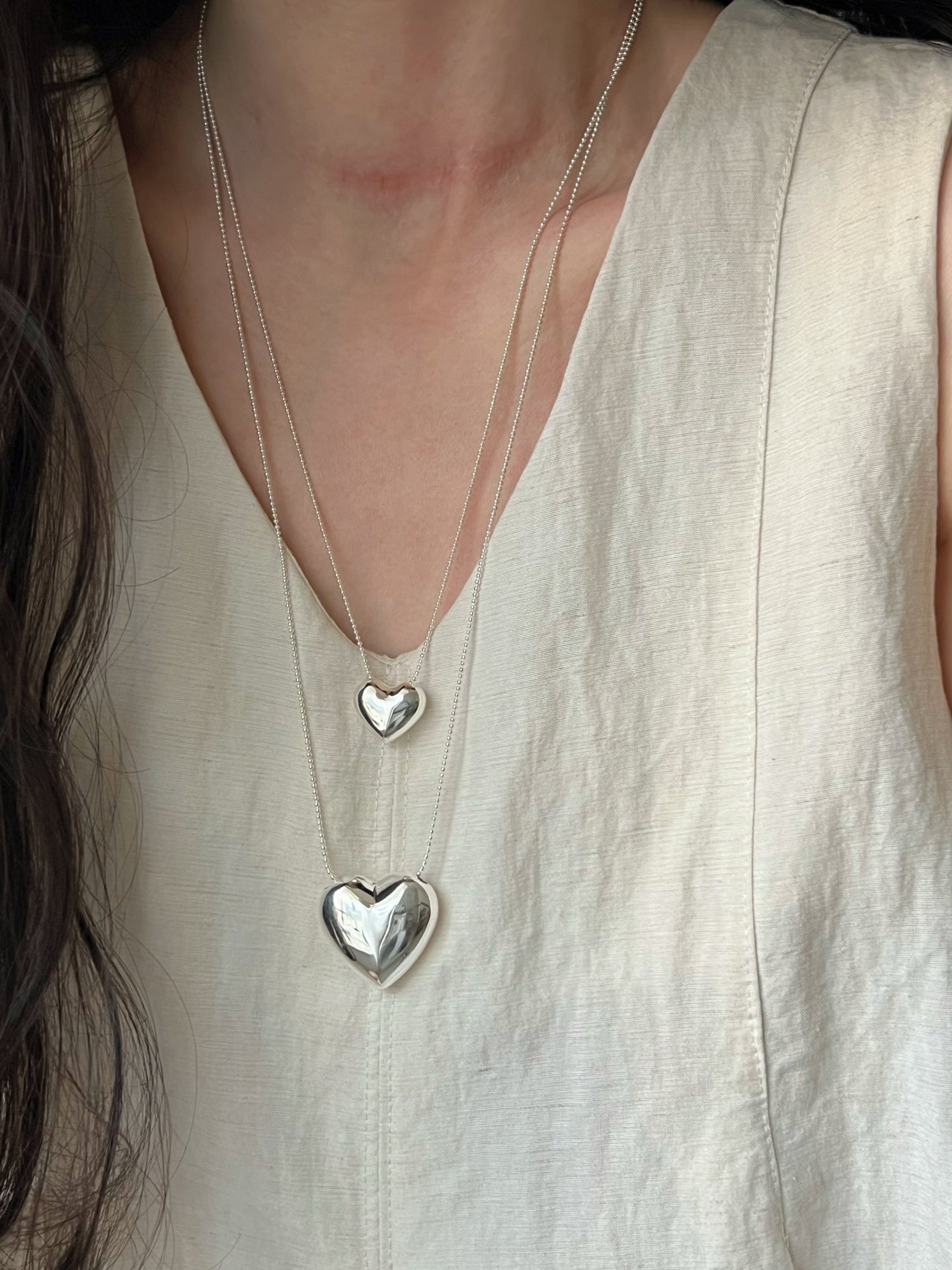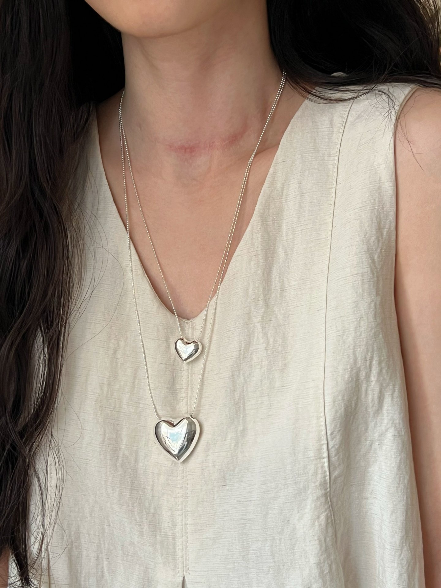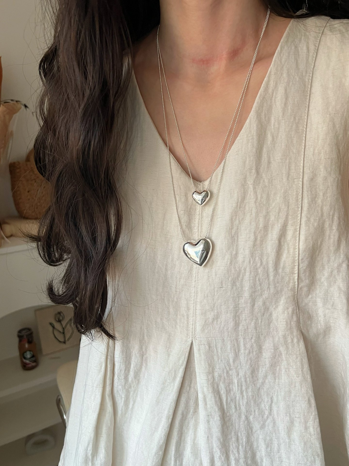 Dimple-Shaped S925 Sterling Silver Heart Necklace, Niche Design, Light Luxury, High-End Feel, Simple and Versatile, Long Sweater Chain
