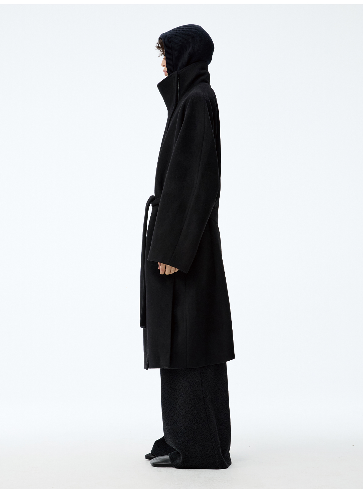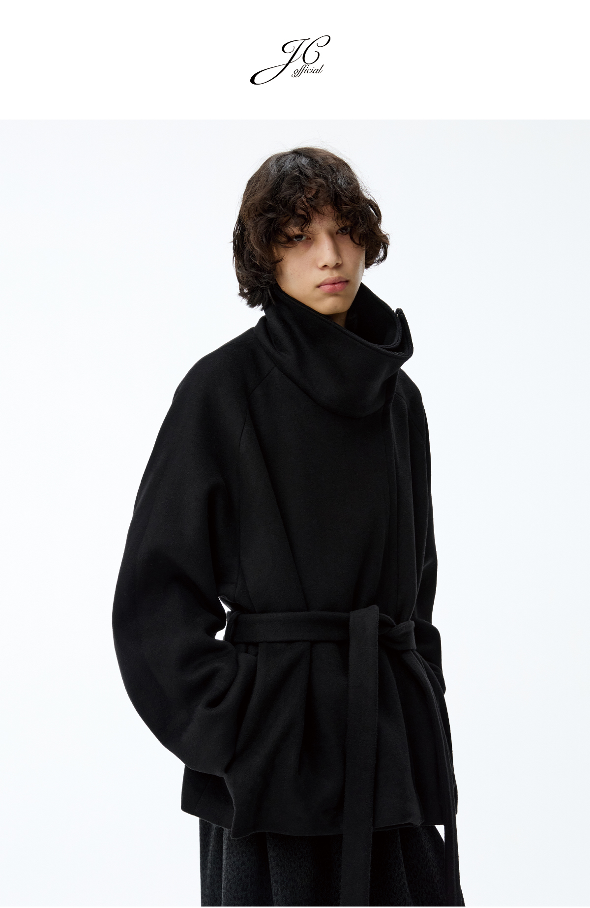 Jcaesar Coat Diagonal Zipper Lace-Up Coat, High Weight Wool, Slightly Loose Fit, Available in Both Long and Short Versions