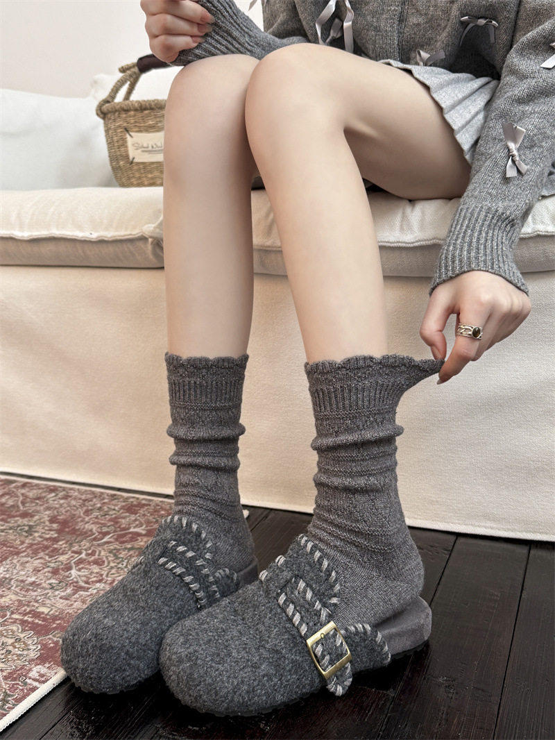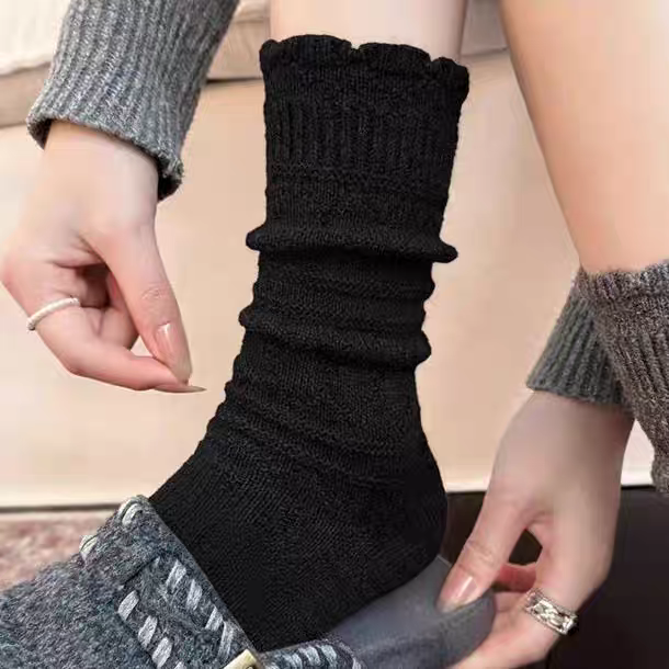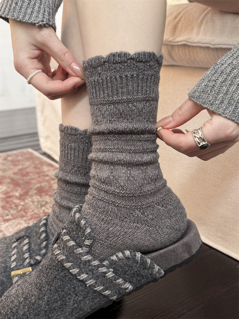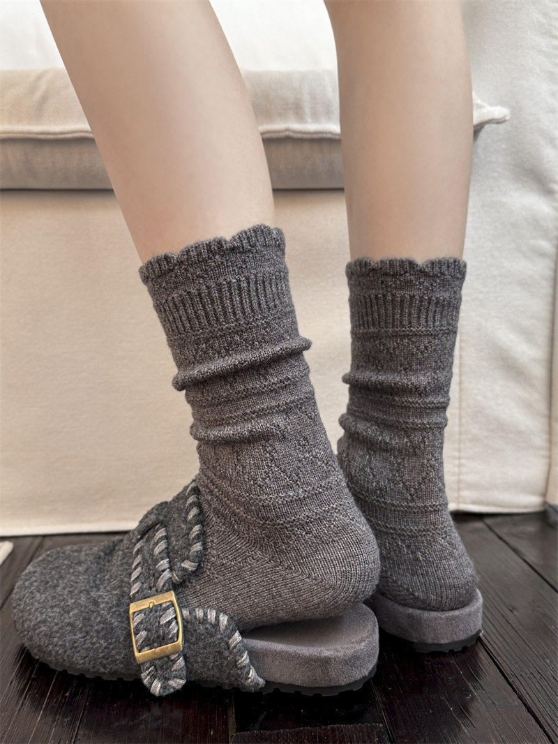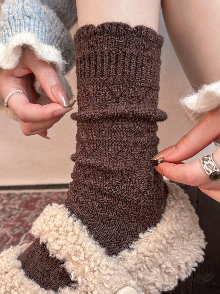 Japanese Retro Hollow Wool Calf Socks for Women, Mid-Calf Slouch Socks, Autumn and Winter Warm Socks to Match Boots, Long Socks, Boot Socks