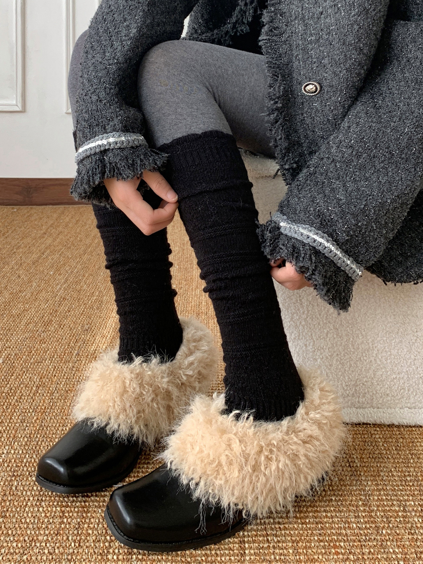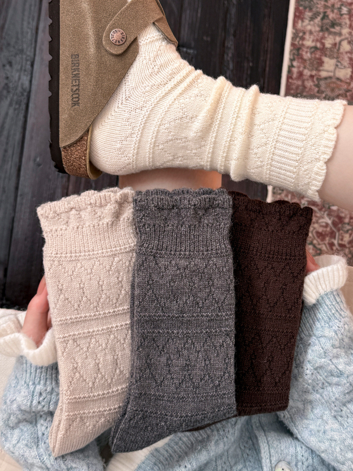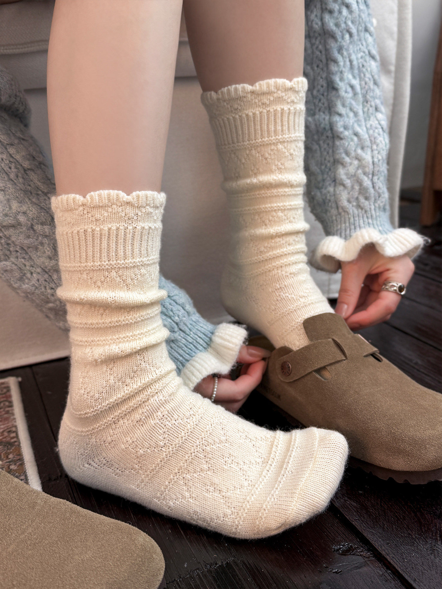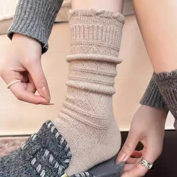 Japanese Retro Hollow Wool Calf Socks for Women, Mid-Calf Slouch Socks, Autumn and Winter Warm Socks to Match Boots, Long Socks, Boot Socks