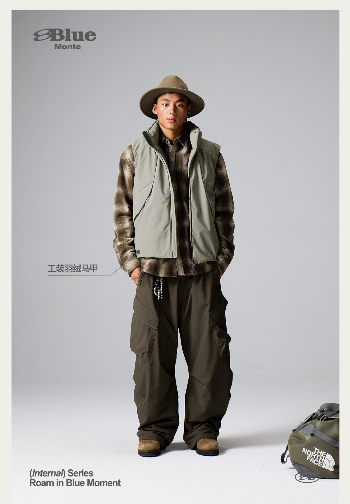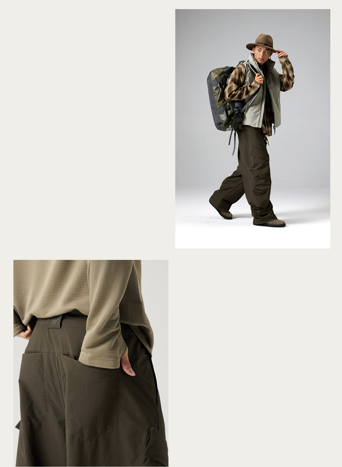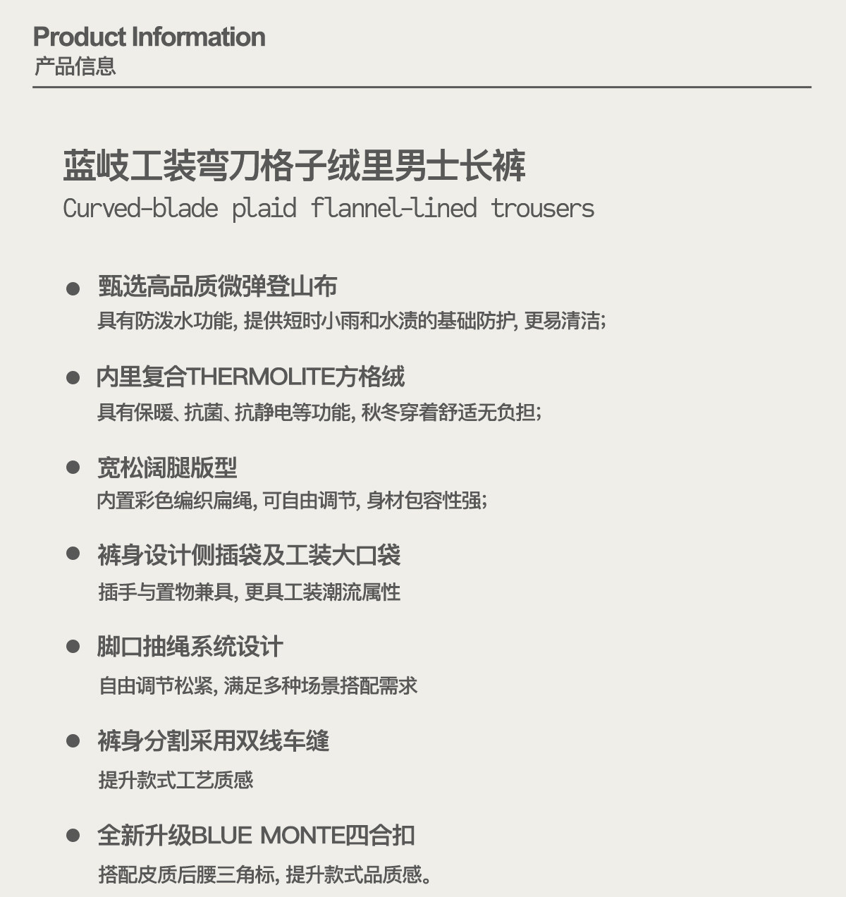 Lanqi Casual Trendy Anti-Static Adjustable Antibacterial Work Pants Checkered Fleece Warm Wide-Leg Scimitar Pants for Men