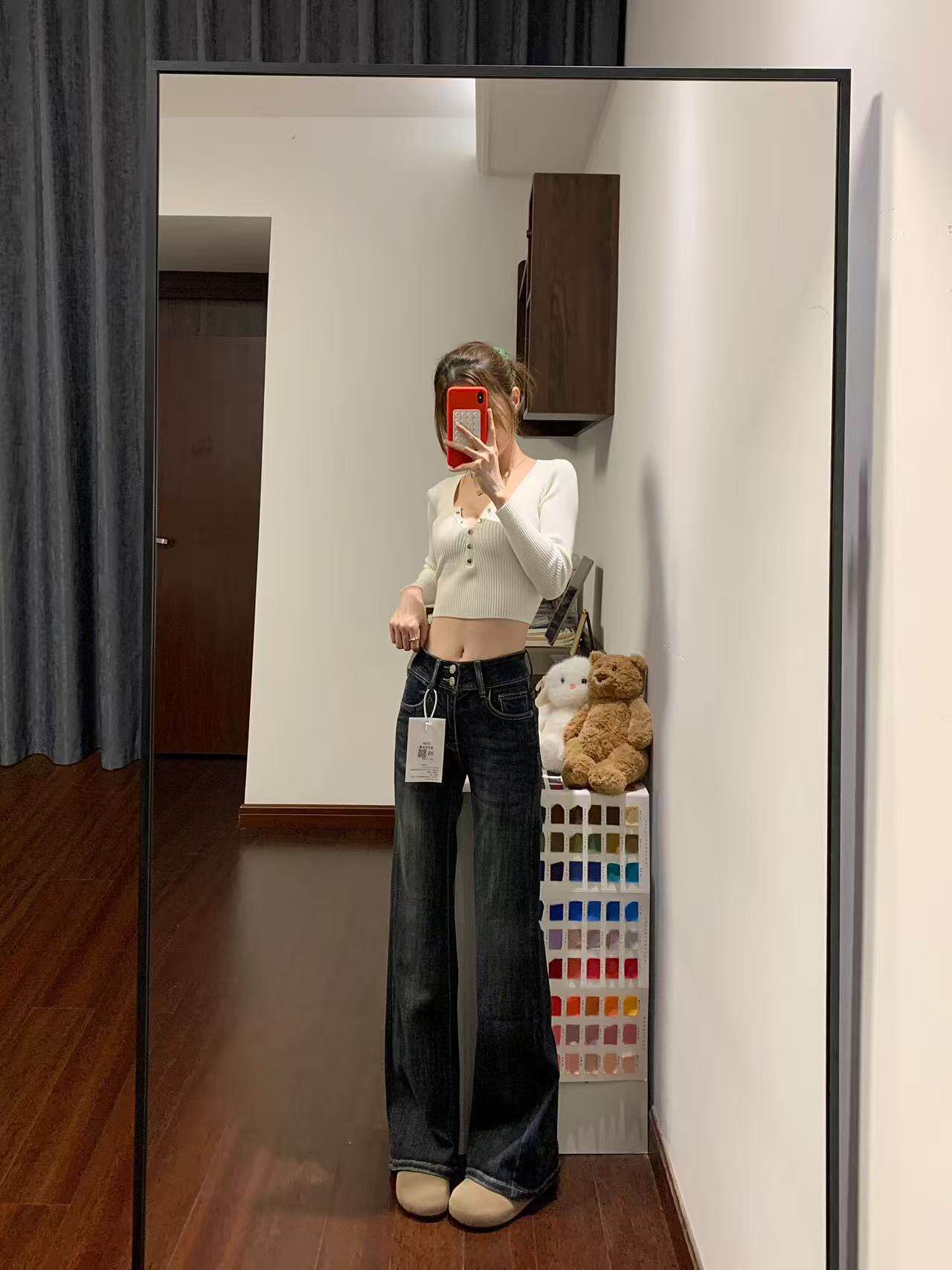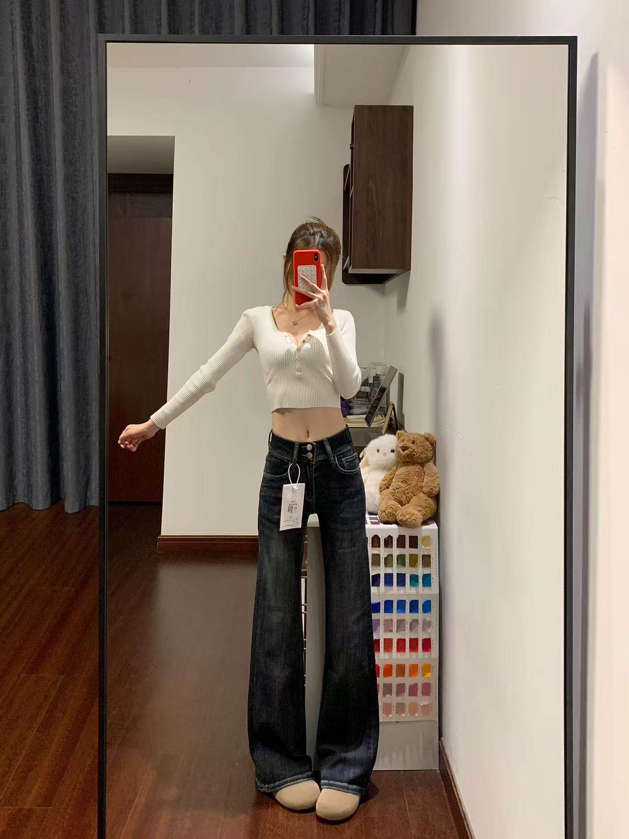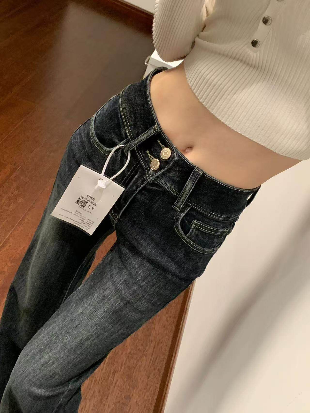 American Retro Double-Button Flared Jeans for Women 2025 Autumn and Winter New High-Waisted Stretchy Slimming Bootcut Pants