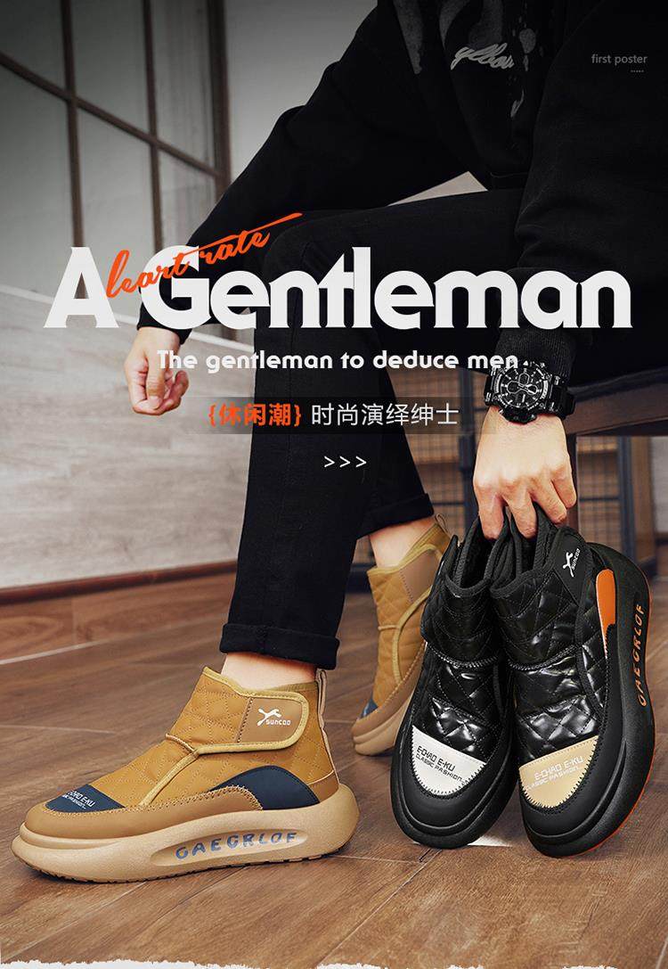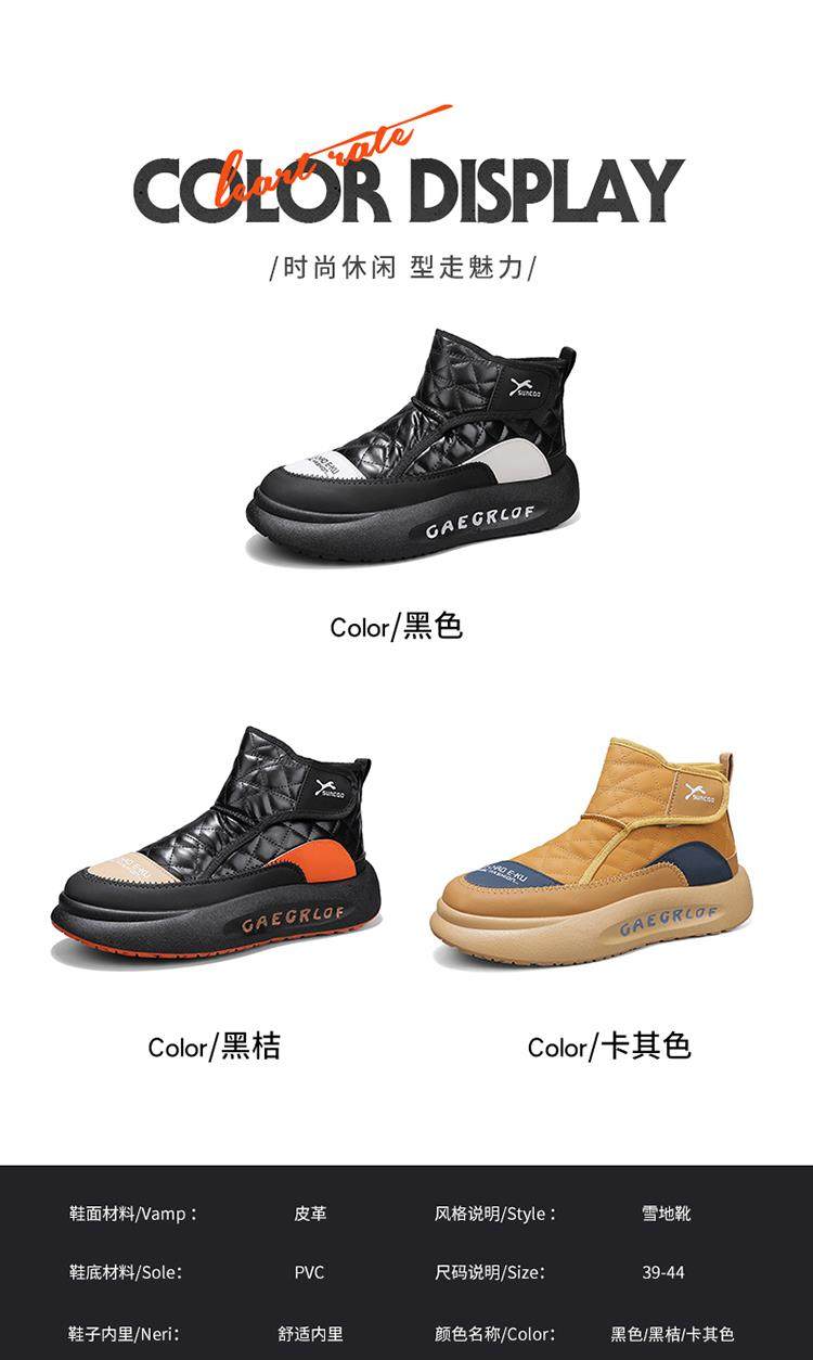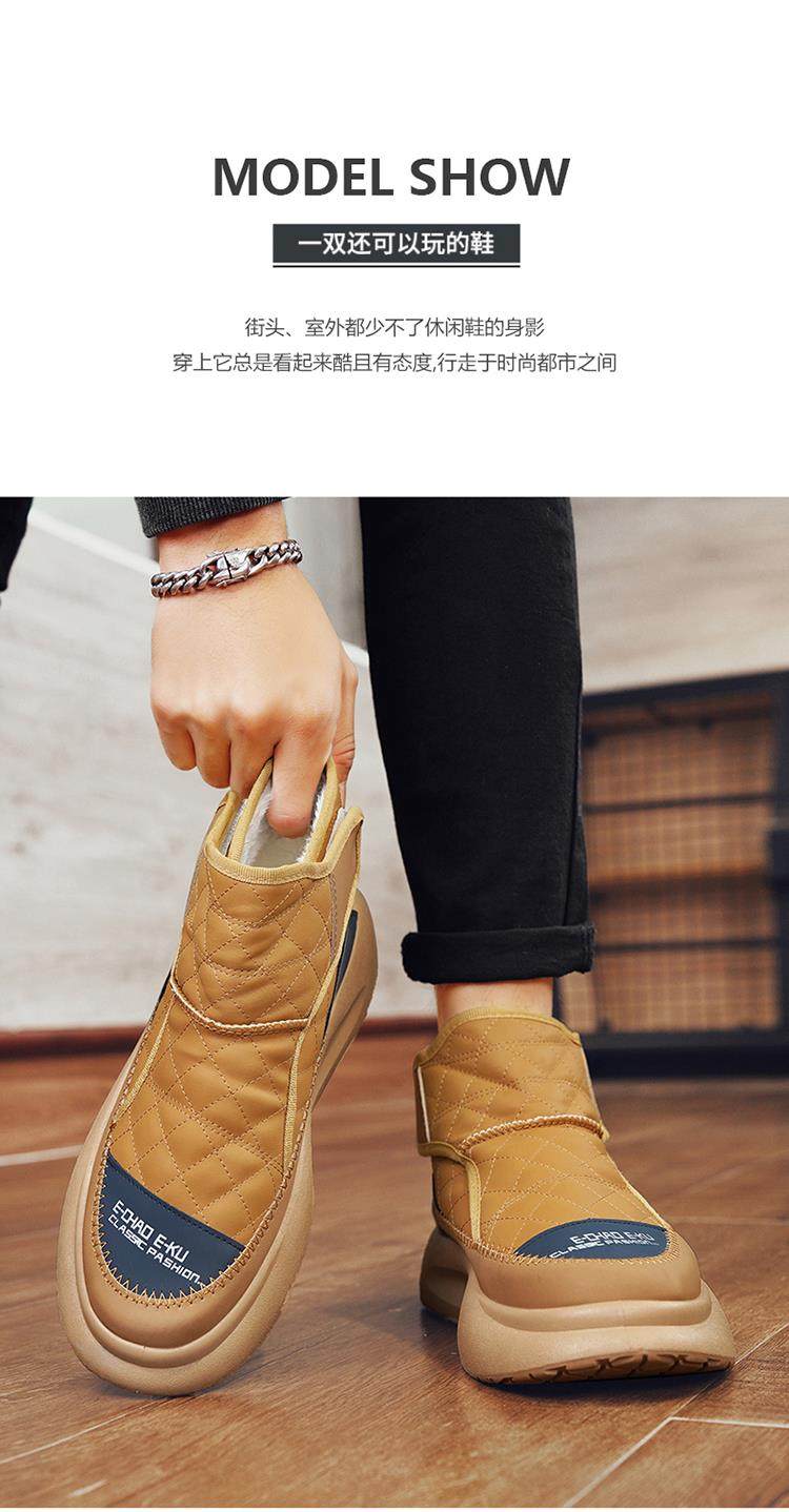 Winter Snow Boots New Style Fleece-Lined Men's Shoes Thickened Warm Cotton Shoes Men's Trendy Leather Shoes High-Top Men's Casual Shoes