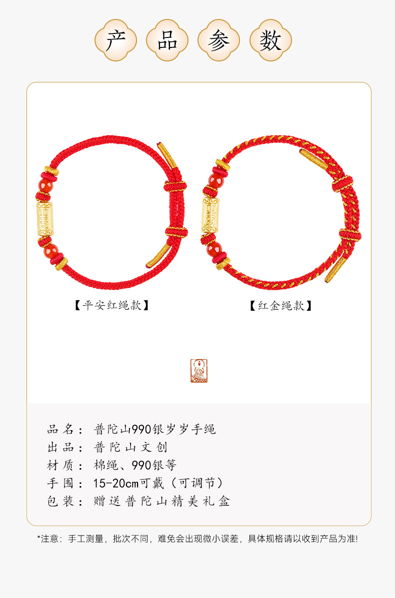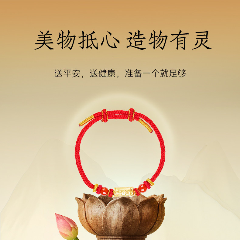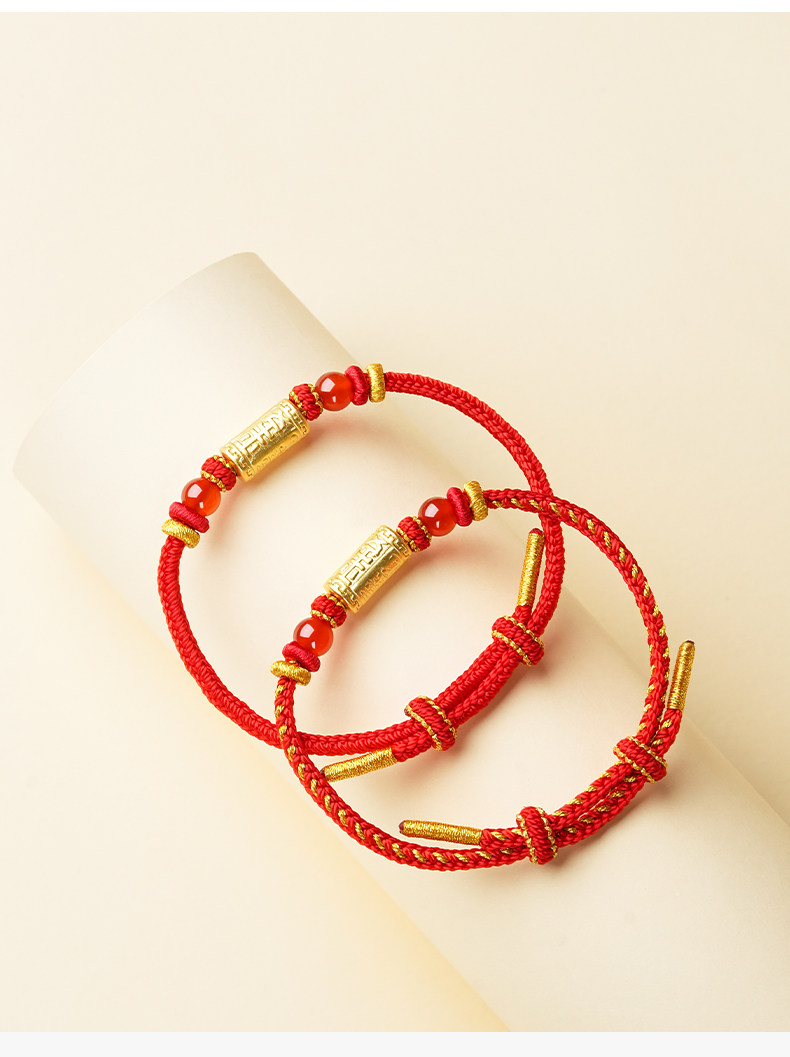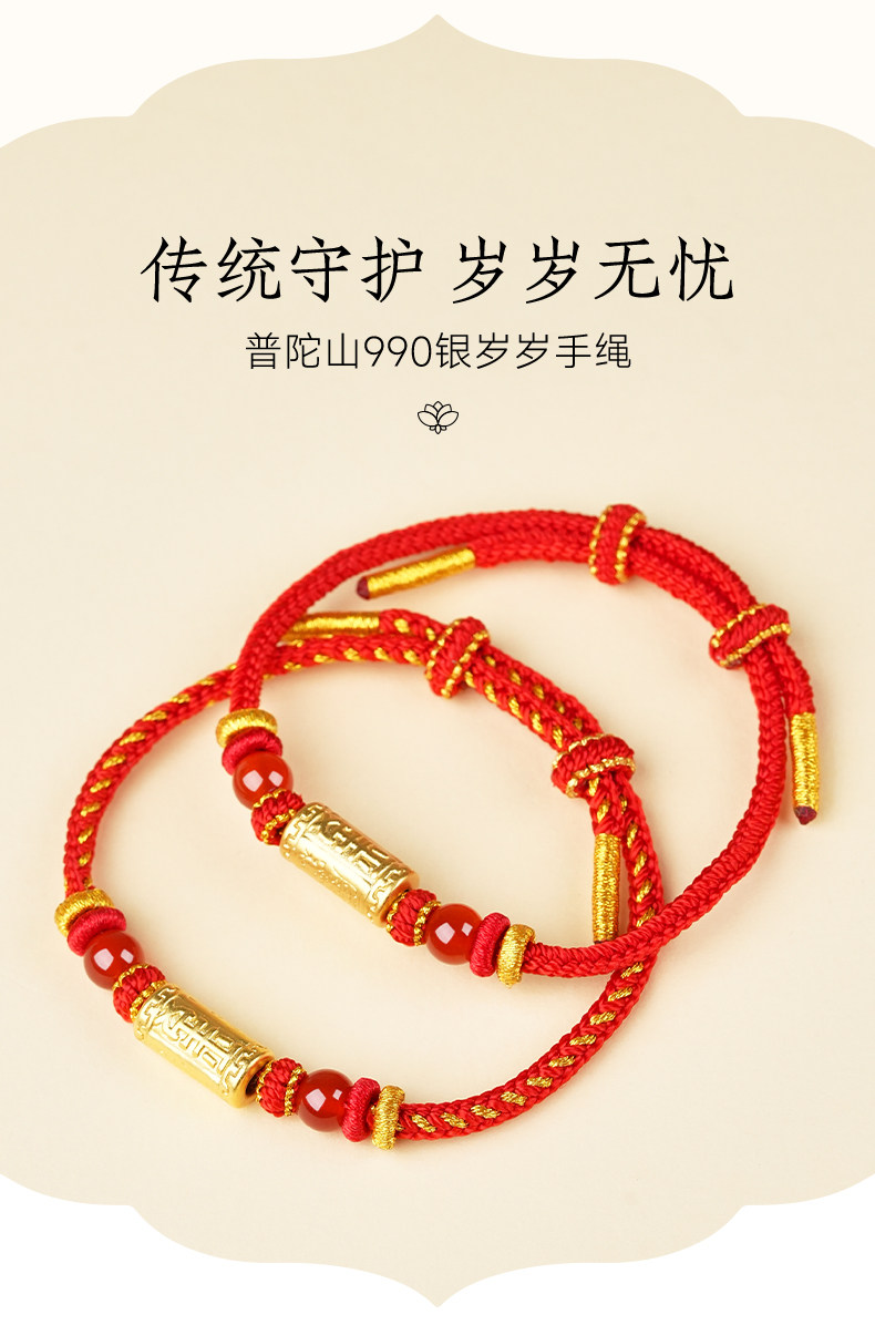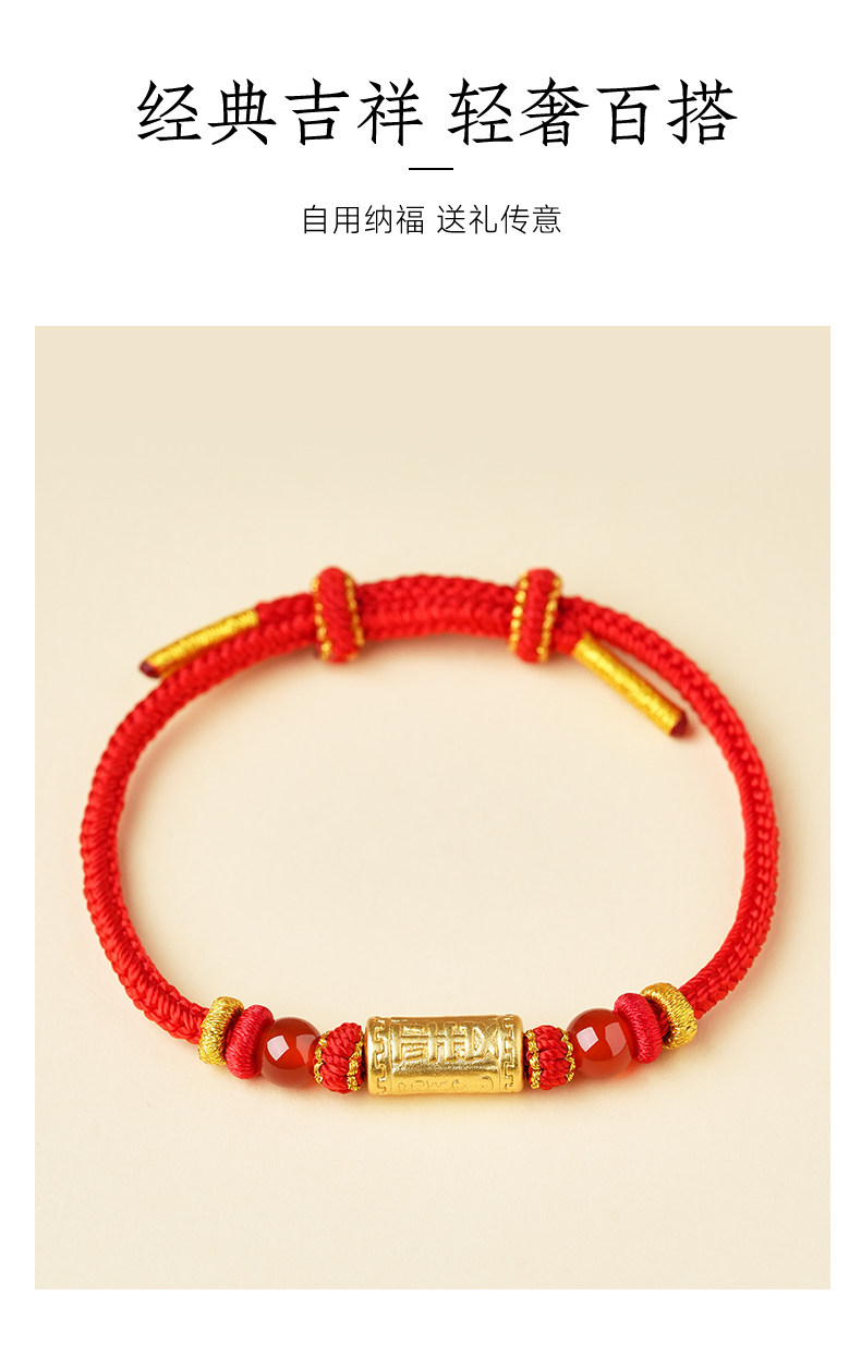 Putuo Mountain 2026 Year of the Red Rope 990 Silver Handmade Braided Bracelet for Women, Zodiac Year Red Gold Rope