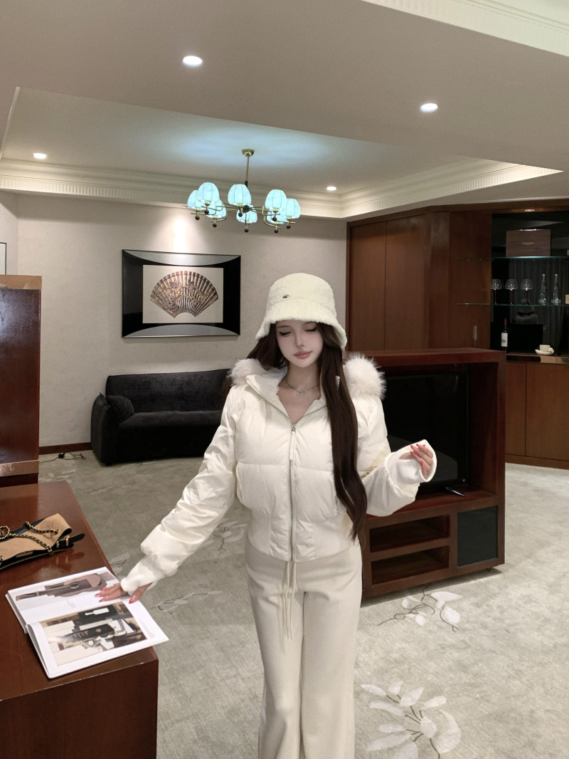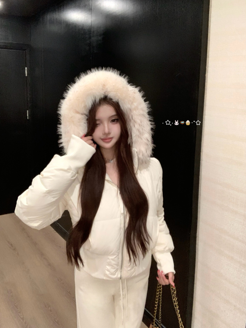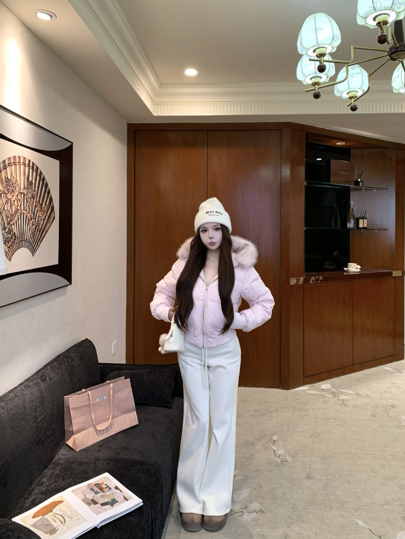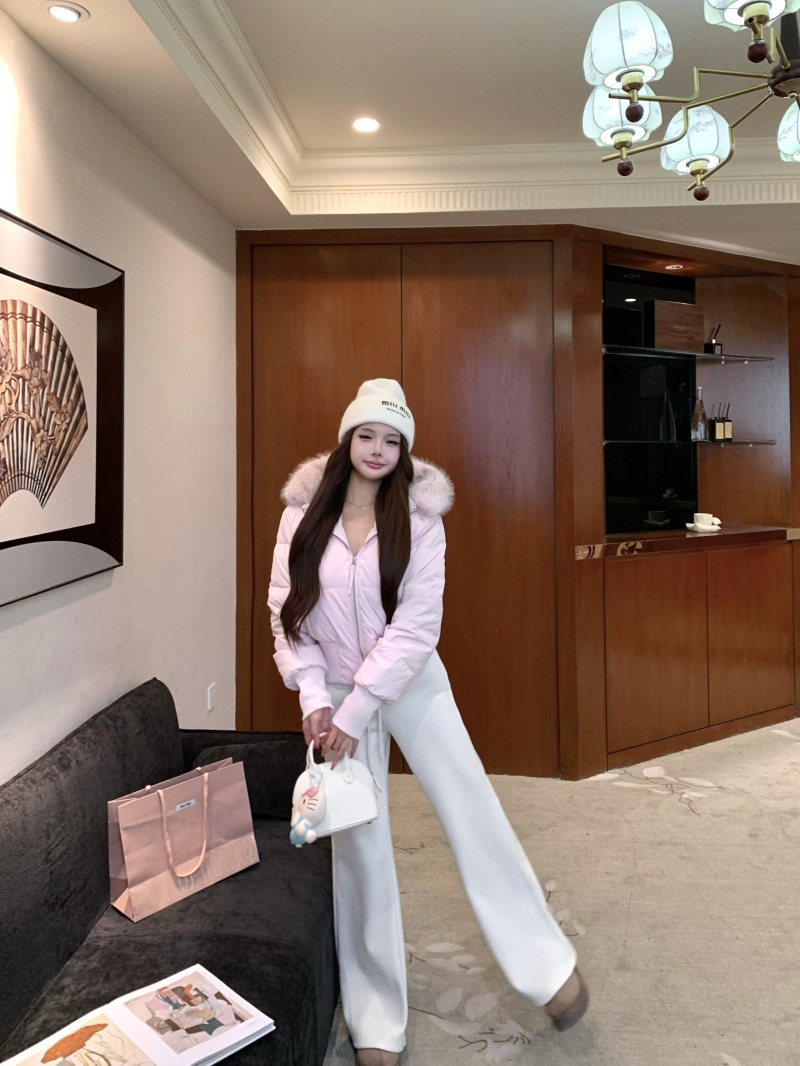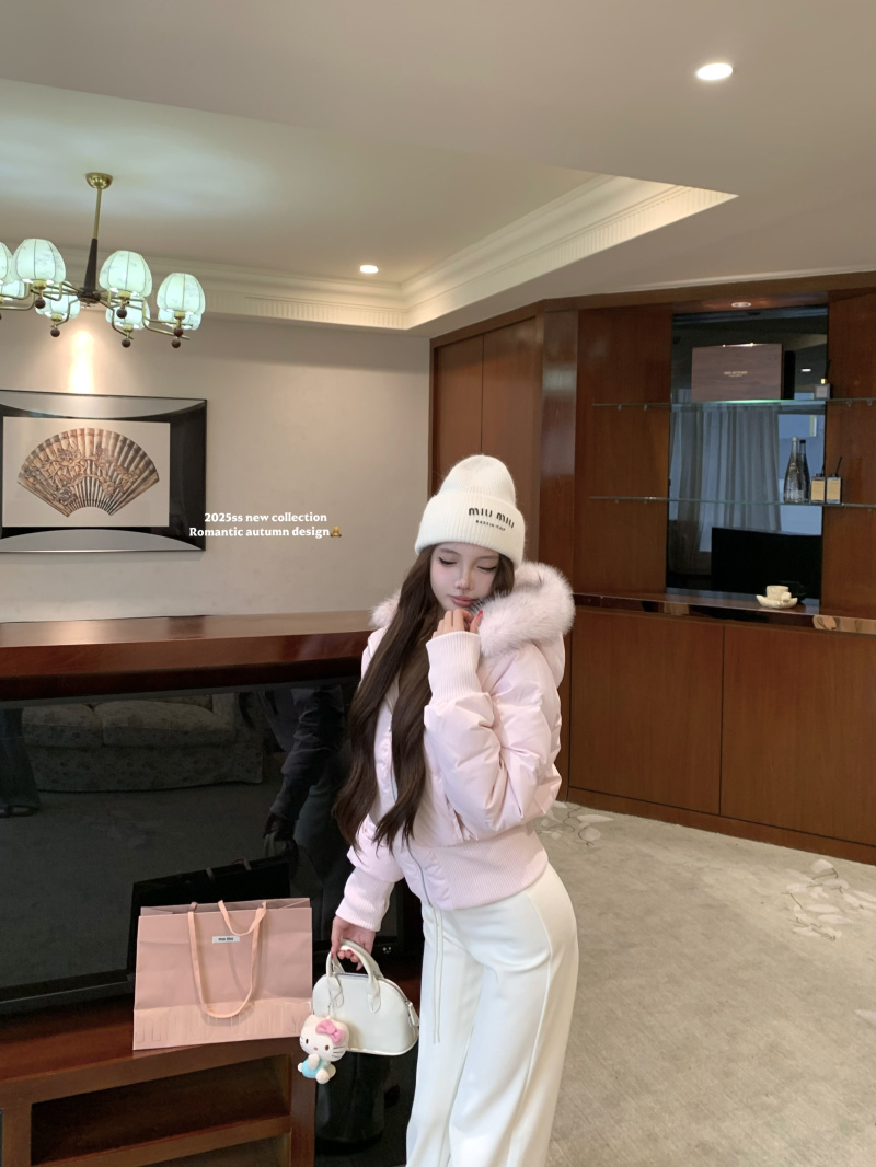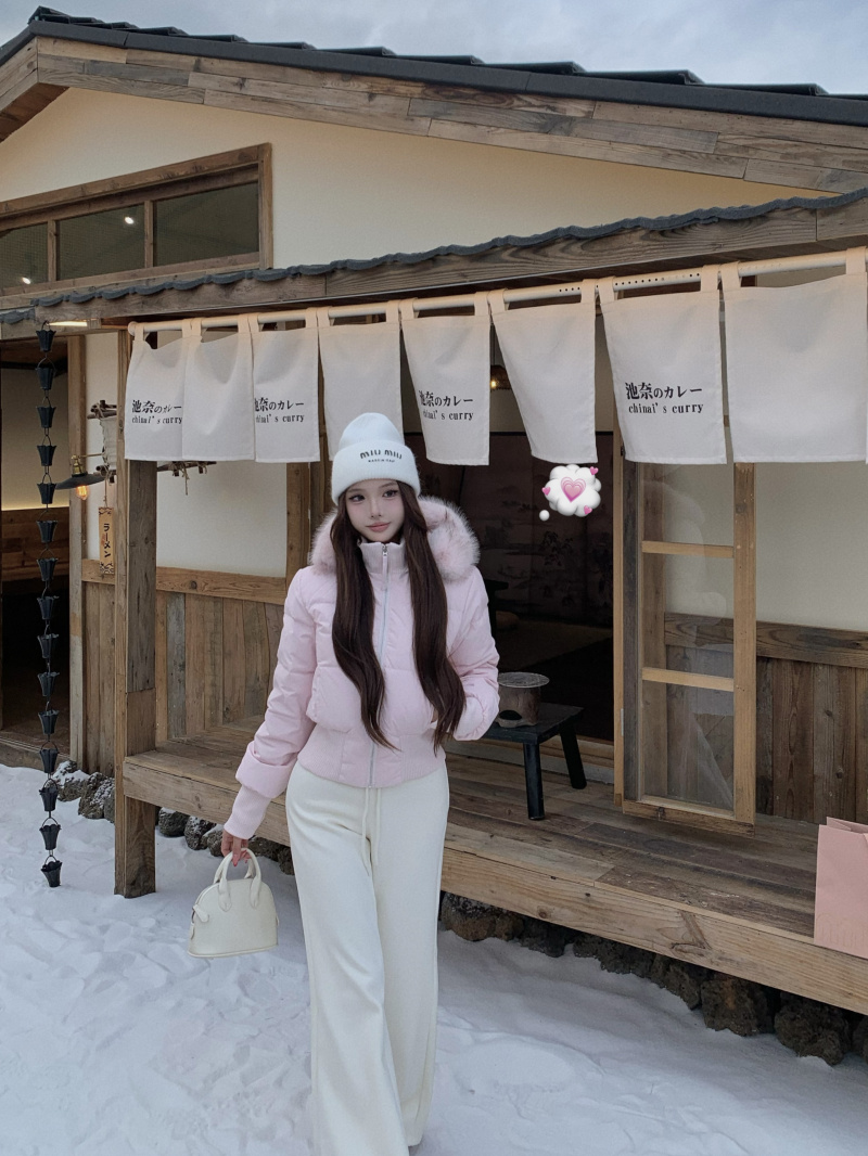Pink Fur Collar Hooded down Jacket for Women, Winter 2025 New Style, Fleece-Lined, Thickened, Warm Cotton Coat, Slim Fit Outerwear
