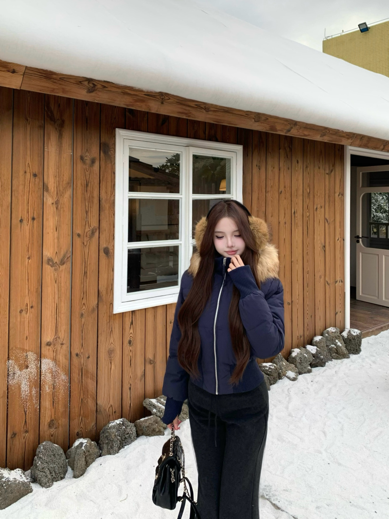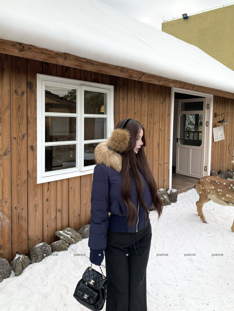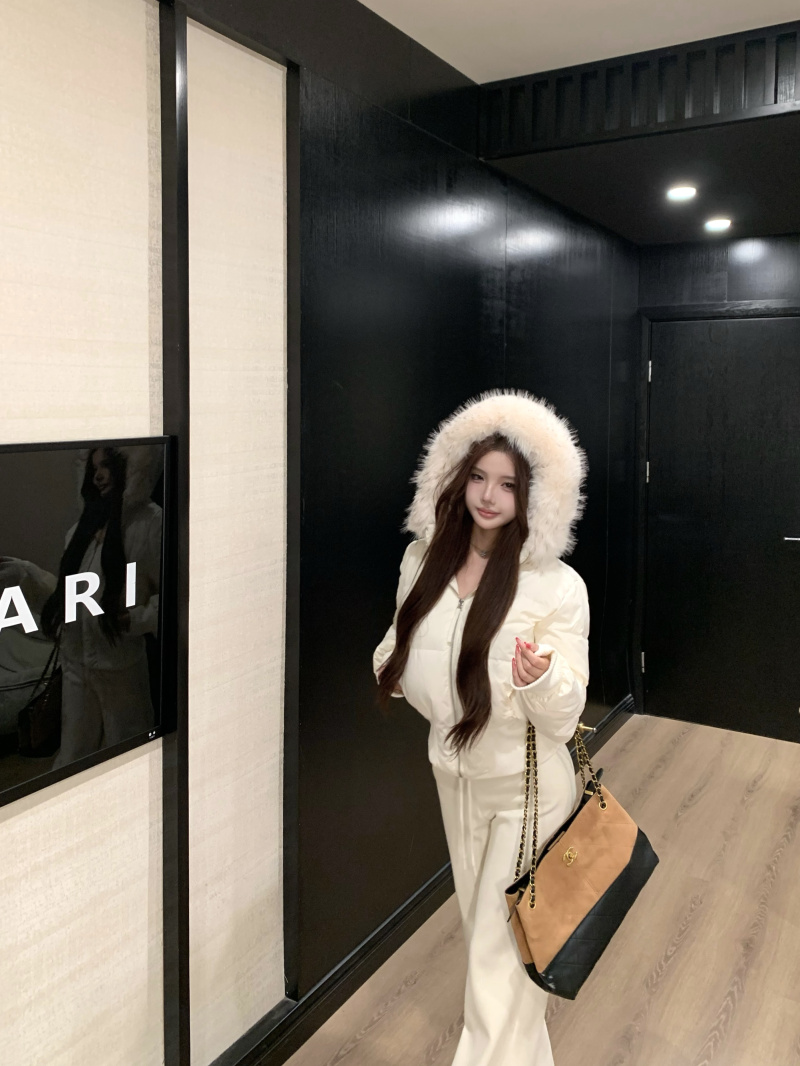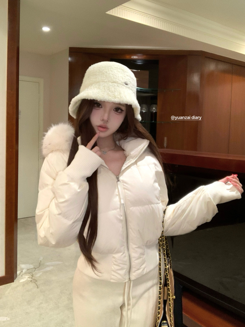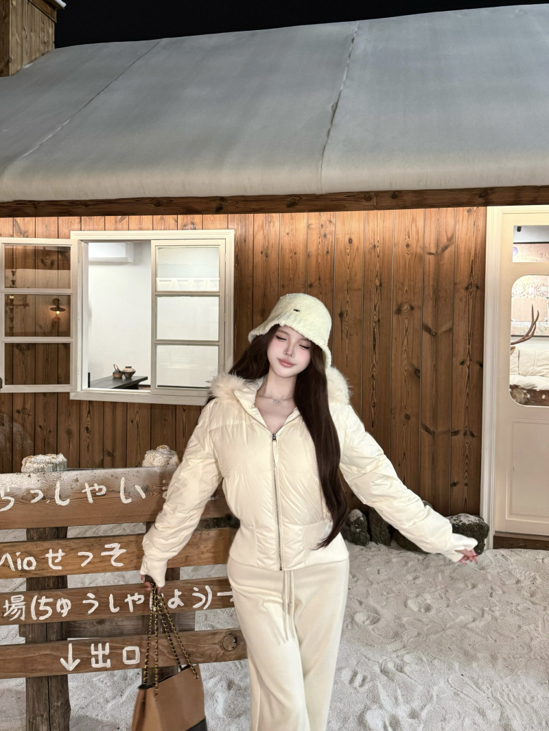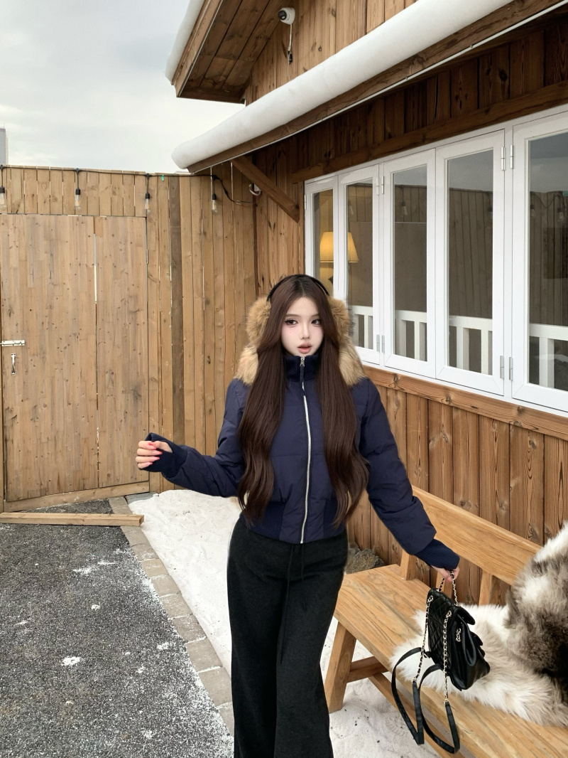 Pink Fur Collar Hooded down Jacket for Women, Winter 2025 New Style, Fleece-Lined, Thickened, Warm Cotton Coat, Slim Fit Outerwear