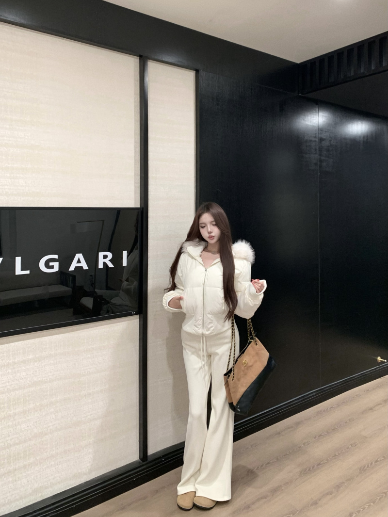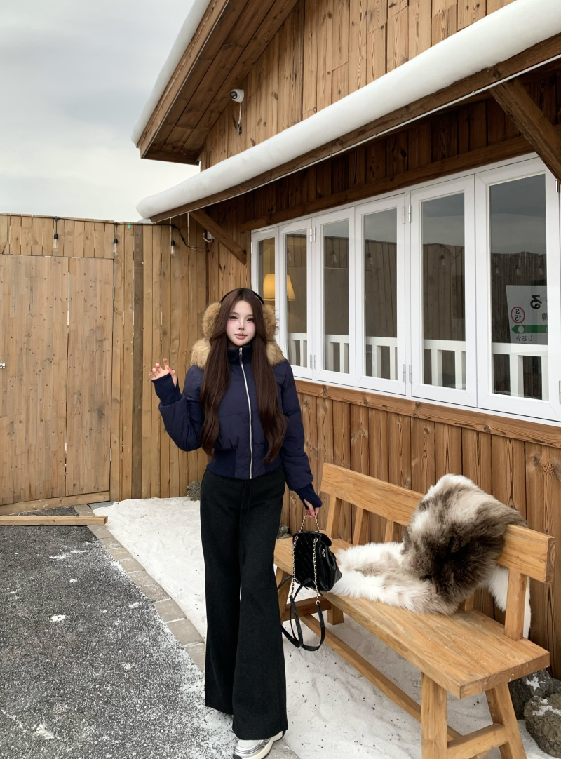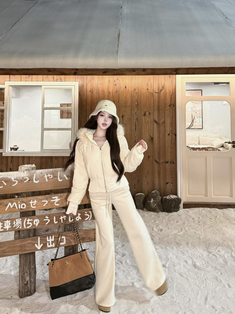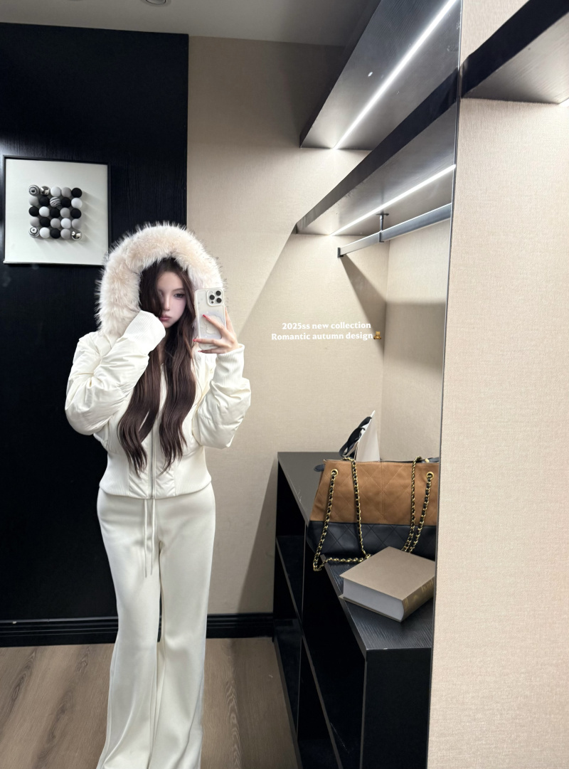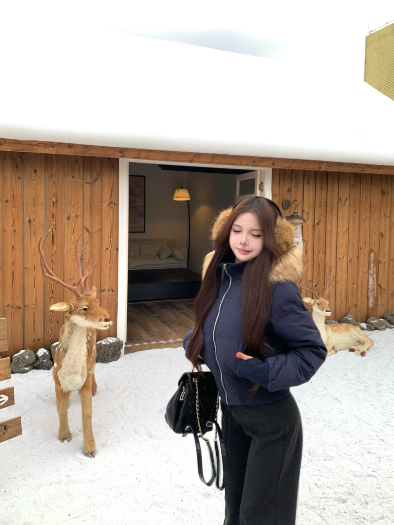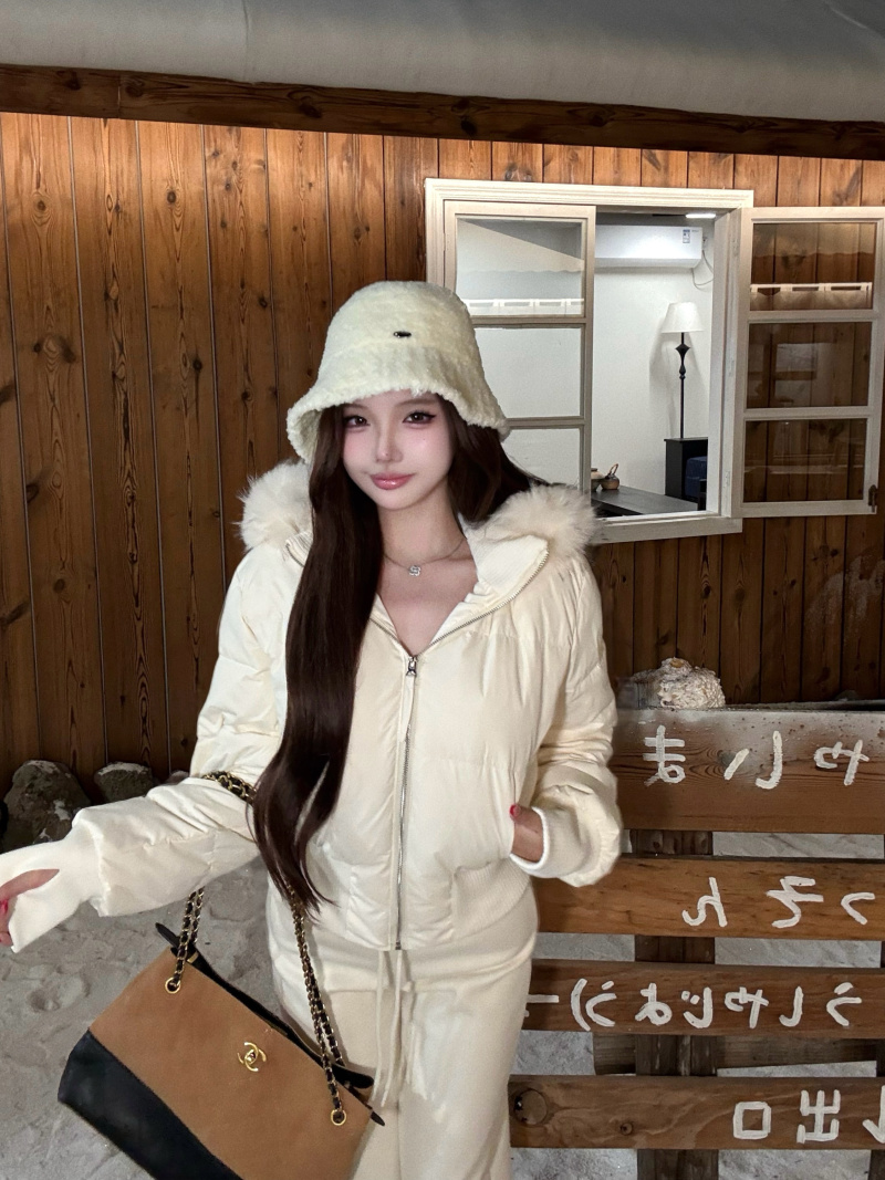 Pink Fur Collar Hooded down Jacket for Women, Winter 2025 New Style, Fleece-Lined, Thickened, Warm Cotton Coat, Slim Fit Outerwear