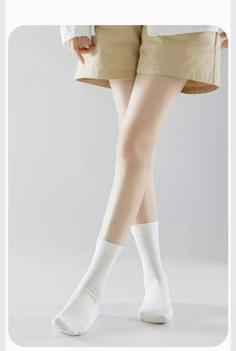 Girls' Spring and Autumn Solid Color Socks, Versatile and Cute Cartoon Student Sports Slouch Socks, Women's Mid-Calf Socks ins Trendy