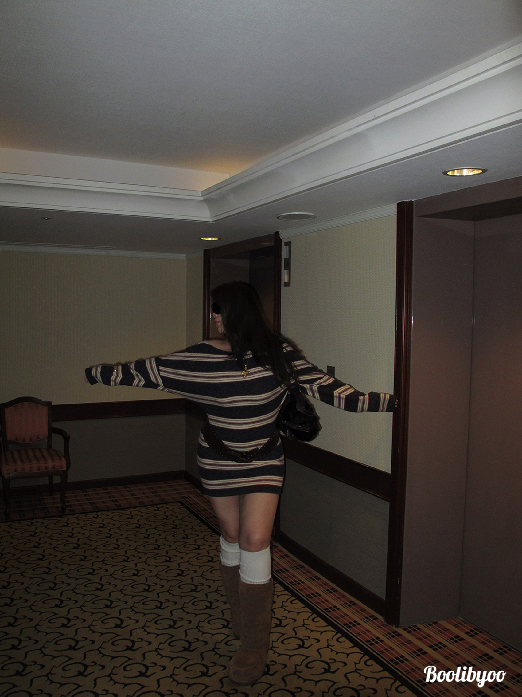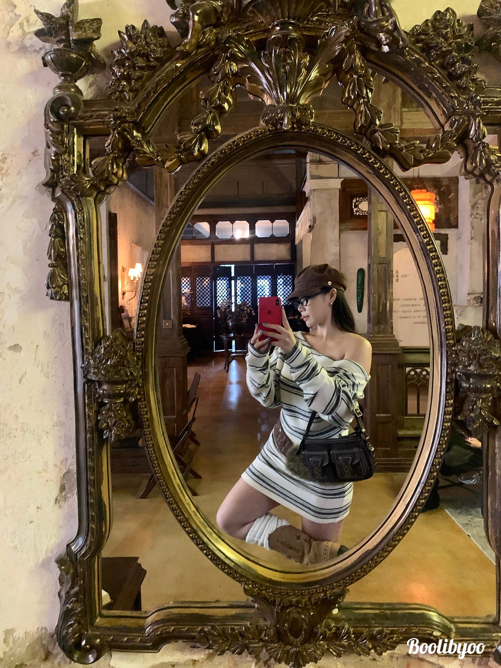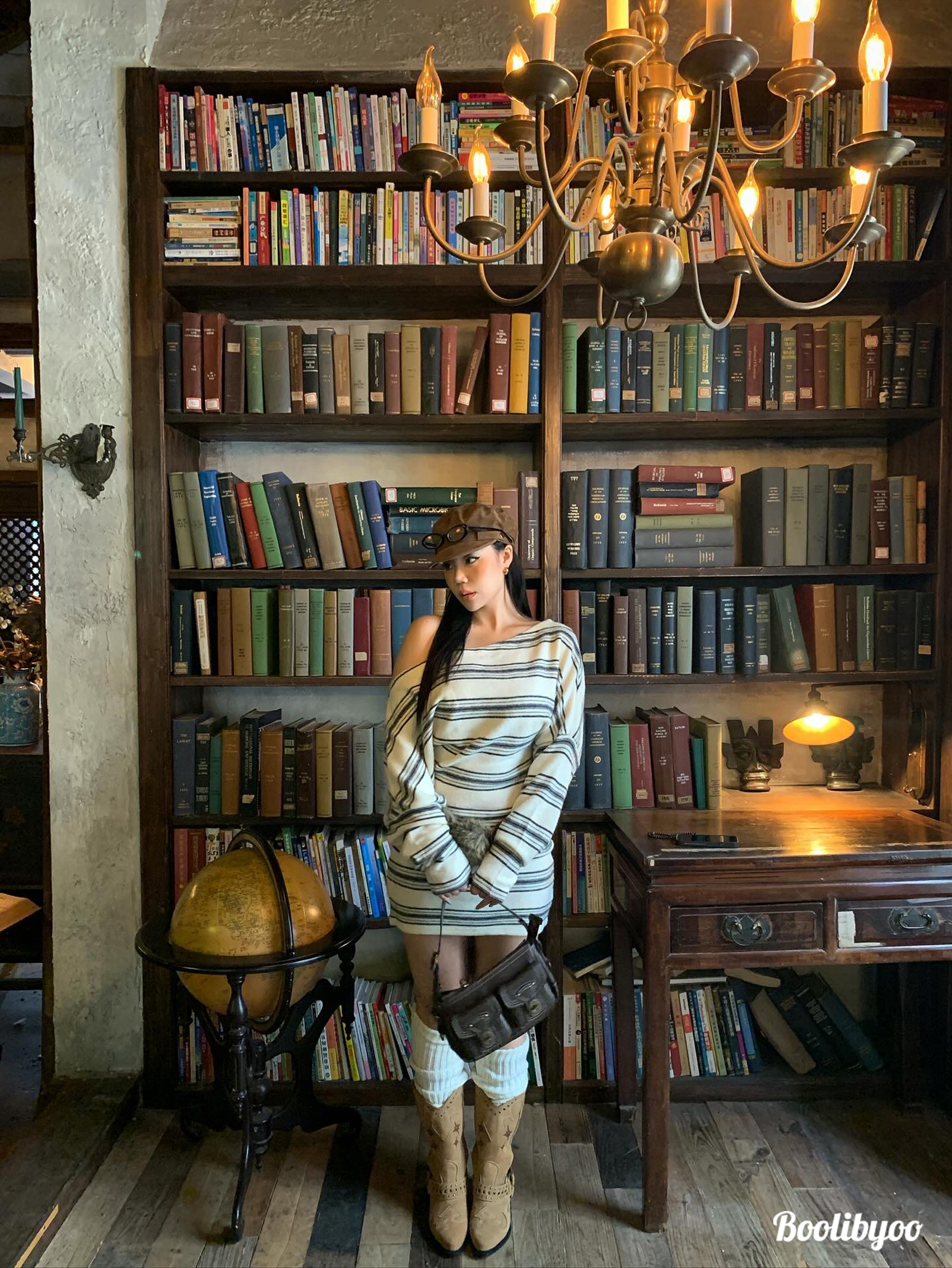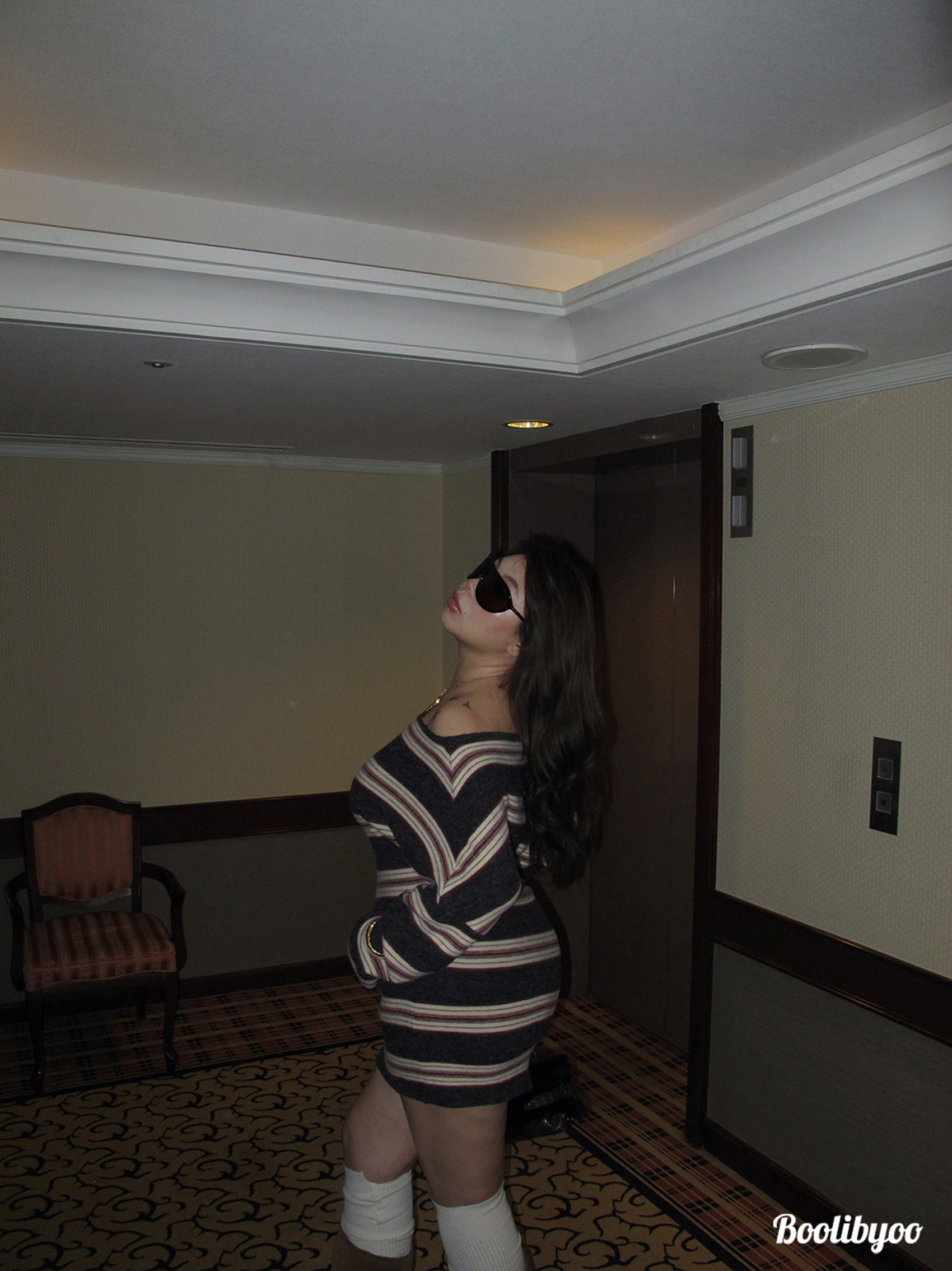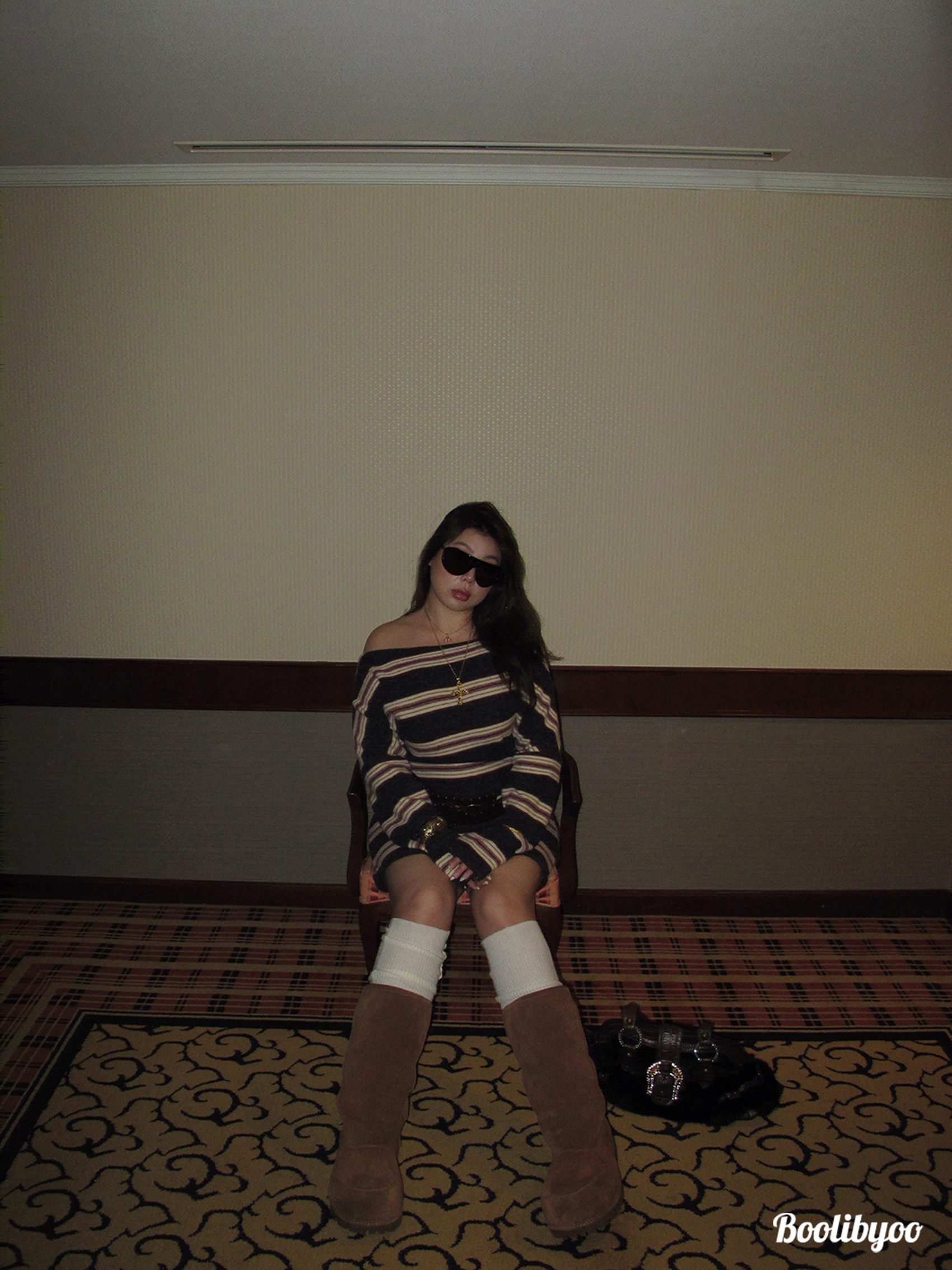 Boolibyoo Vintage Toffee Color Oversized Casual Spicy Girl Off-Shoulder Asymmetrical Striped Short Dress