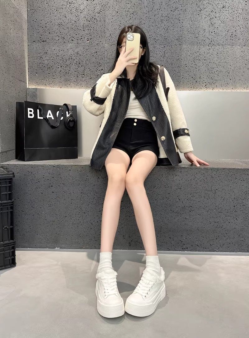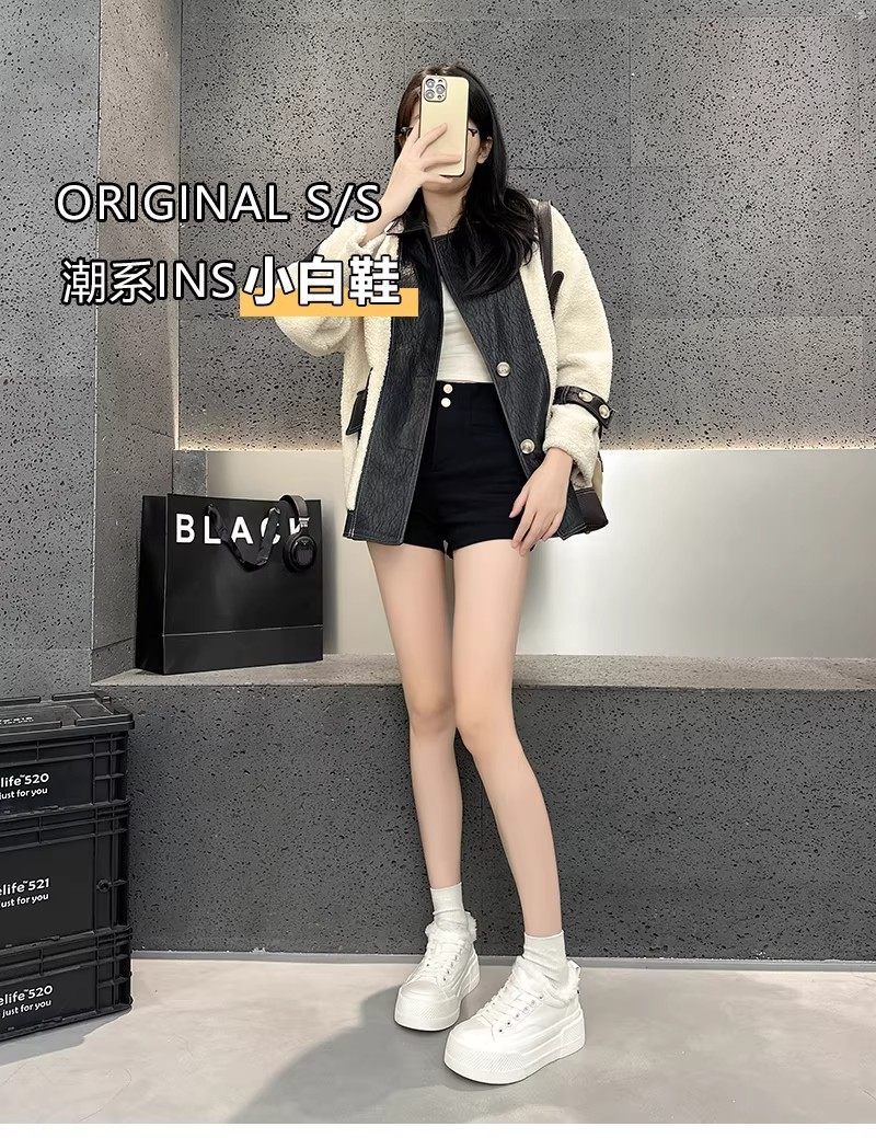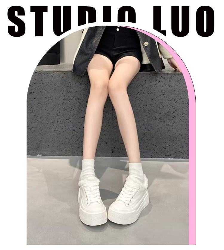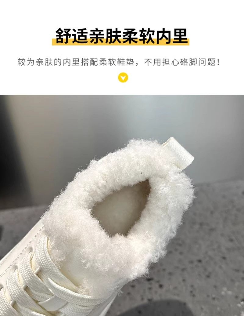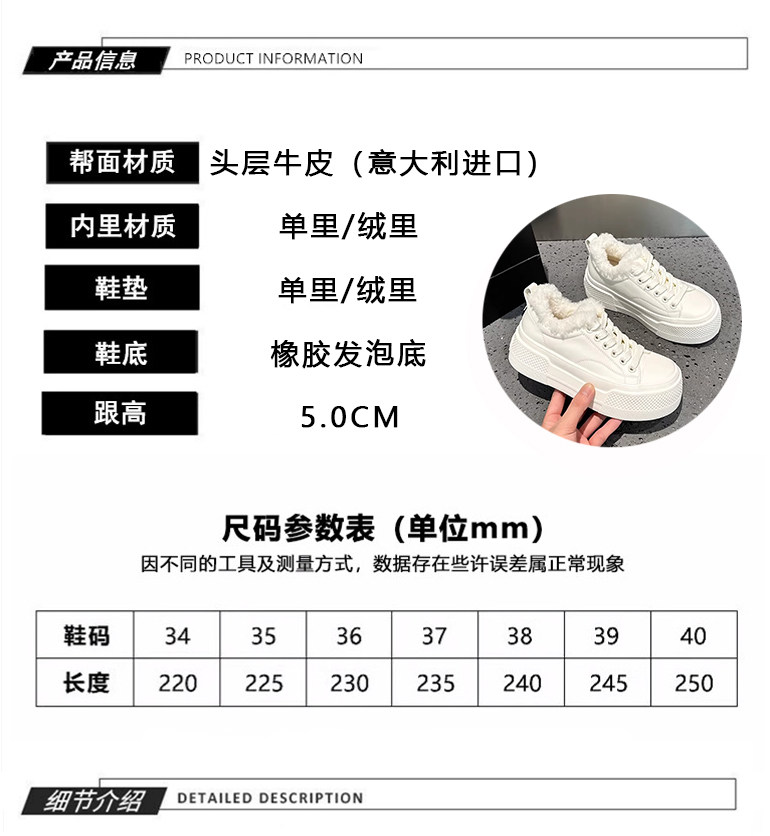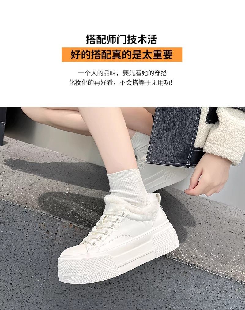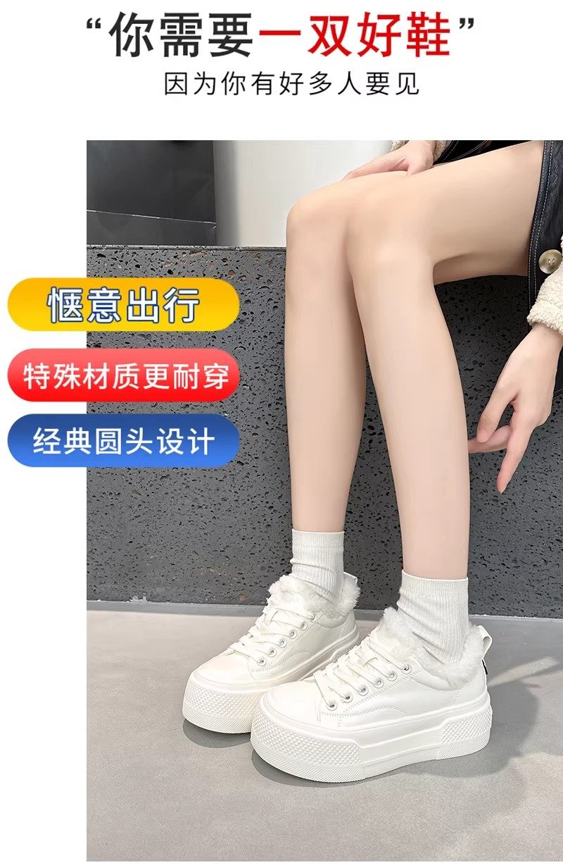 Hong Kong Genuine Leather Small-Sized Thick-Soled Height-Increasing Fleece-Lined White Sneakers for Women, Winter Lamb Wool Furry Shoes, Versatile Casual Sneakers