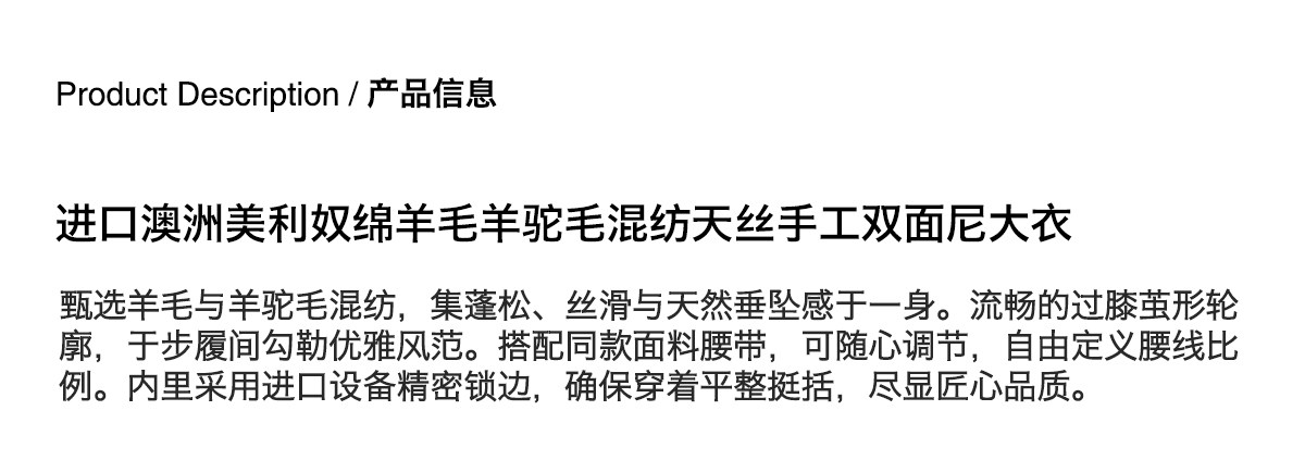Limpidoculus Australian Merino Sheep Wool and Alpaca Wool Blended Handmade Double-Sided Woolen Coat