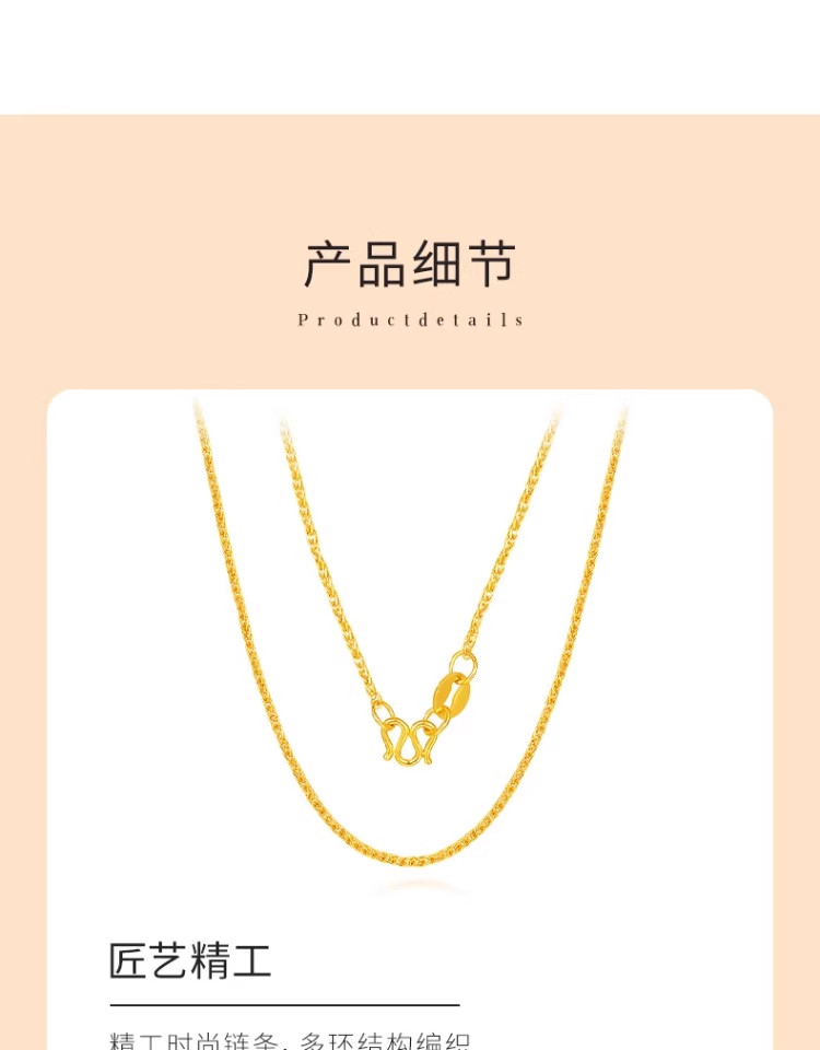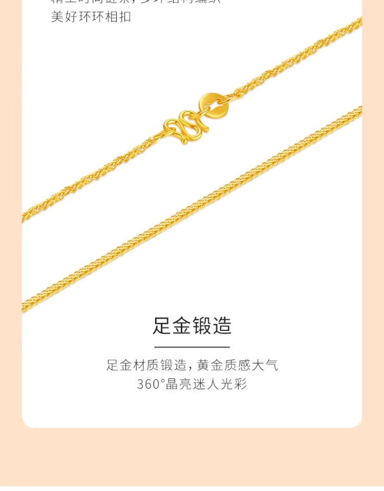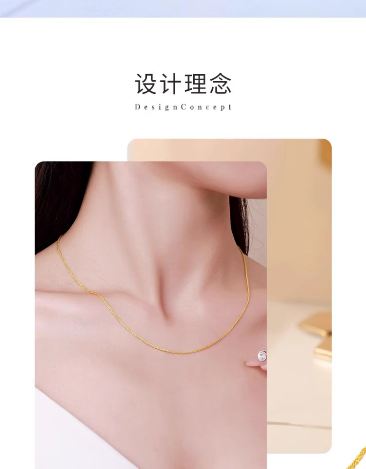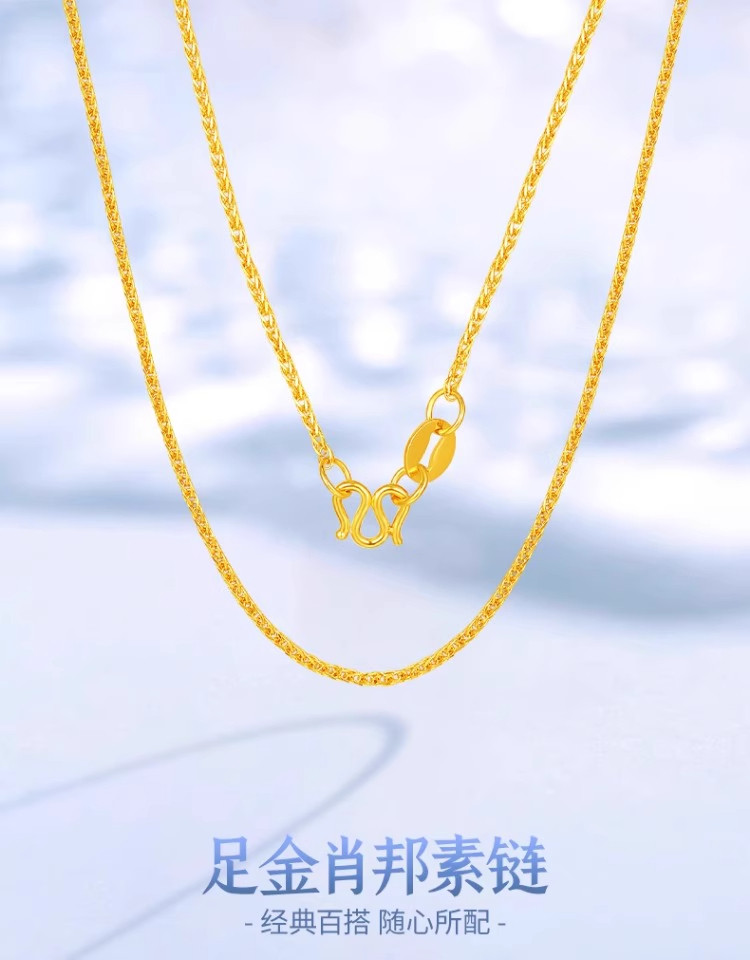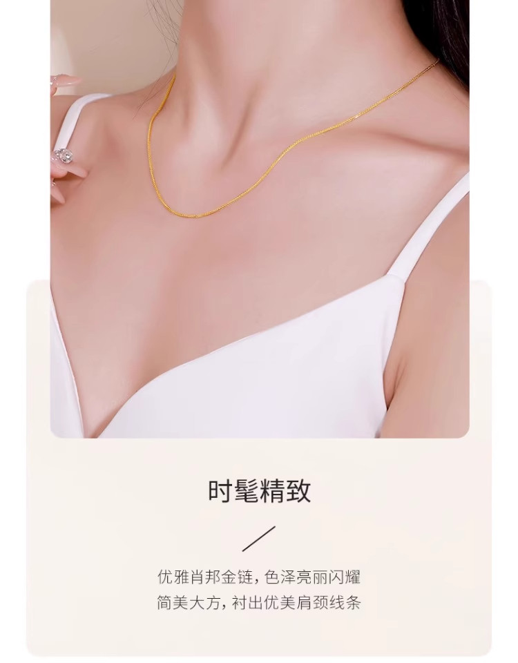 Shenzhen Shuibei Gold Chopin Chain, Simple Plain Chain, Stackable, Pure Gold 999, Gift for Mom, Gift for Girlfriend