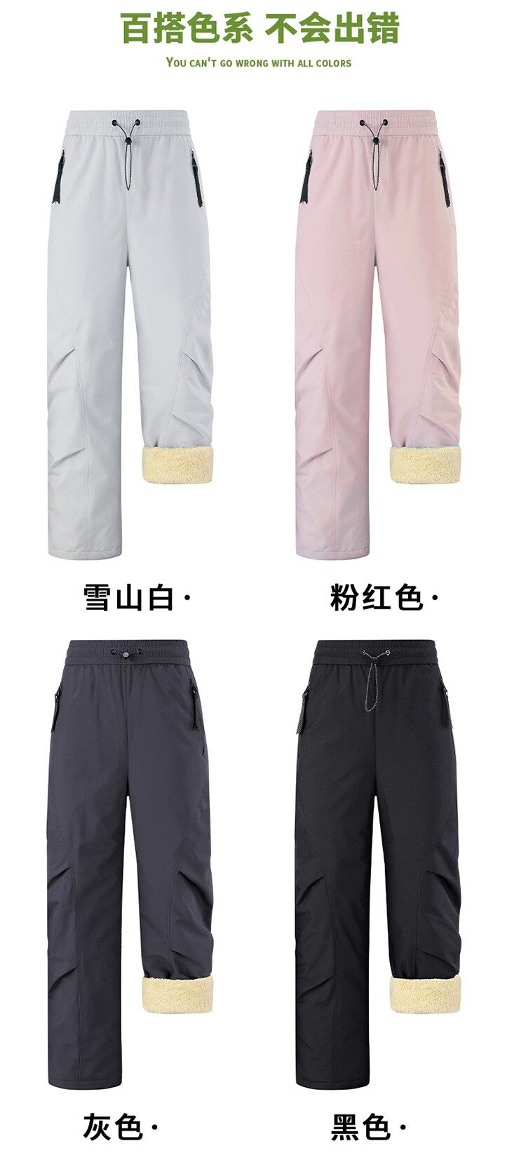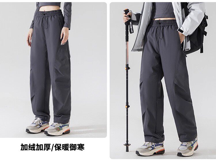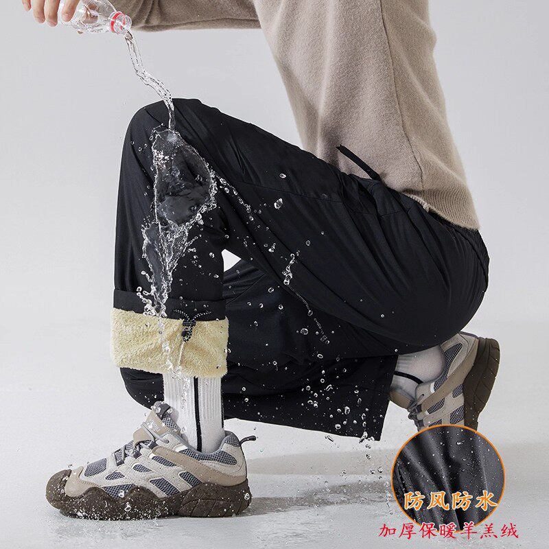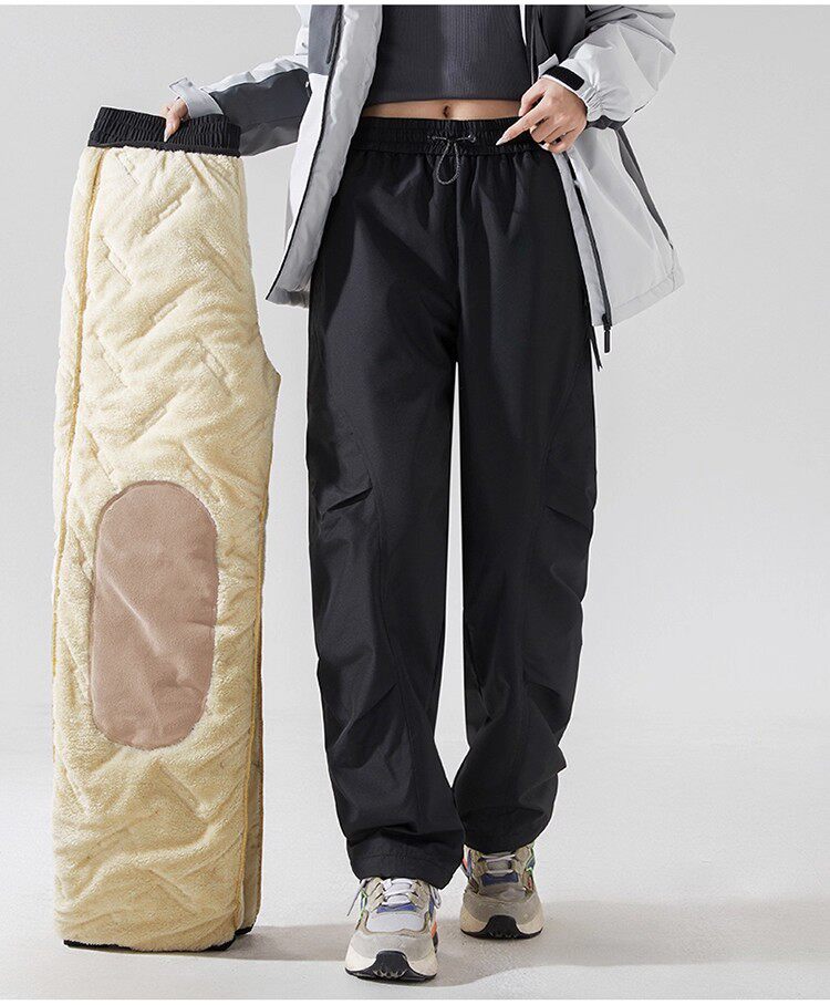 Northeast Warm Cotton Pants for Women, Winter Fleece-Lined Thickened Lamb Wool Pants, Cold-Proof, Windproof, Waterproof Pants, Ski and Outdoor Pants for Men