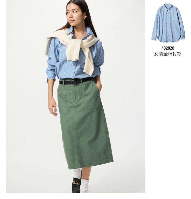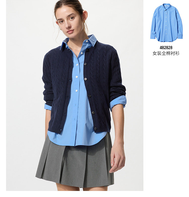 Uniqlo Women's Cotton Shirt/Long-Sleeved Shirt Casual Work Clothing Jacket 26 Spring and Summer New Style 482828